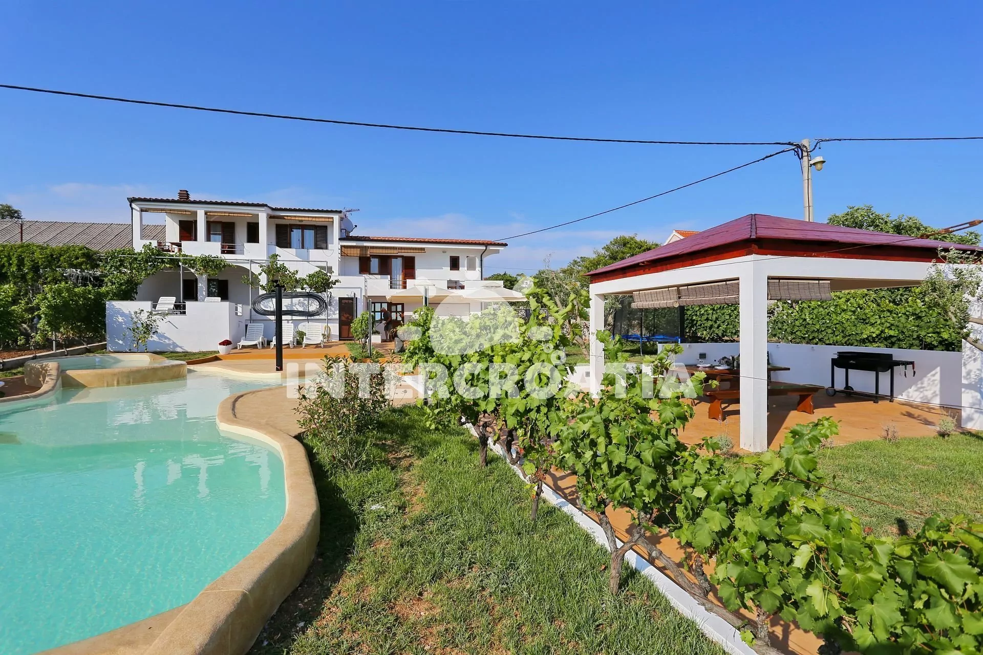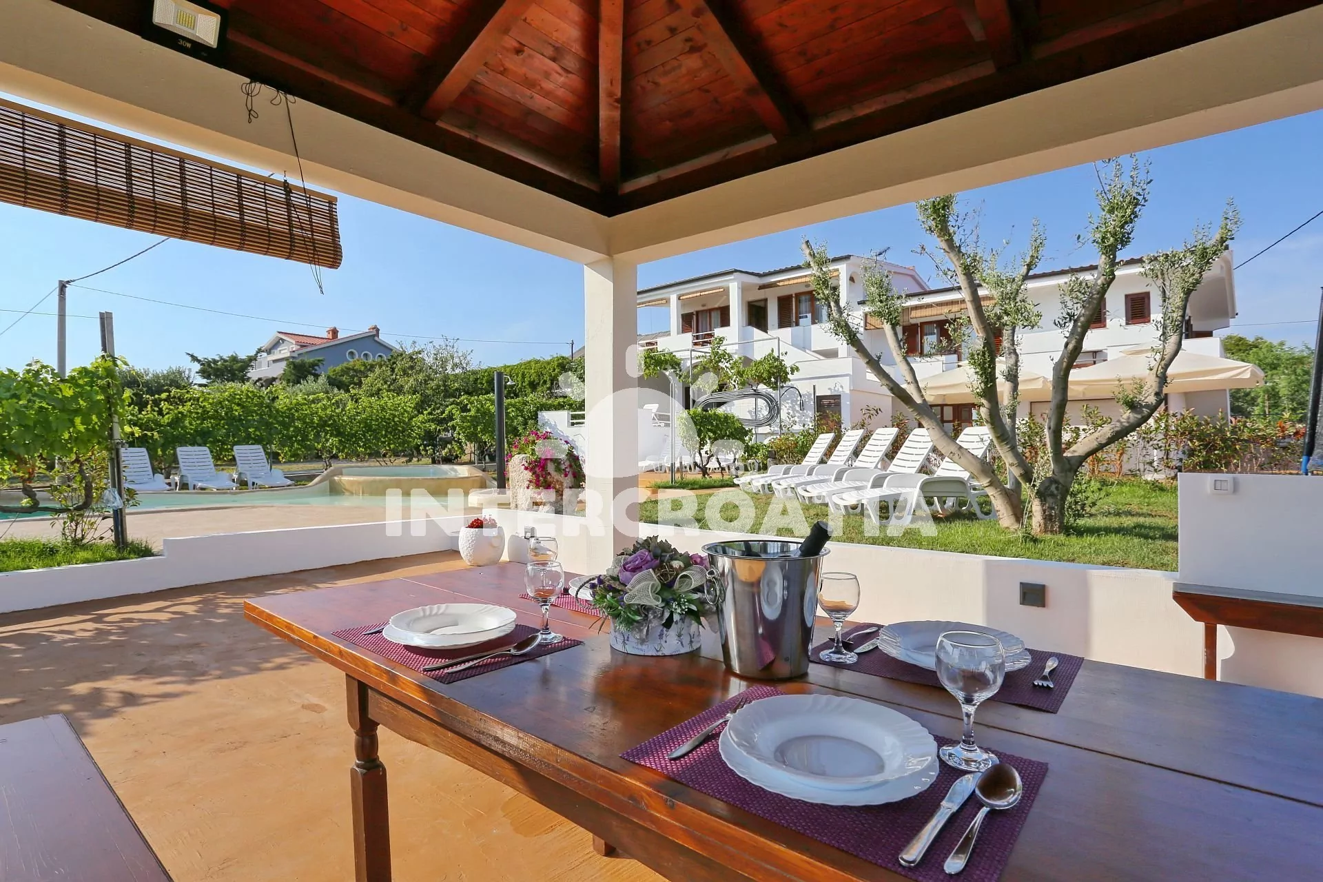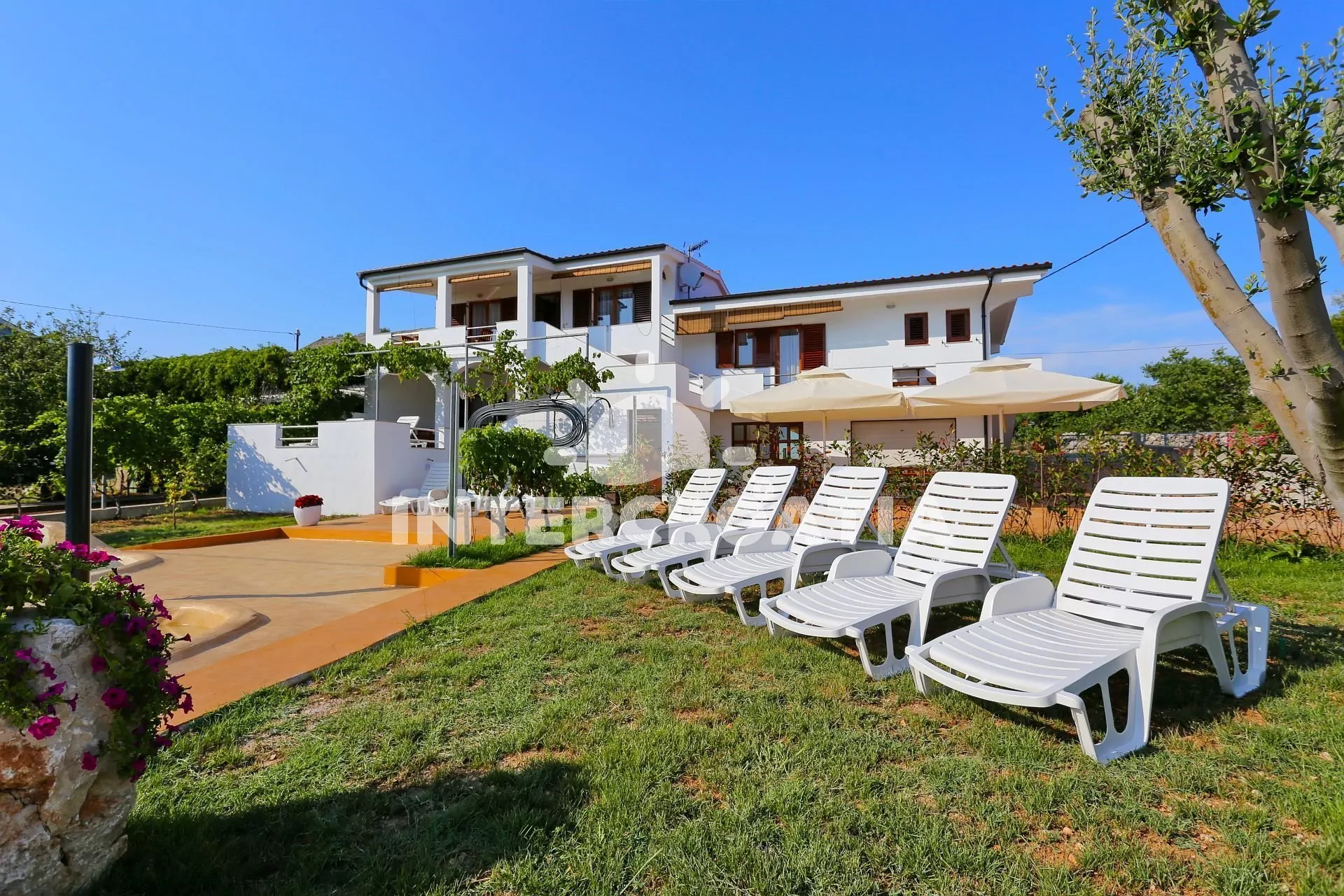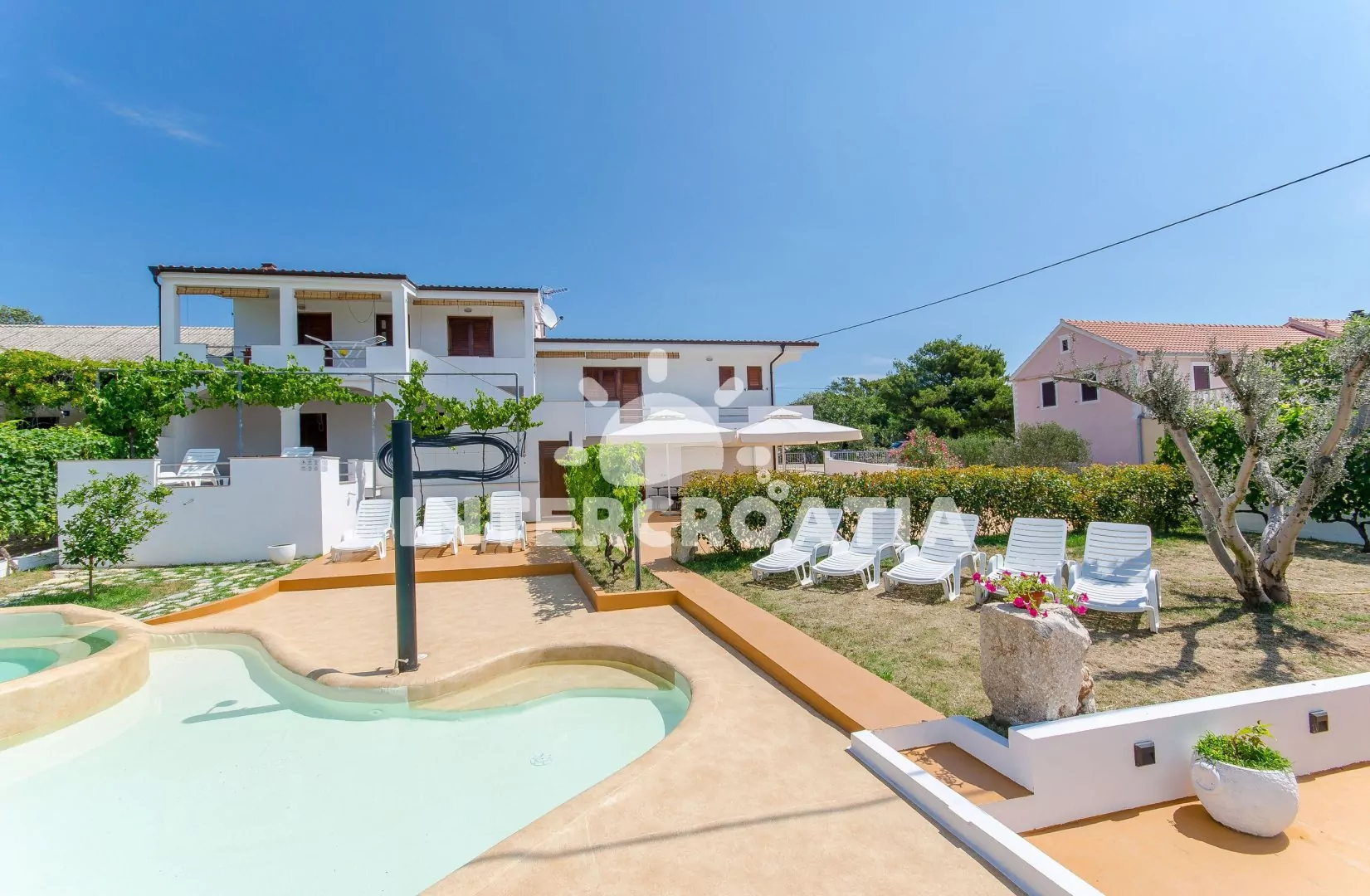 Apartmánová vila s bazénem, vlastním pozemkem se zahradou, terasou s pergolou a grilem. Možnost odpočinku na lehátkách u bazénu. Vila se nachází v klidné lokalitě a nabízí ubytování ve 3 apartmánech. Parkovací místa u objektu.