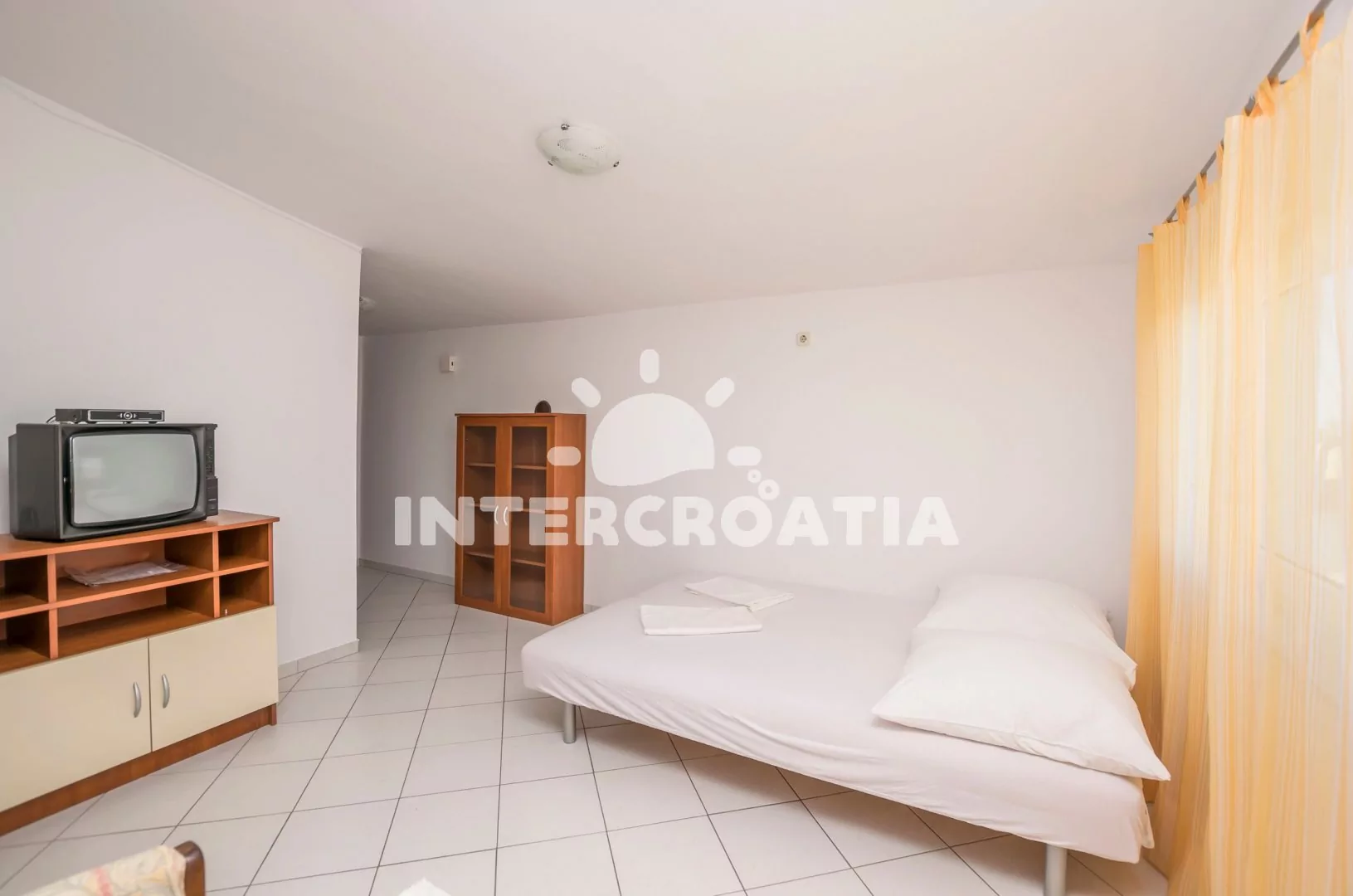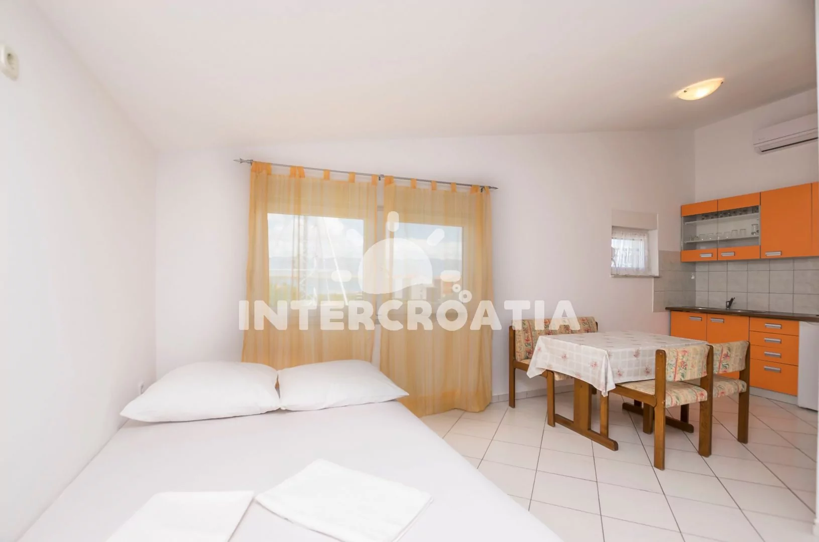 Apartmán (40 m2) s terasou a posezením, se nachází v 2. patře vily a je vhodný pro 2 až 4 osoby. Obývací místnost je spojena s kuchyní. Kuchyňská linka je vybavena varnou deskou, rychlovarnou konvicí, nádobím a lednicí s mrazákem. Obývací místnost s přistýlkou (extra lůžko pro 2 osoby), televizí se satelitním programem a klimatizací. Ložnice s jedním dvoulůžkem. Koupelna se sprchovým koutem, umyvadlem a wc. Hostům je k dispozici parkování u objektu zdarma.