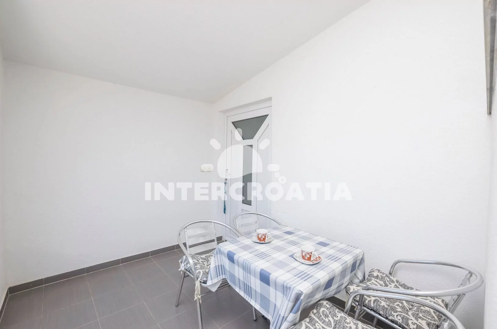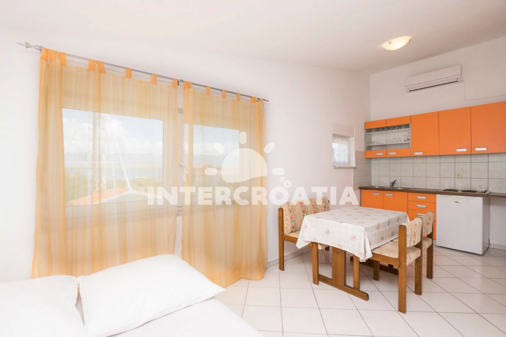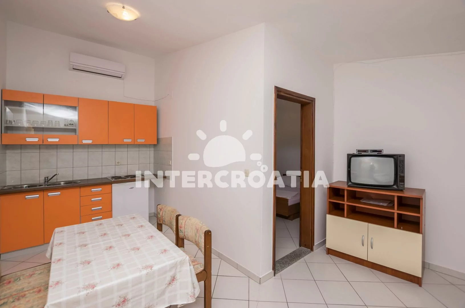 Apartmán (40 m2) s terasou a posezením, se nachází v 2. patře vily a je vhodný pro 2 až 4 osoby. Obývací místnost je spojena s kuchyní. Kuchyňská linka je vybavena varnou deskou, rychlovarnou konvicí…