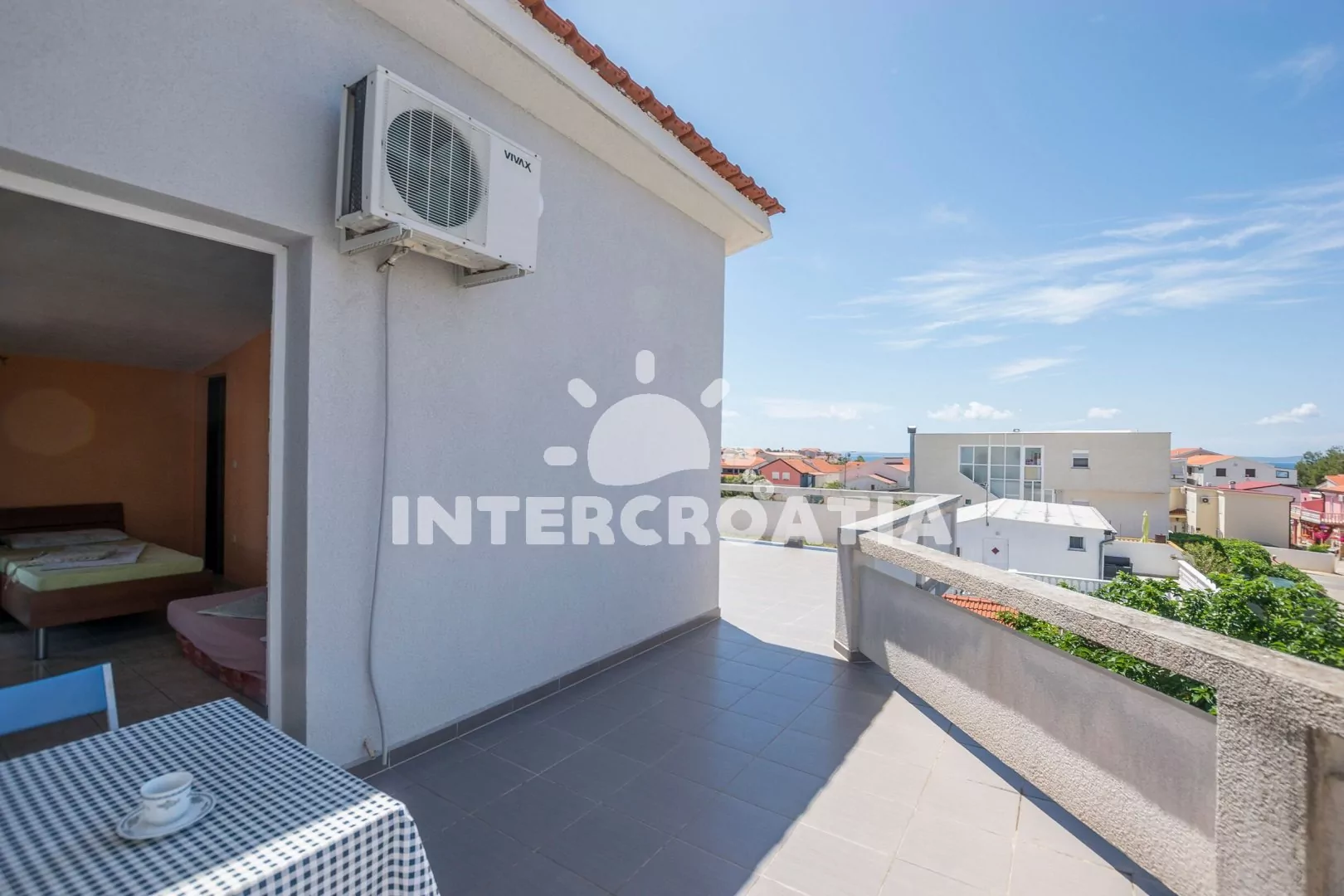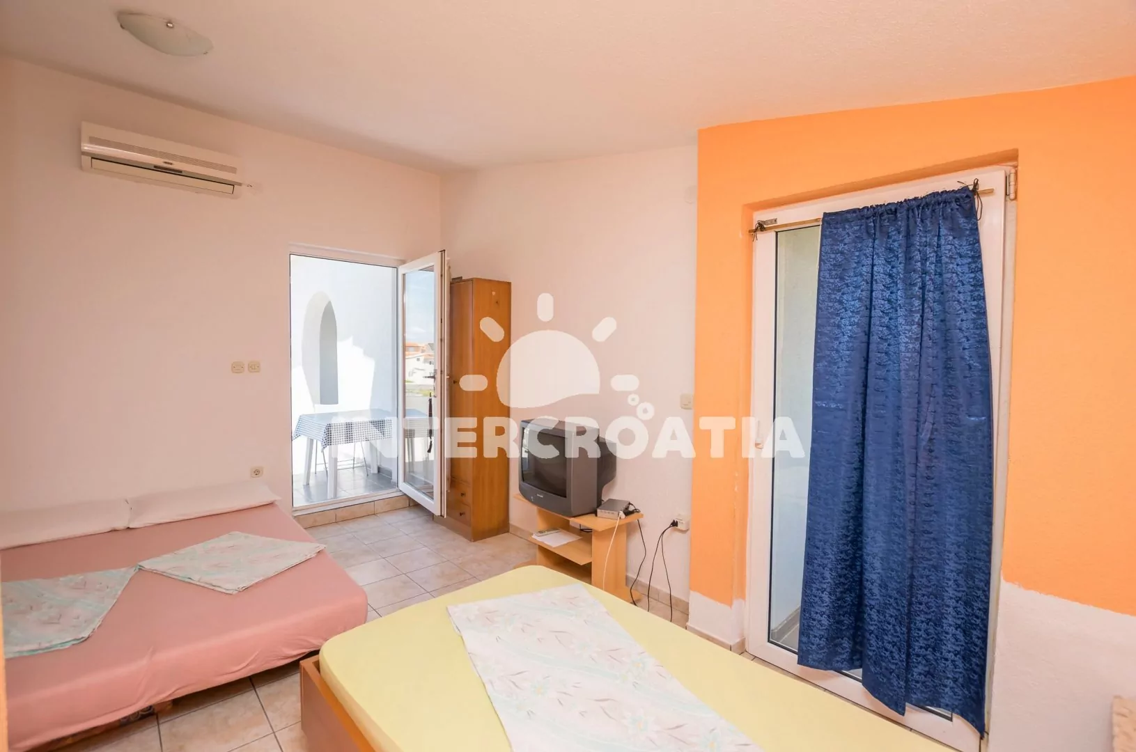Apartmán typu studio (25 m2) s terasou a výhledem na moře, se nachází v 2. patře vily a je vhodný pro až 3 osoby. Obývací místnost je spojena s kuchyní. Kuchyňská linka je vybavena vařičem, rychlovarnou konvicí, nádobím a lednicí s mrazákem. Obývací místnost s televizí, jedním dvoulůžkem, přistýlkou, klimatizací a vstupem na terasu. Koupelna se sprchovým koutem, umyvadlem a wc. Hostům je k dispozici parkování u objektu zdarma.