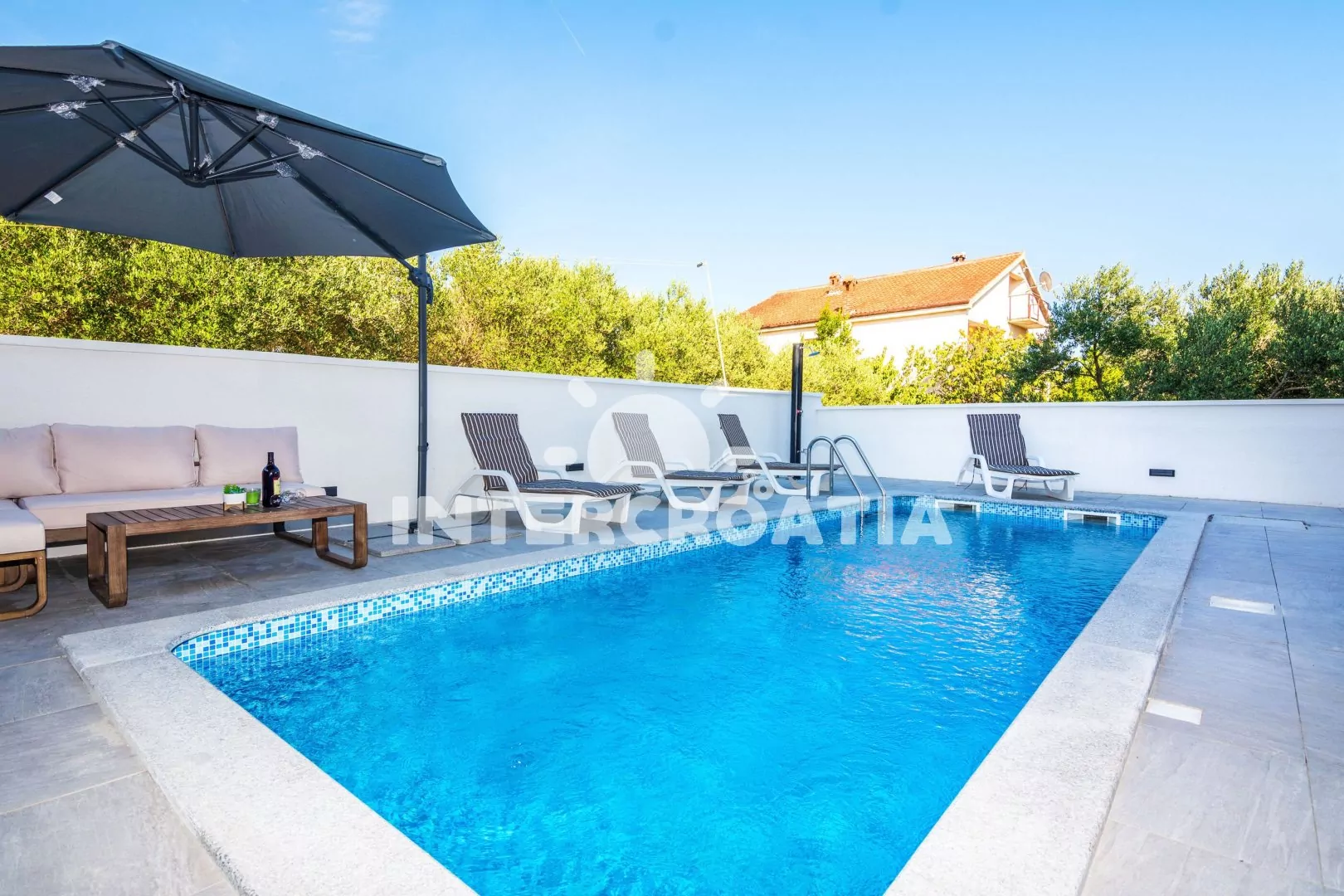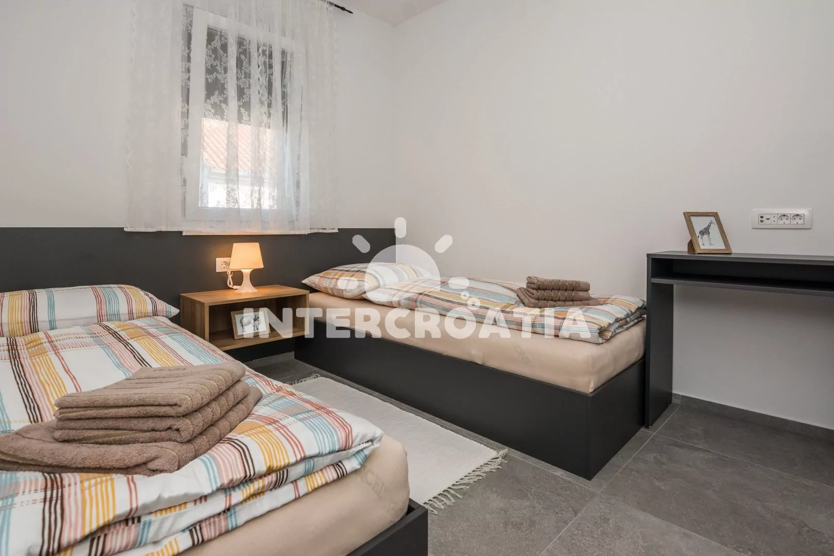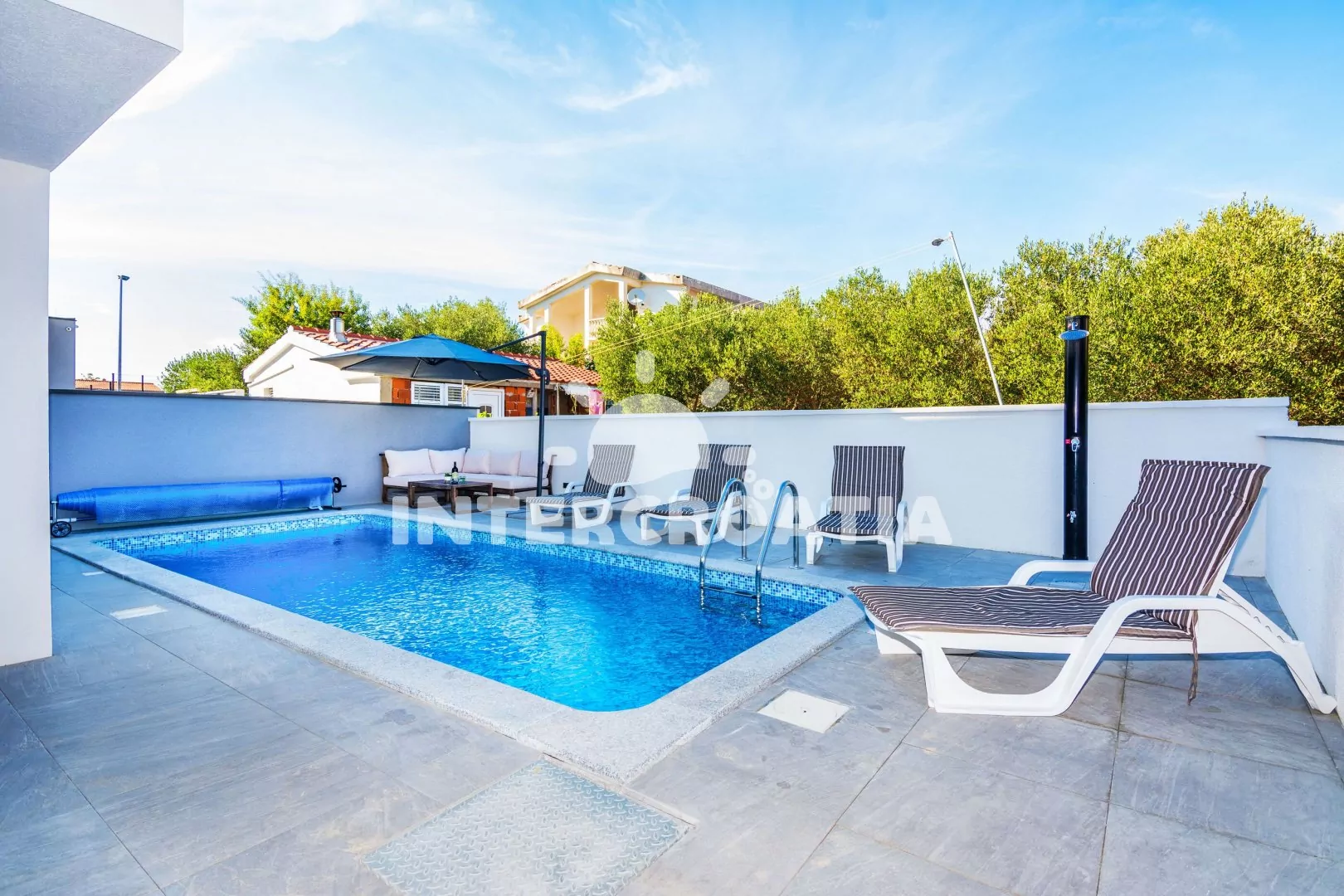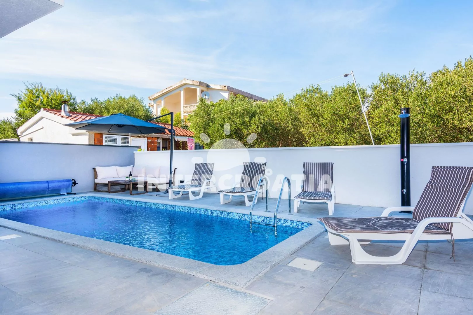 Vzdálenosti: Moře a oblázková-písčitá-betonová pláž 820 m, centrum 400 m, restaurace 200 m, market 150 m, bar, veřejná doprava, půjčovna cyklistických kol, pošta, směnárna, potápění, diskotéka, ambulance a lékárna 400 m, čerpací stanice 3 km, banka a přístav 30 km, trajekt (Zadar) 30 km, letiště (Zadar) 35 km.