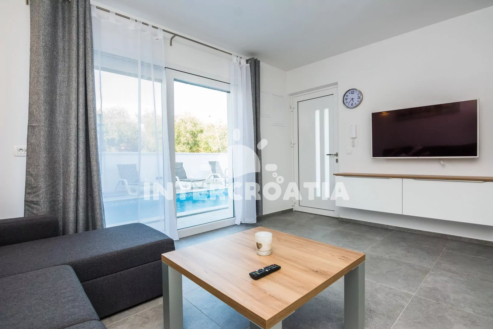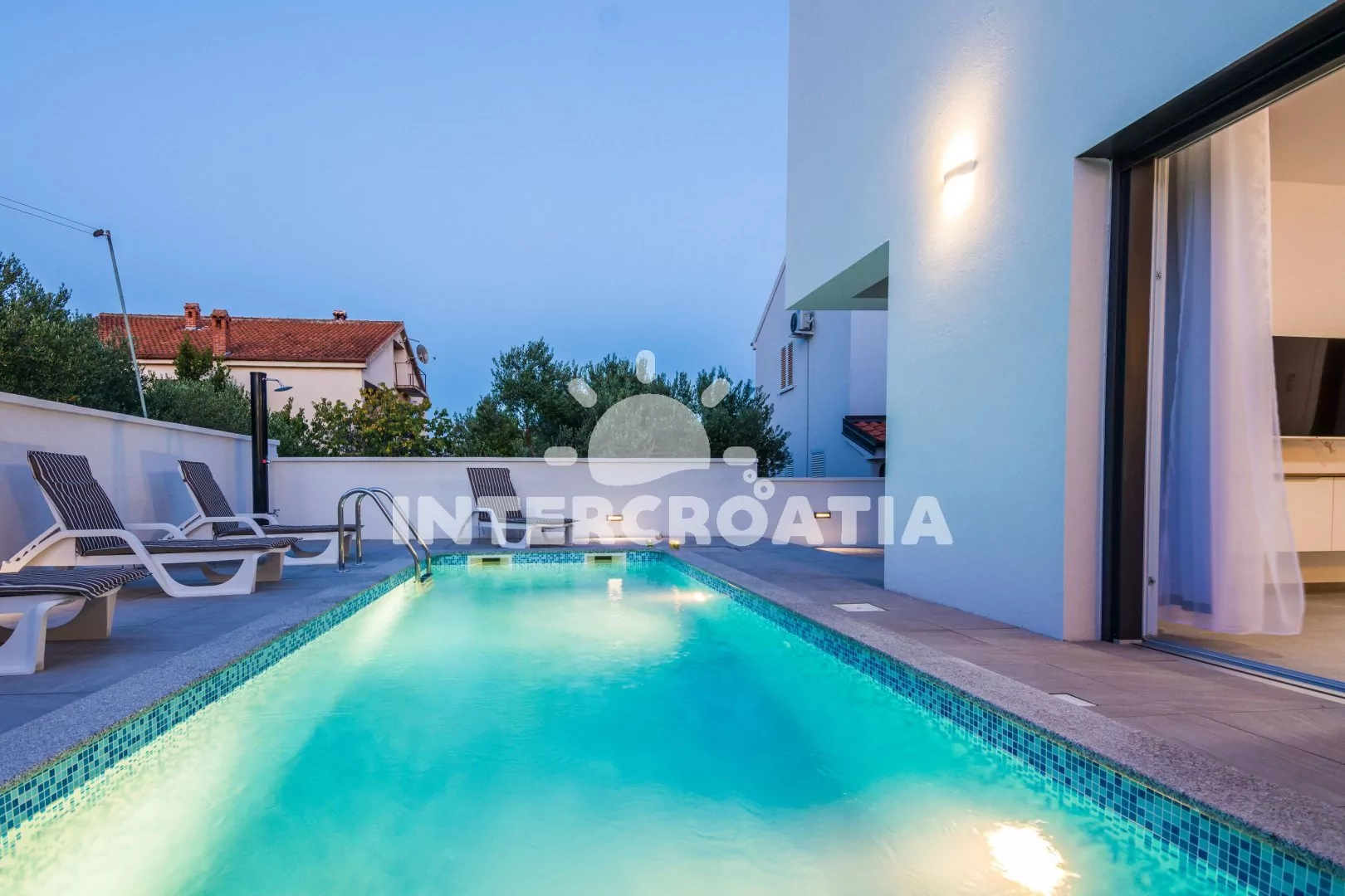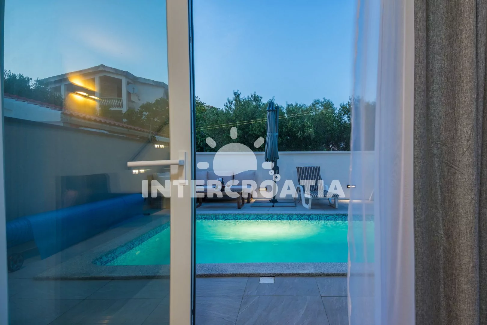 Vzdálenosti: Moře a oblázková-písčitá-betonová pláž 820 m, centrum 400 m, restaurace 200 m, market 150 m, bar, veřejná doprava, půjčovna cyklistických kol, pošta, směnárna, potápění, diskotéka, ambulance a lékárna 400 m, čerpací stanice 3 km, banka a přístav 30 km, trajekt (Zadar) 30 km, letiště (Zadar) 35 km.