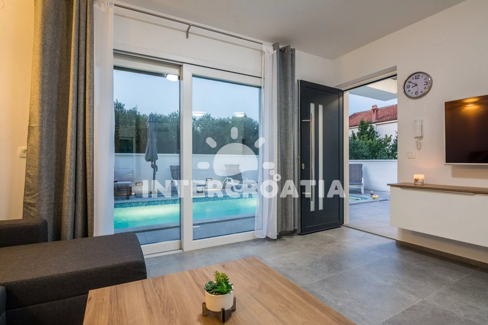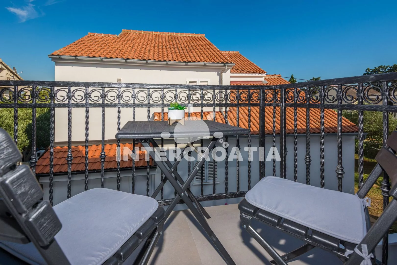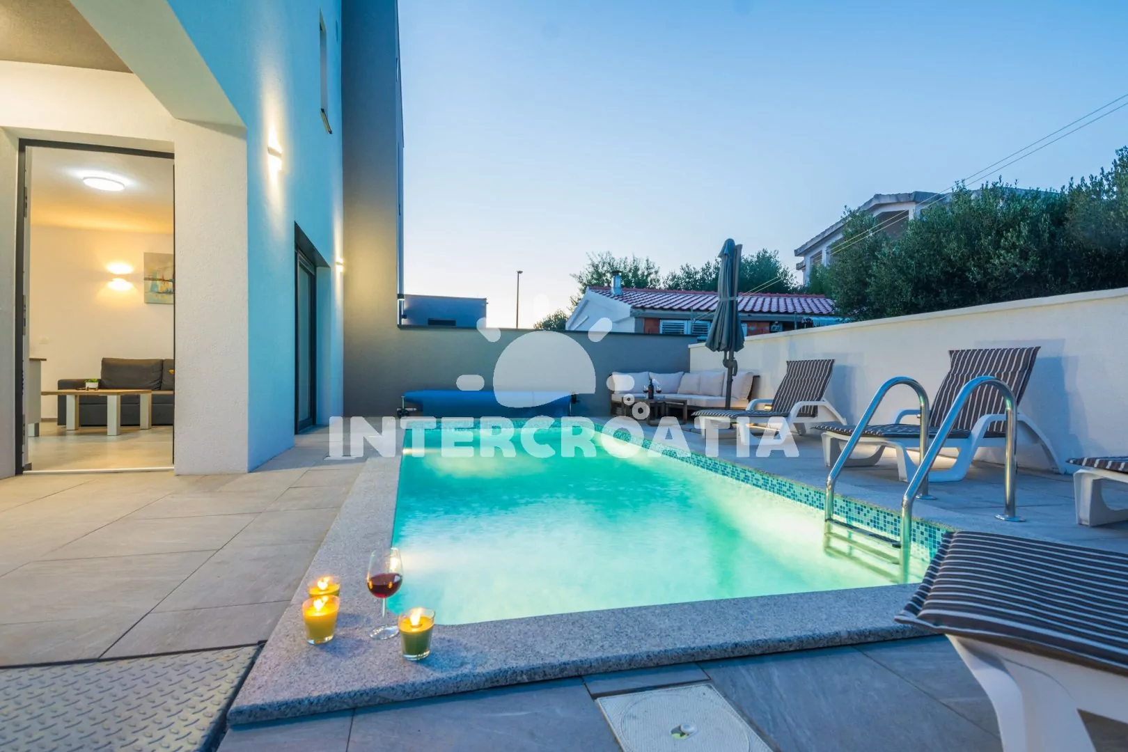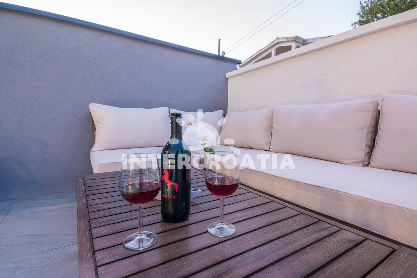 Vzdálenosti: Moře a oblázková-písčitá-betonová pláž 820 m, centrum 400 m, restaurace 200 m, market 150 m, bar, veřejná doprava, půjčovna cyklistických kol, pošta, směnárna, potápění, diskotéka, ambulance a lékárna 400 m, čerpací stanice 3 km, banka a přístav 30 km, trajekt (Zadar) 30 km, letiště (Zadar) 35 km.