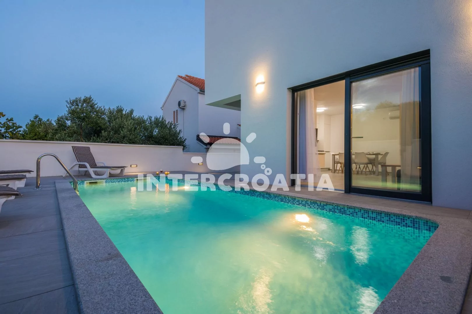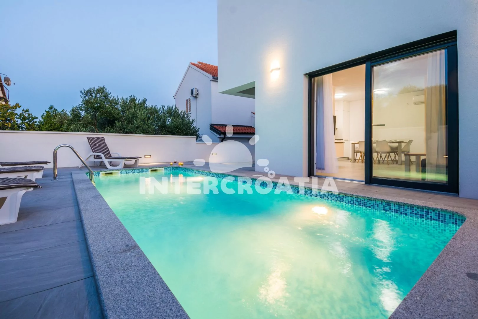 Moderně zařízená vila s bazénem se nachází v klidné ulici a 10 minut pěší chůzí od moře. Vila nabízí ubytování v klimatizovaných apartmánech s lodžiemi a venkovním posezením. K dispozici je bazén s lehátky a parkoviště pro automobily.