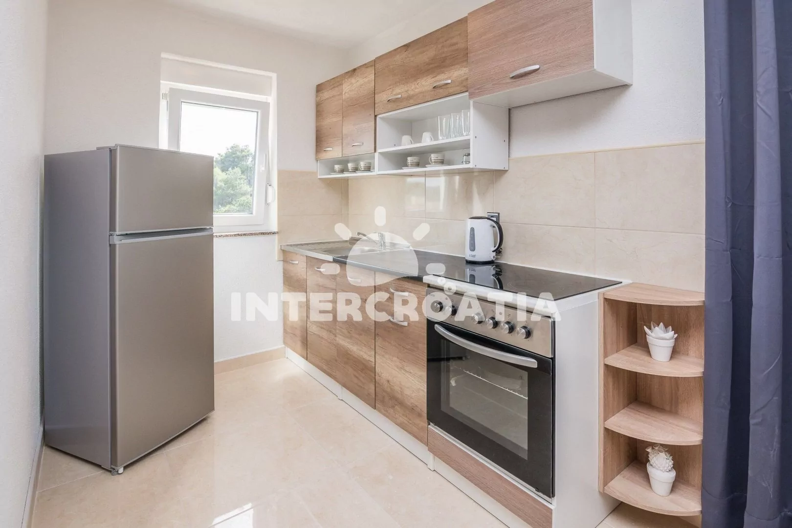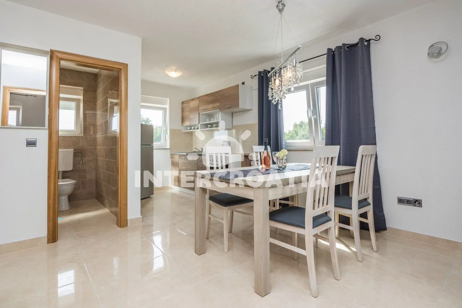 Moderně zařízený apartmánový dům se nachází 8 minut pěší chůzí od moře a pláže. Dům nabízí ubytování v klimatizovaných apartmánech s lodžiemi a venkovním posezením. Parkovací místa pro automobily jsou k dispozici přímo u domu.
