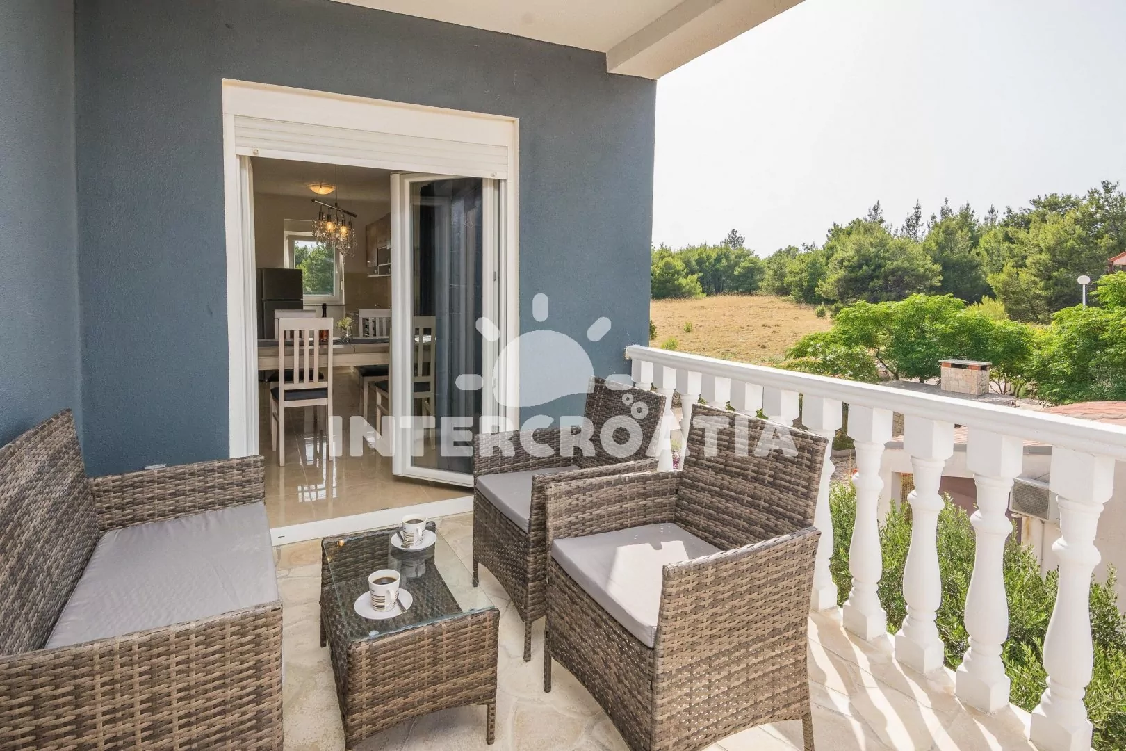 Vzdálenosti: Moře a oblázková pláž 600 m, obchod s potravinami 900 m, restaurace, kavárna, bar, potápění, pošta, veřejná doprava, lékárna, ambulance, půjčovna cyklistických kol, centrum, diskotéka a směnárna 1 km, čerpací stanice 3 km, banka 30km, trajekt (Zadar) 30 km, letiště (Zadar) 35 km.