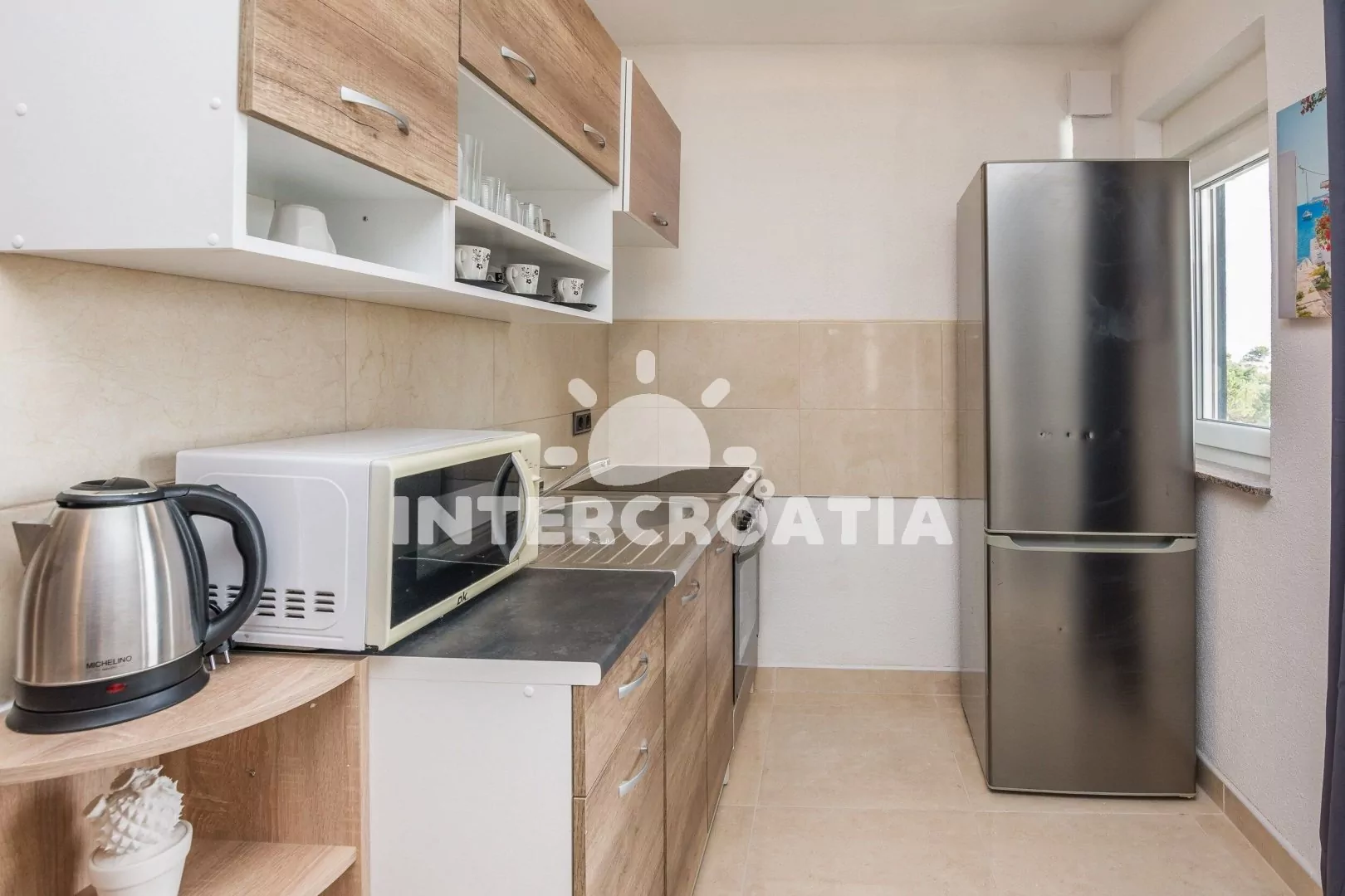 Moderně zařízený apartmánový dům se nachází 8 minut pěší chůzí od moře a pláže. Dům nabízí ubytování v klimatizovaných apartmánech s lodžiemi a venkovním posezením. Parkovací místa pro automobily jsou k dispozici přímo u domu.