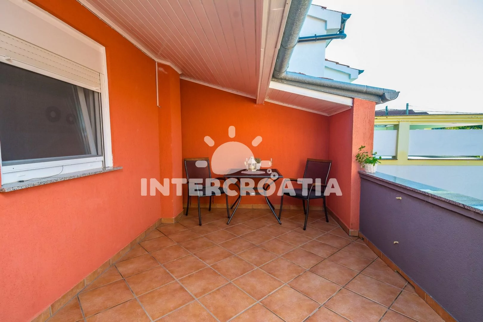 Apartmán (30 m2) s terasou a venkovním posezením se nachází v 1. patře domu. Apartmán má 1 ložnici a je vhodný pro 2 osoby. Obývací pokoj s jídelním stolem, pohovkou, televizí se satelitním programem…