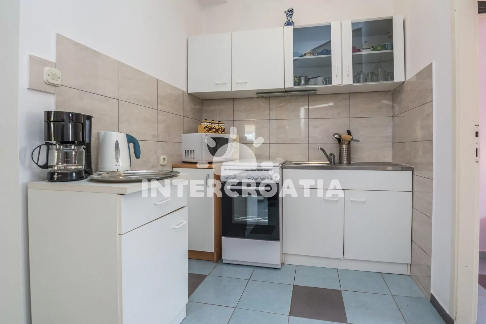 Vzdálenosti: Moře a oblázková pláž 700 m, supermarket 200 m, bar, restaurace, lékárna, centrum, pošta, směnárna, půjčovna cyklistických kol, potápění, diskotéka, ambulance a veřejná doprava 250 m, čerpací stanice 3 km, banka a přístav 30 km, trajekt (Zadar) 30 km, letiště (Zadar) 35 km.