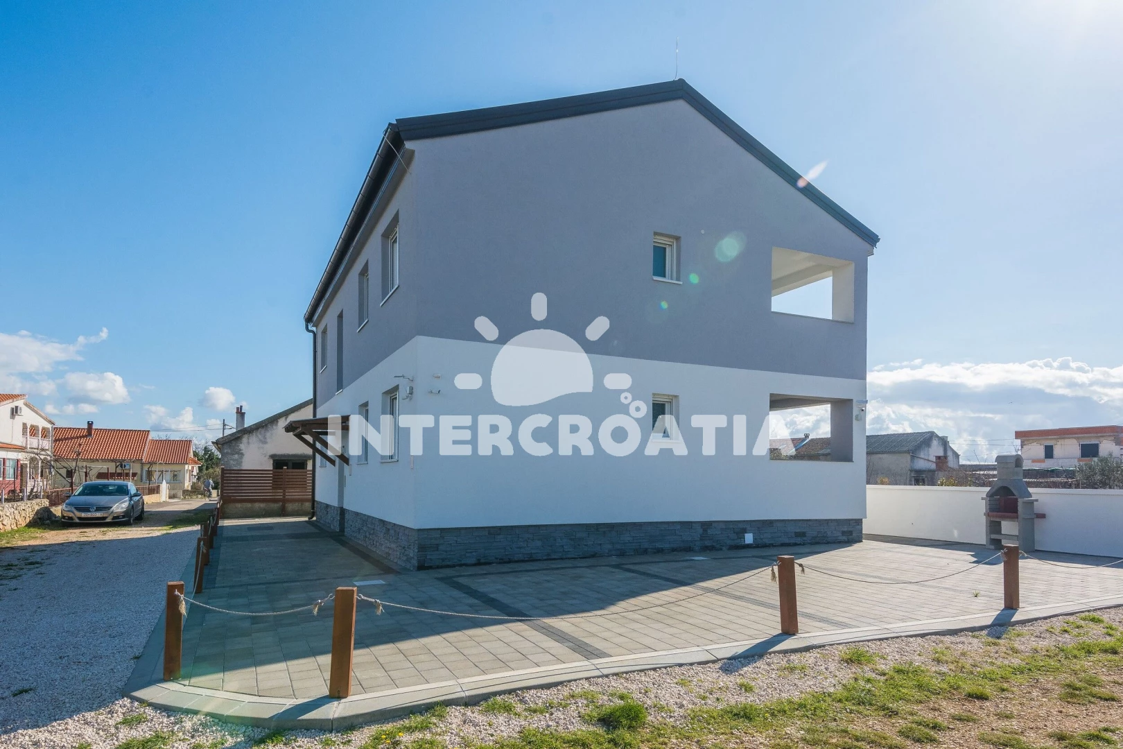 Vzdálenosti: Moře a oblázková pláž 770 m, centrum 50 m, supermarket, restaurace, bar, lékárna, ambulance, směnárna, pošta a veřejná doprava 150 m, diskotéka 500 m, půjčovna cyklistických kol a potápění 700 m, čerpací stanice 3 km, banka a přístav 30 km, trajekt (Zadar) 30 km, letiště (Zadar) 35 km.