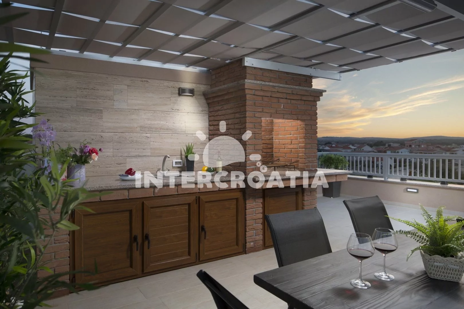 Moderně zařízená vila jen pár kroků od moře a pláže se nachází v klidné ulici. Vila nabízí ubytování v klimatizovaných apartmánech s lodžiemi a venkovním posezením. K dispozici je společná terasa s pergolou, posezením a zděným grilem. Parkovací místa pro automobily jsou u objektu.