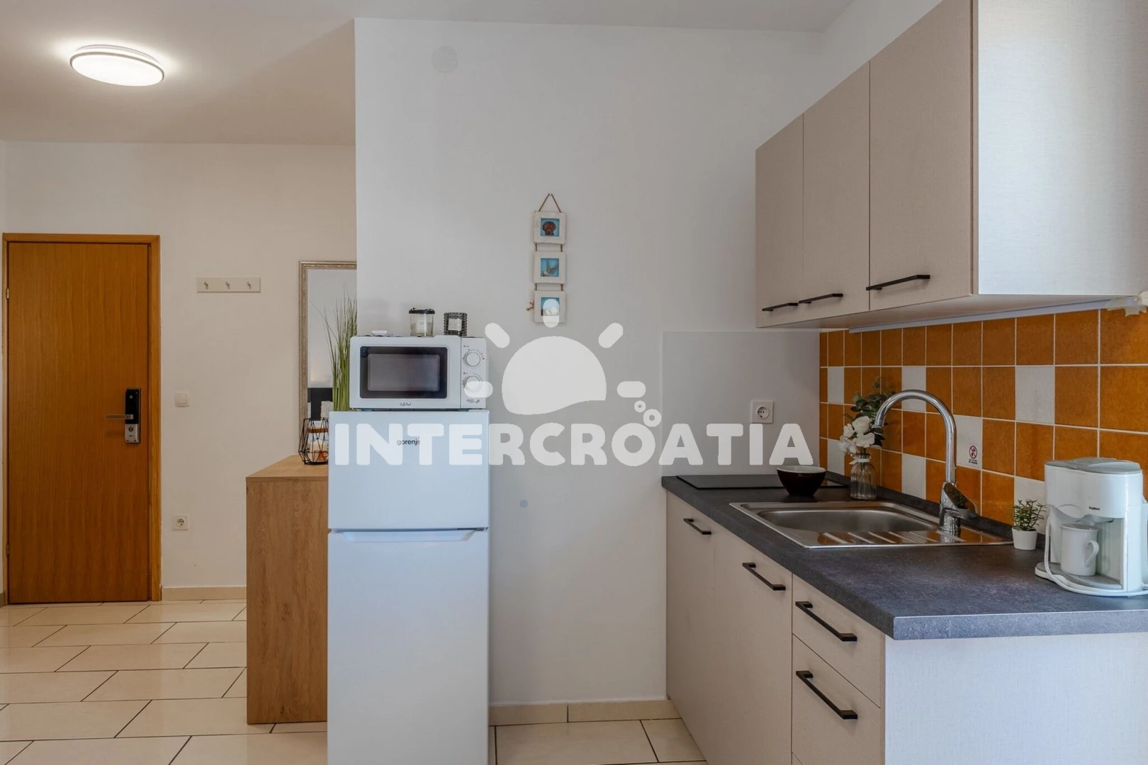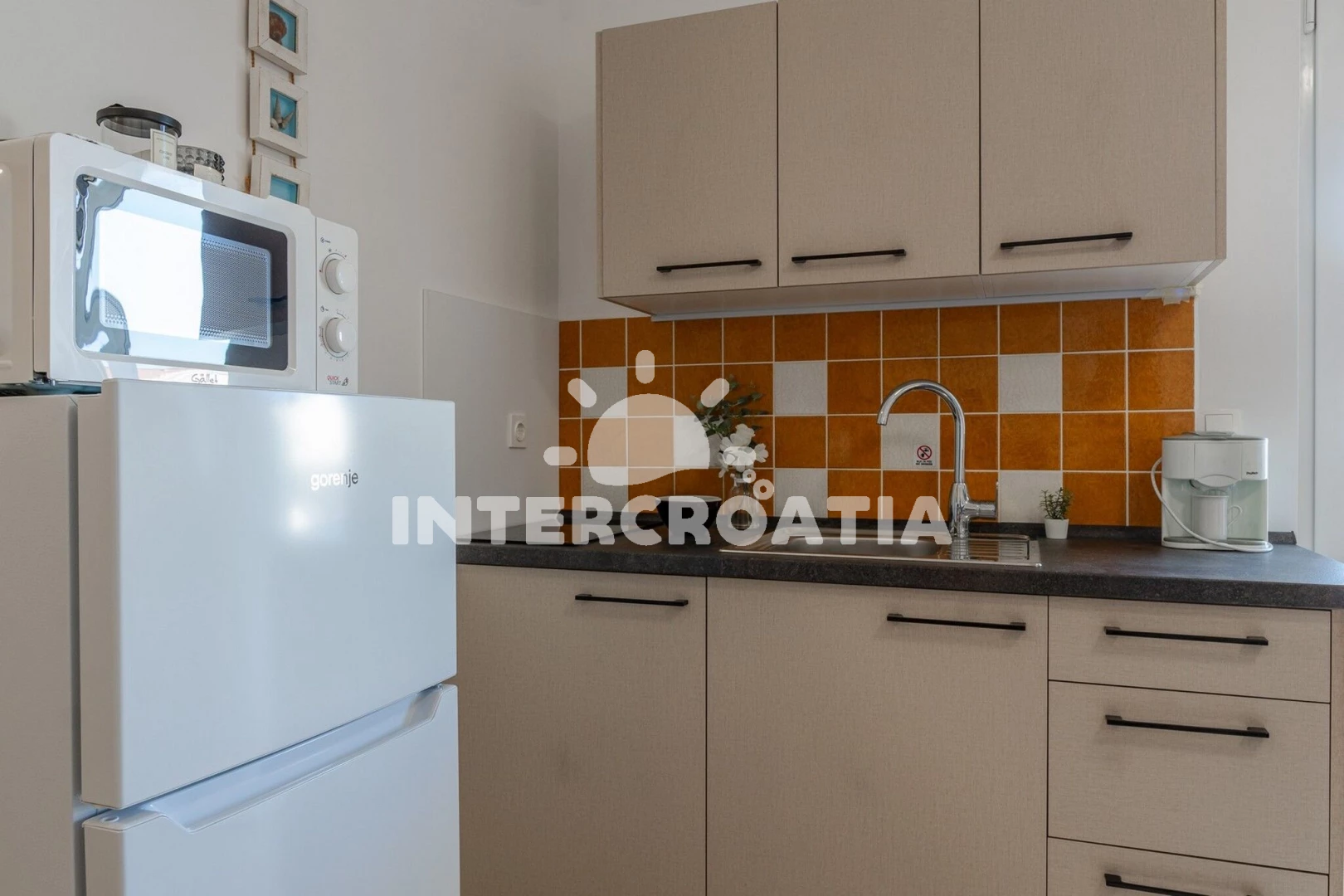 Vzdálenosti: Moře a oblázková pláž 20 m, bar a restaurace 130 m, supermarket 350 m, centrum, ambulance, lékárna, pošta, veřejná doprava, směnárna, potápění, diskotéka a půjčovna cyklistických kol 1 km, čerpací stanice a přístav 3 km, trajekt (Zadar) 30 km, letiště (Zadar) 35 km.