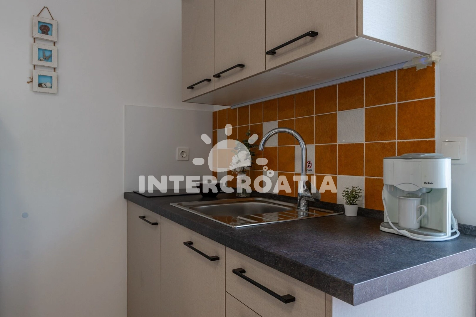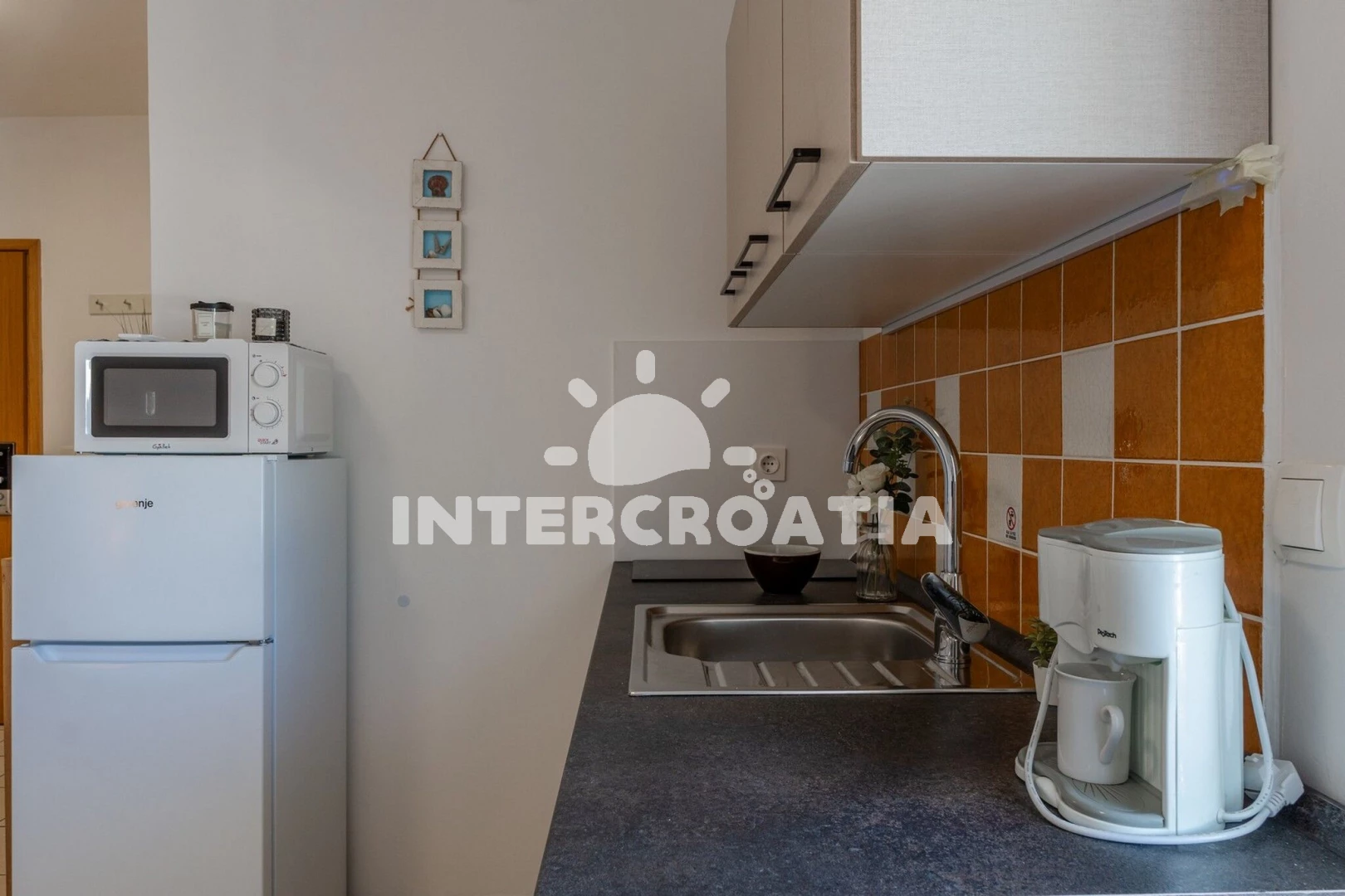 Apartmánová vila se nachází v klidné ulici přímo u břehu moře a pláže. Apartmány jsou klimatizované a disponují lodžiemi s venkovním posezením. Vila má vlastní oplocený pozemek se společnou terasou a grilem. U vily je dlážděné parkoviště pro automobily.