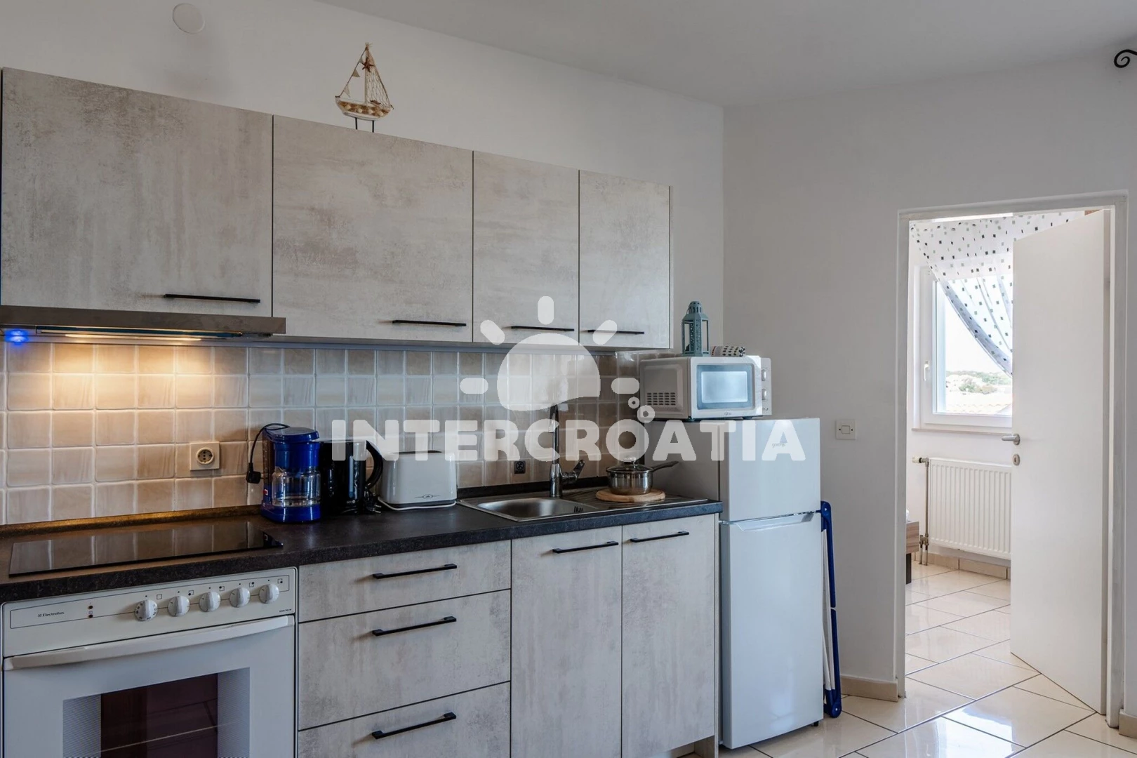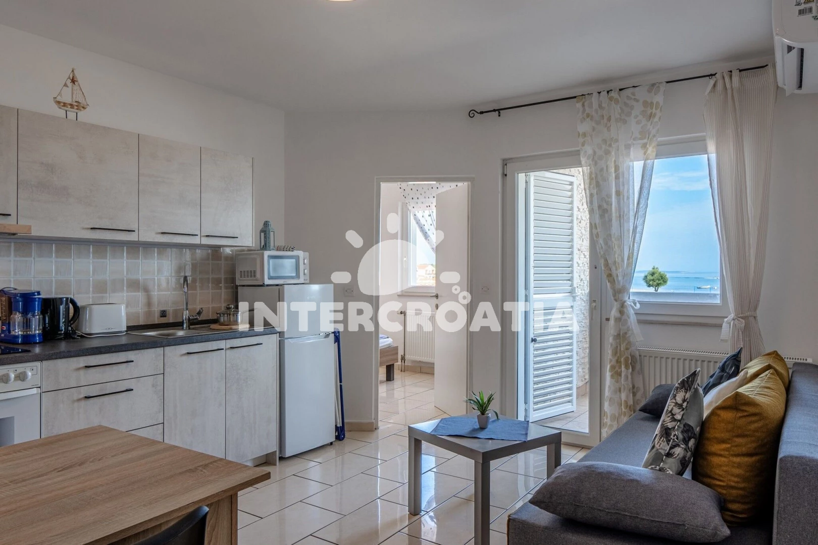 Vzdálenosti: Moře a oblázková pláž 20 m, bar a restaurace 130 m, supermarket 350 m, centrum, ambulance, lékárna, pošta, veřejná doprava, směnárna, potápění, diskotéka a půjčovna cyklistických kol 1 km, čerpací stanice a přístav 3 km, trajekt (Zadar) 30 km, letiště (Zadar) 35 km.