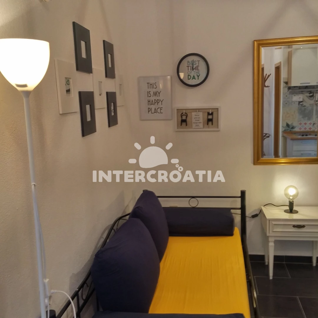 Apartmán se nachází 800 m od moře a pláže. Pláž je skalnatá, oblázková a větší kamení. Parkování je před domem.