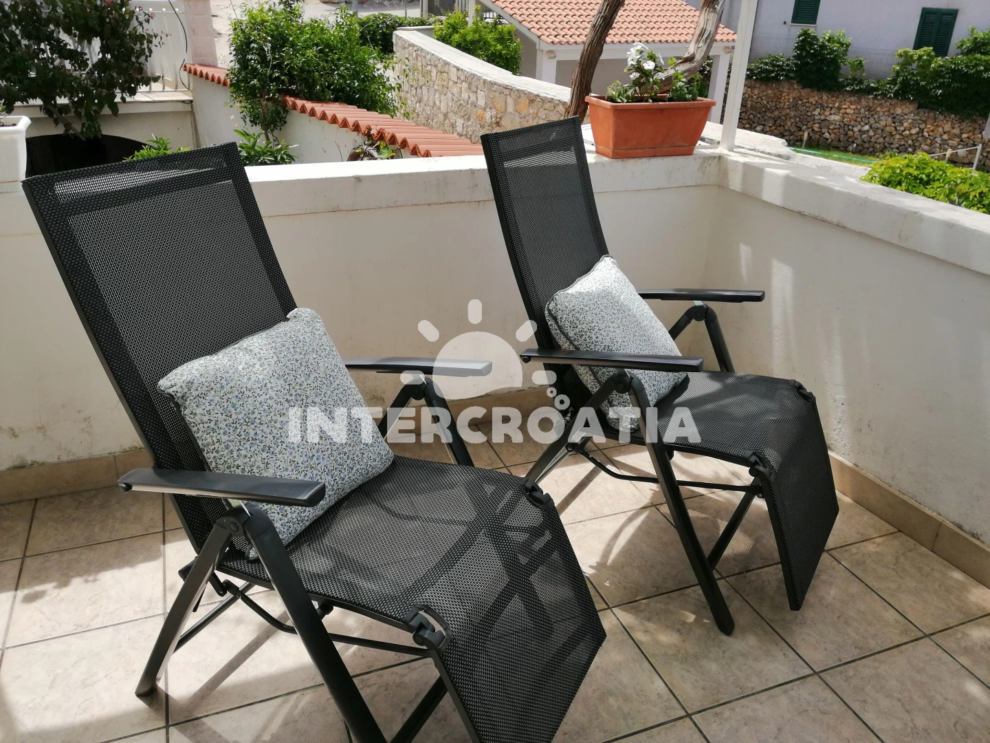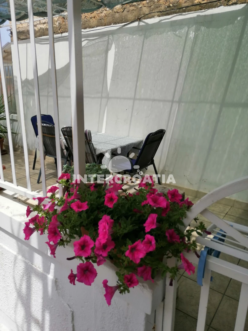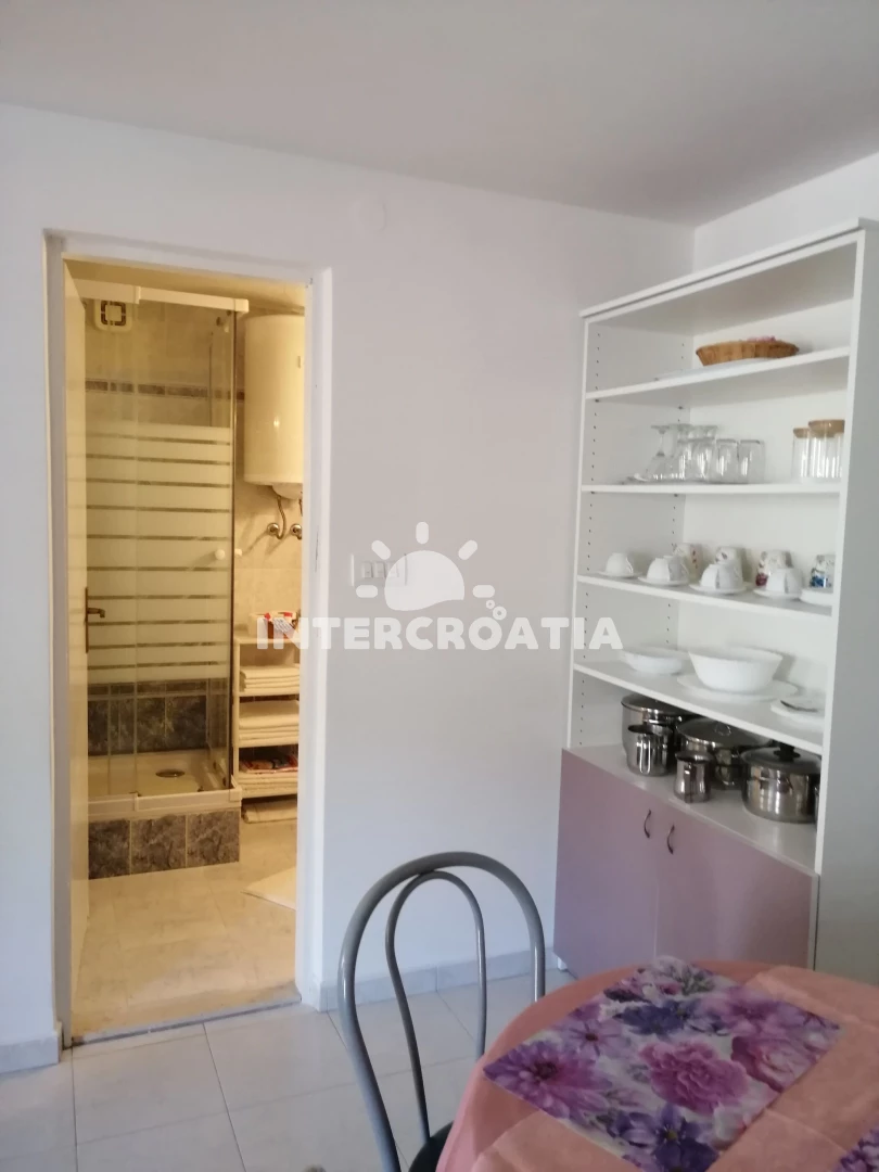 Apartmán se nachází 200 m od moře a pláže. Pláž je betonové desky, skalnatá a větší kamení. U objektu je k dispozici společná zahrada s posezením a grilem.