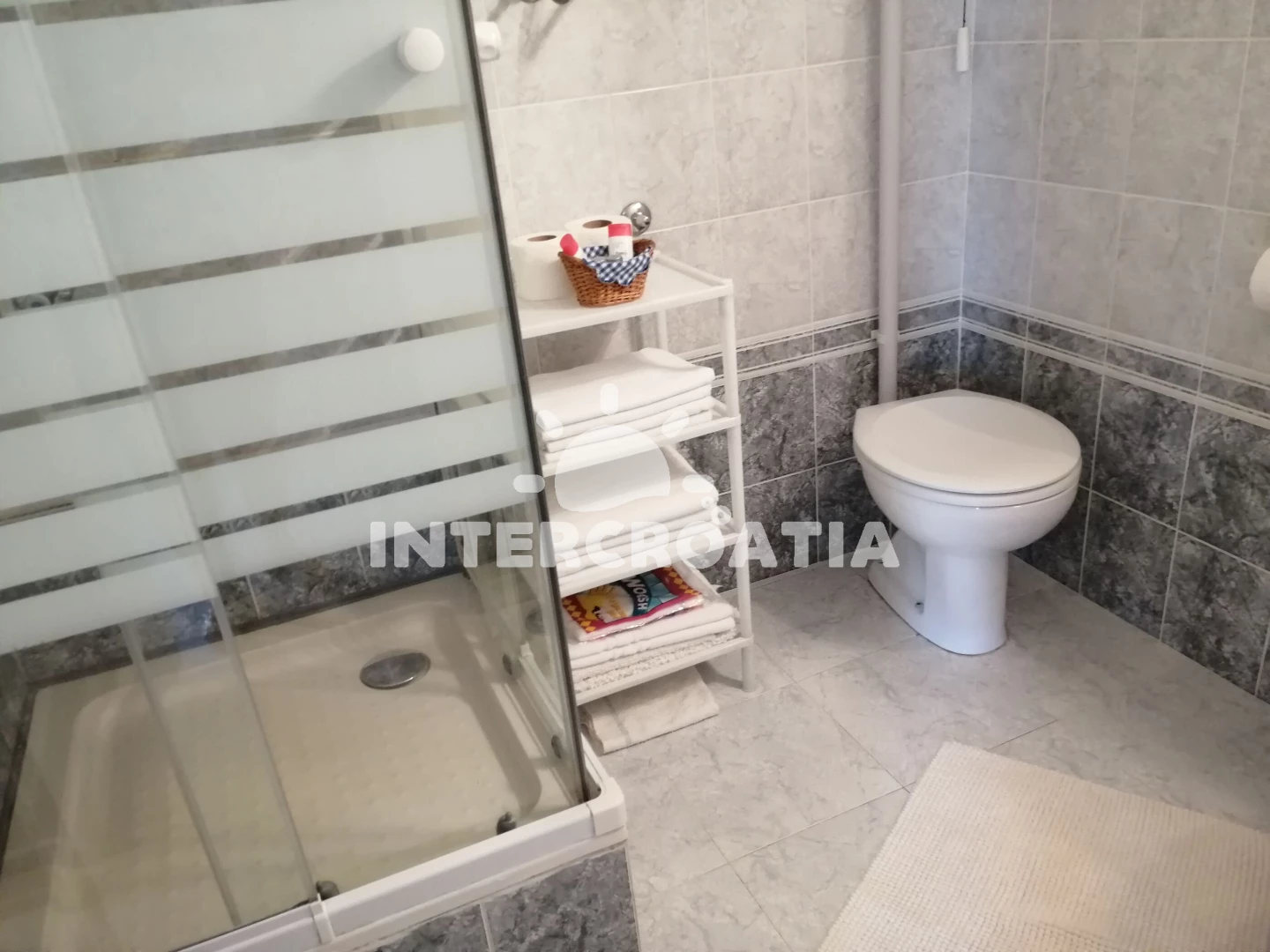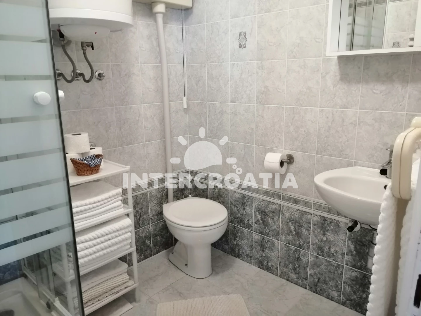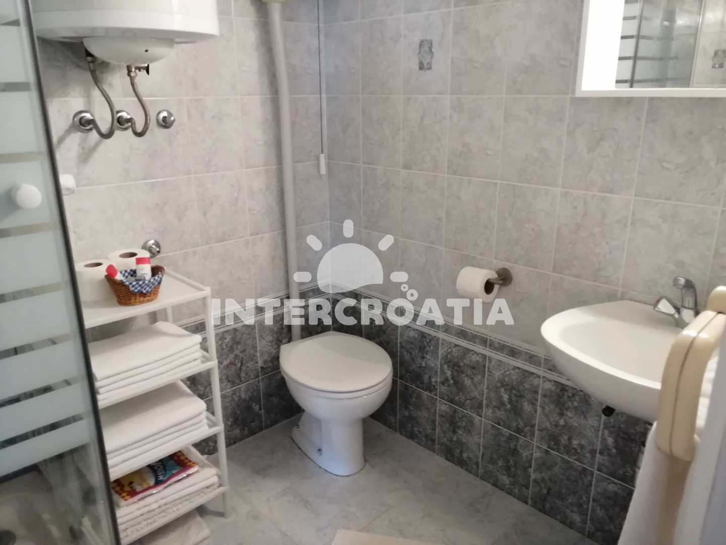 Apartmán se nachází 200 m od moře a pláže. Pláž je betonové desky, skalnatá a větší kamení. U objektu je k dispozici společná zahrada s posezením a grilem.