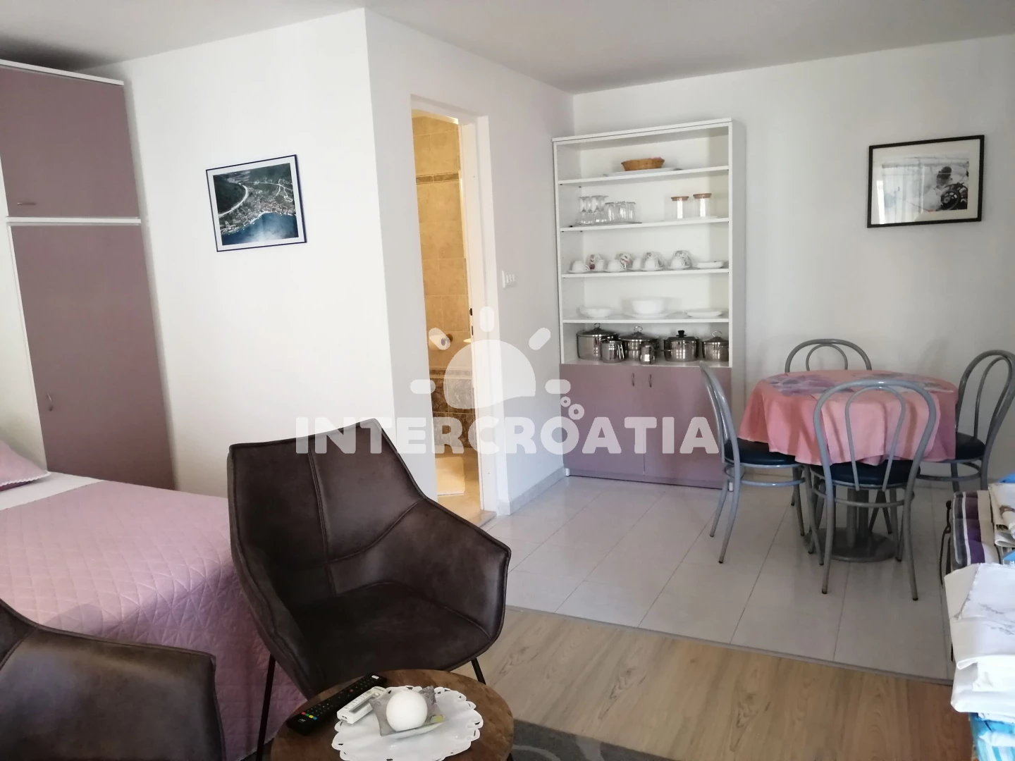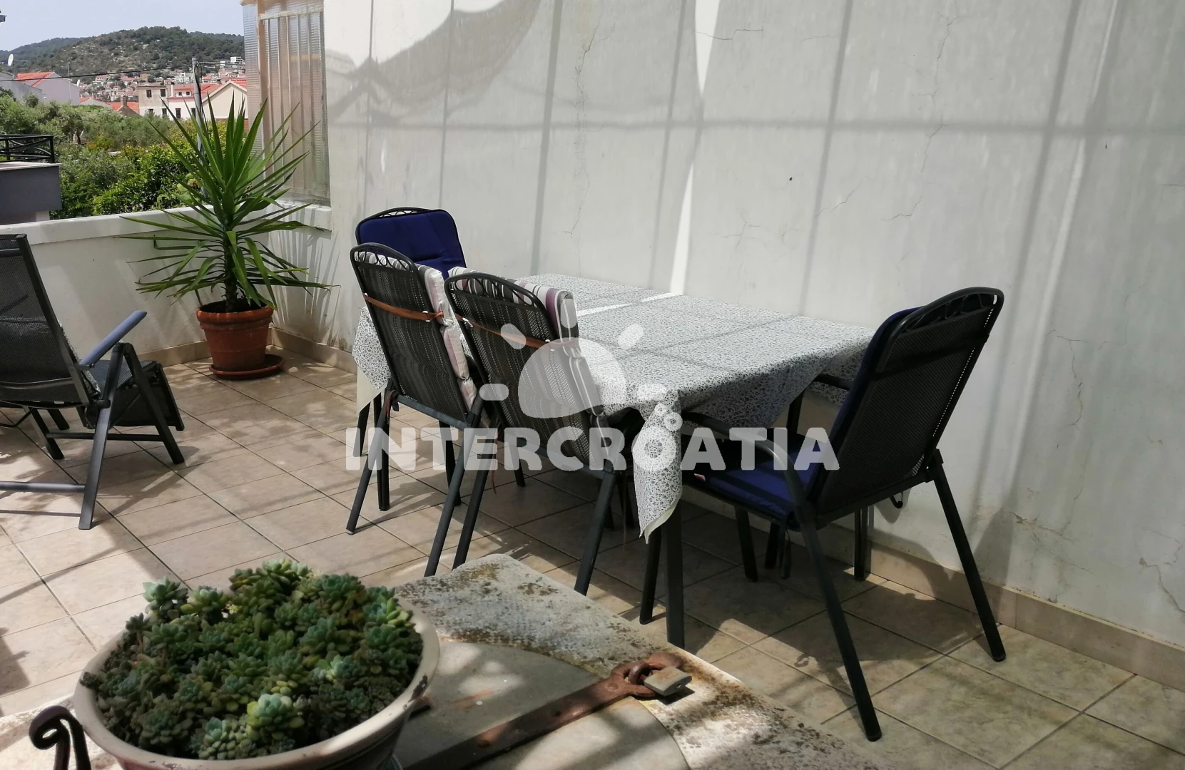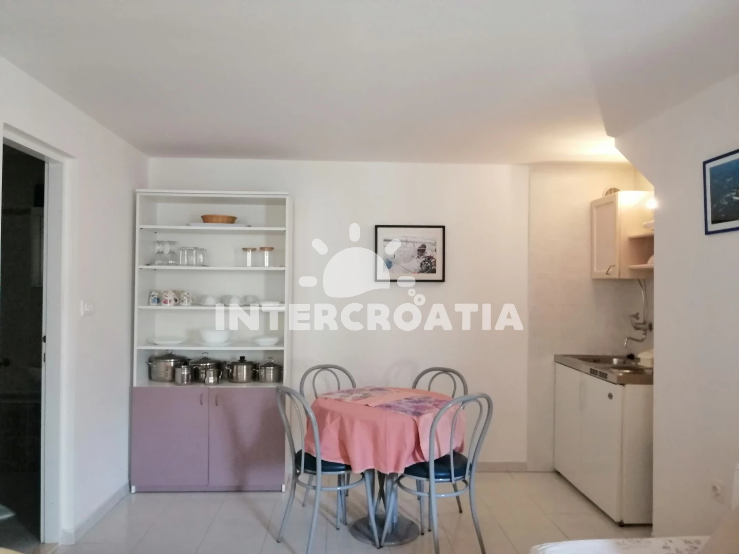 Vzdálenosti: Moře 170 m, pláž 200 m (betonové desky, skalnatá a větší kamení), půjčovna motorových člunů 100 m, půjčovna kol 100 m, restaurace 100 m, supermarket 130 m, bar 150 m, směnárna 150 m, muzeum 700 m, potápění 1 km, centrum 1 km, pošta 1 km, banka 1 km, ambulance 1,2 km, lékárna 1,2 km, tenisové kurty 1,3 km, čerpací stanice 1,3 km, veřejná doprava 1,3 km, diskotéka 1,5 km,