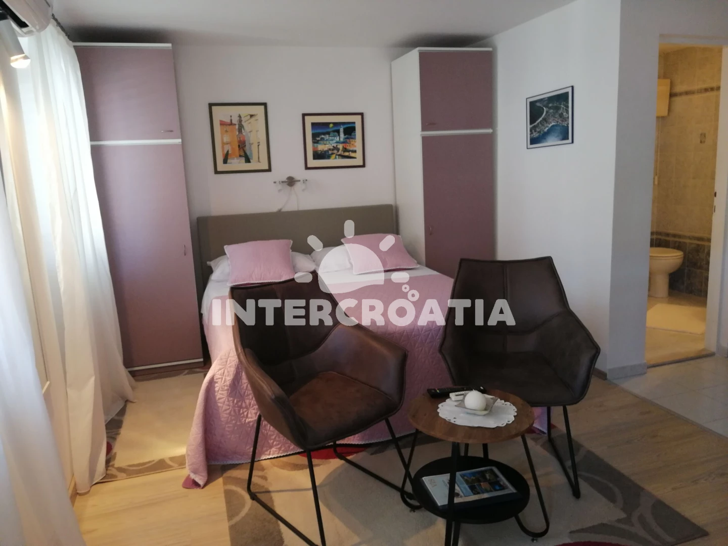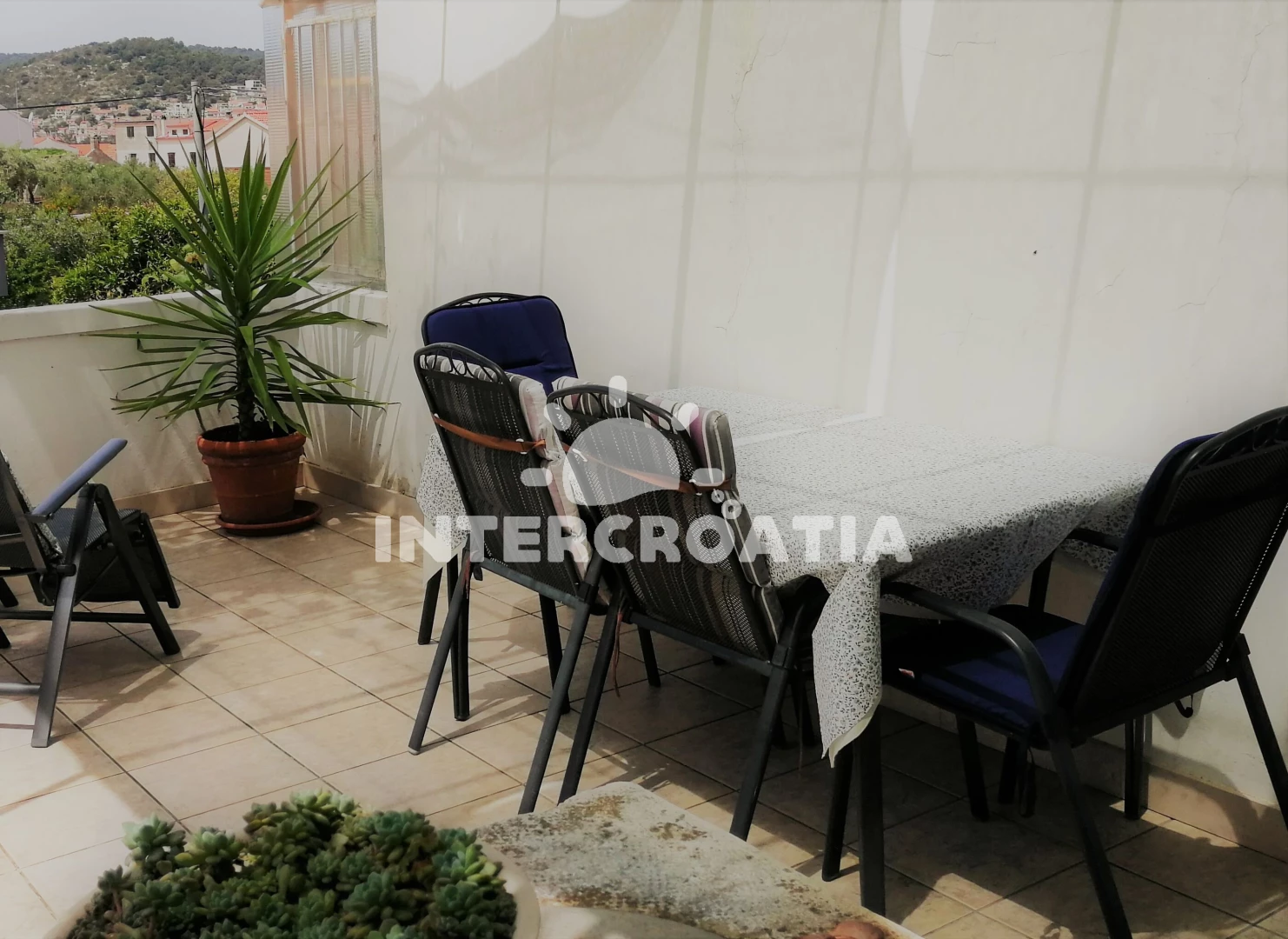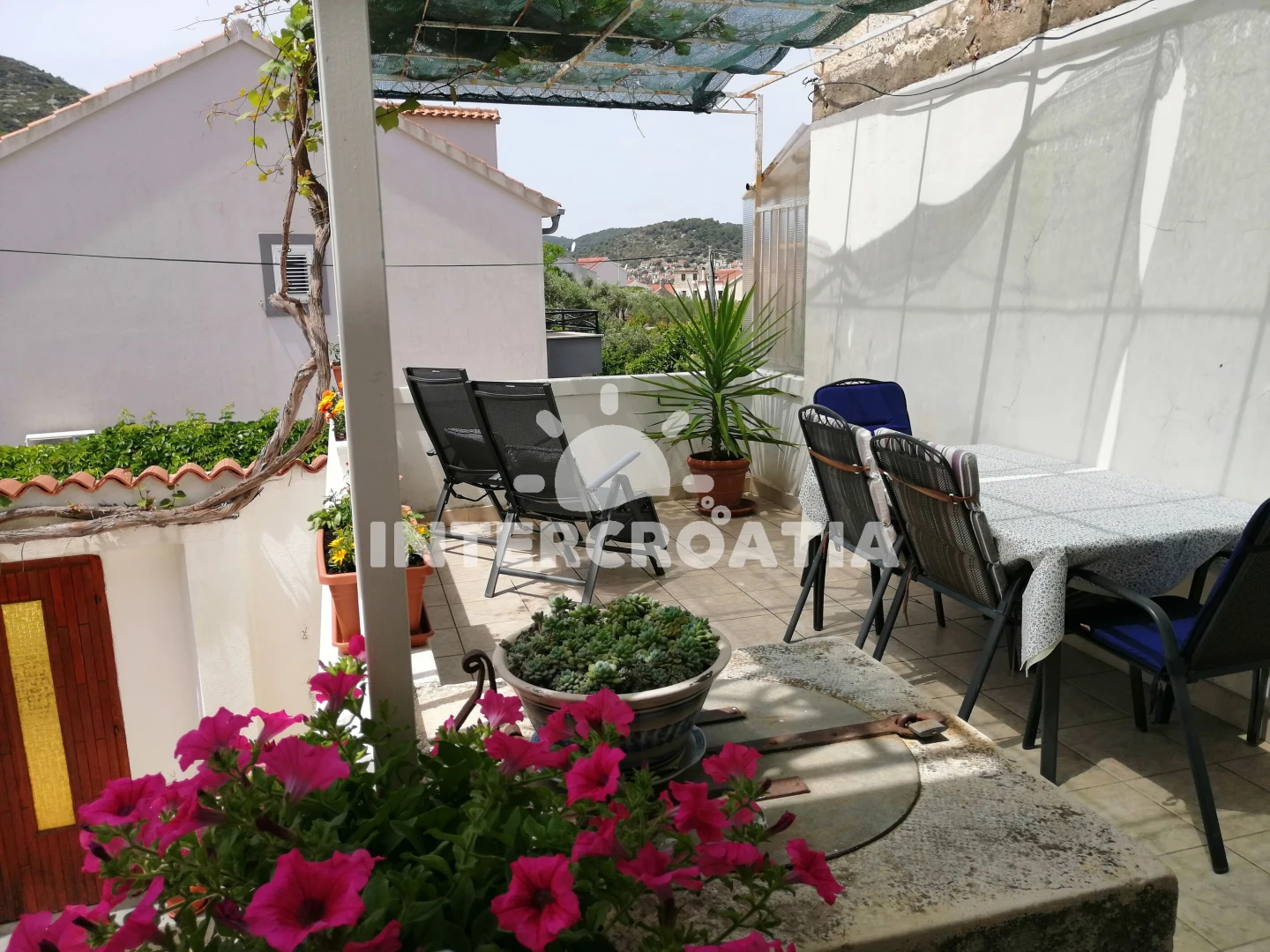 Vzdálenosti: Moře 170 m, pláž 200 m (betonové desky, skalnatá a větší kamení), půjčovna motorových člunů 100 m, půjčovna kol 100 m, restaurace 100 m, supermarket 130 m, bar 150 m, směnárna 150 m, muzeum 700 m, potápění 1 km, centrum 1 km, pošta 1 km, banka 1 km, ambulance 1,2 km, lékárna 1,2 km, tenisové kurty 1,3 km, čerpací stanice 1,3 km, veřejná doprava 1,3 km, diskotéka 1,5 km,