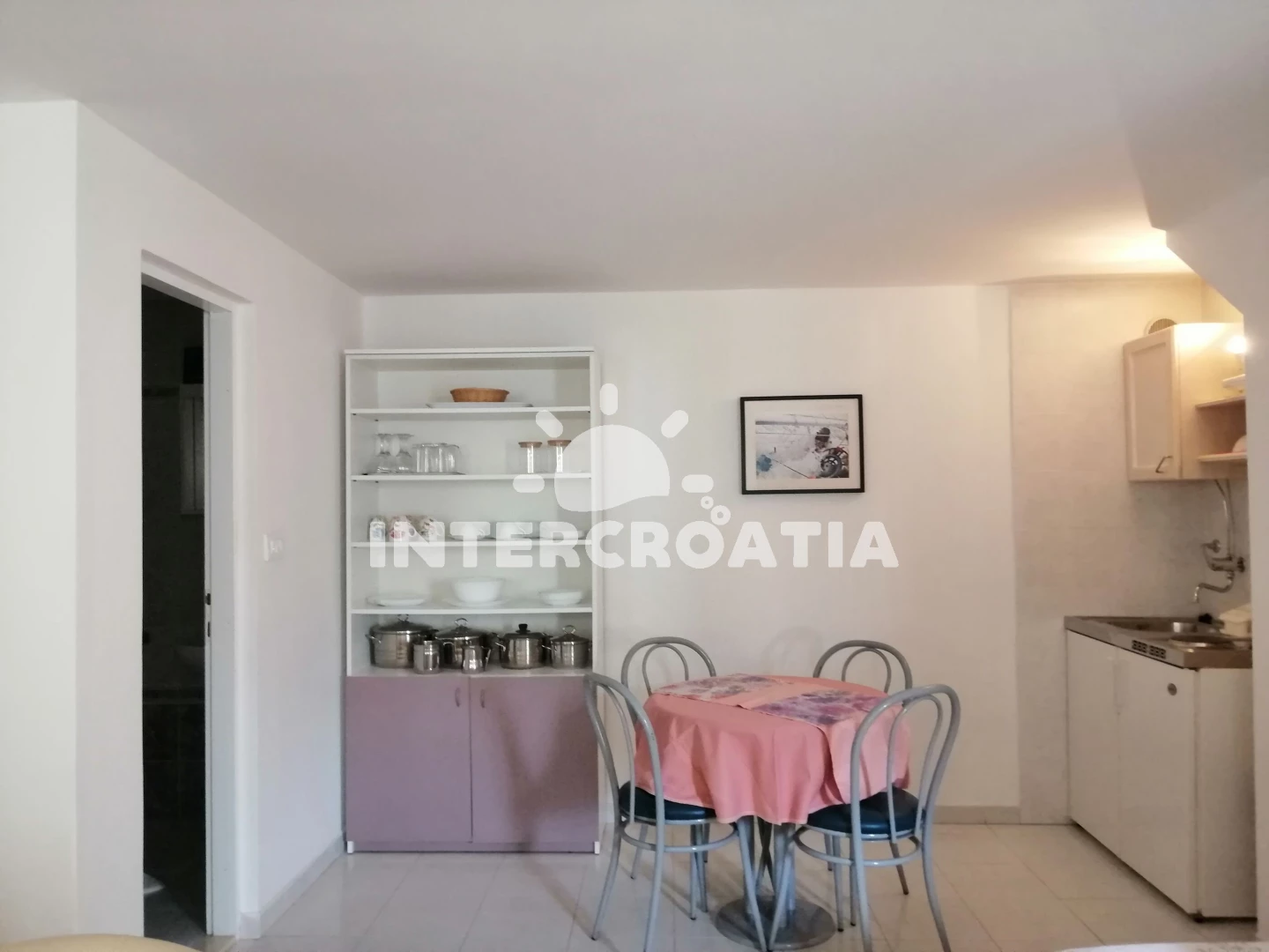 Vzdálenosti: Moře 170 m, pláž 200 m (betonové desky, skalnatá a větší kamení), půjčovna motorových člunů 100 m, půjčovna kol 100 m, restaurace 100 m, supermarket 130 m, bar 150 m, směnárna 150 m, muzeum 700 m, potápění 1 km, centrum 1 km, pošta 1 km, banka 1 km, ambulance 1,2 km, lékárna 1,2 km, tenisové kurty 1,3 km, čerpací stanice 1,3 km, veřejná doprava 1,3 km, diskotéka 1,5 km,