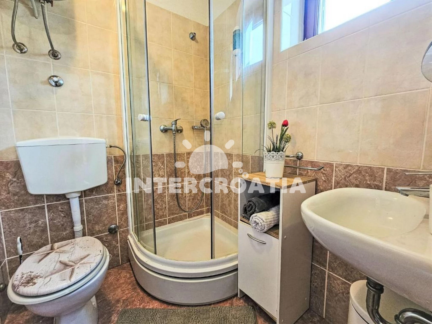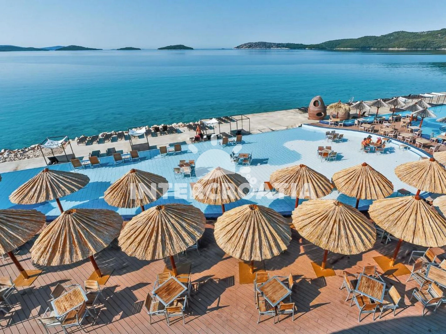 Vzdálenosti: Moře 2,4 km, pláž 2,8 km (oblázky), restaurace 2,3 km, bar 2,3 km, centrum 2,5 km, supermarket 2,5 km, pošta 2,5 km, lékárna 2,5 km, čerpací stanice 3 km, banka 5 km, ambulance 5 km, trajekt (Šibenik) 6 km, marina 6 km, letiště (Zadar) 70 km,