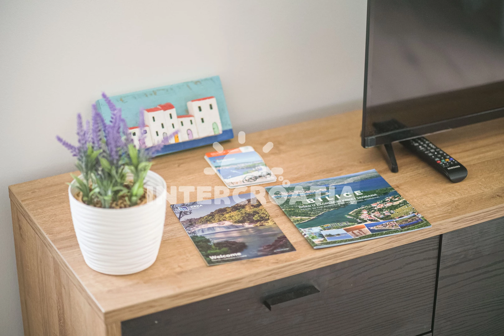 Vzdálenosti: Moře 30 m, pláž 40 m (oblázková a betonové desky), bar 50 m, marina 100 m, supermarket 250 m, restaurace 250 m, centrum 300 m, veřejná doprava 500 m, pošta 3,8 km, ambulance 4 km, lékárna 4 km, banka 8 km, trajekt (Šibenik) 9 km, park Plitvice 14 km, letiště (Split) 58 km,