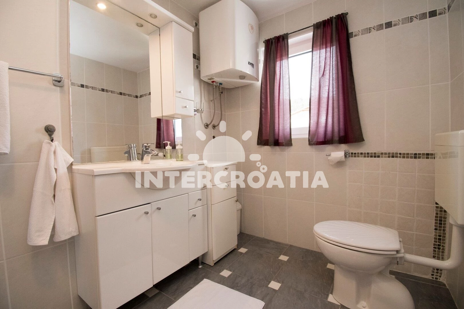 Vzdálenosti: Moře 300 m, pláž 400 m (oblázková a betonové desky), restaurace 500 m, centrum 600 m, bar 600 m, supermarket 800 m, veřejná doprava 800 m, čerpací stanice 5 km, lékárna 6 km, ambulance 6 km, diskotéka 8 km, půjčovna motorových člunů 8 km, půjčovna kol 8 km, banka 8 km, pošta 8 km, muzeum 8 km, marina 9 km, trajekt (Šibenik) 9 km, park Plitvice 13 km, letiště (Split) 58 km,