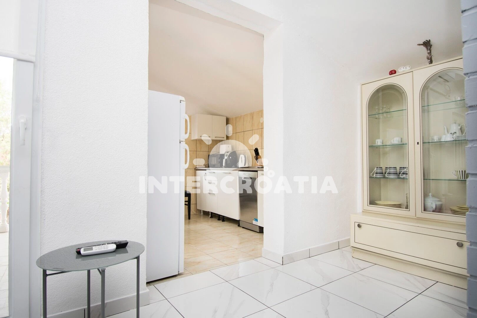 Vzdálenosti: Moře 100 m, pláž 200 m (oblázková a betonové desky), veřejná doprava 350 m, supermarket 350 m, centrum 400 m, bar 400 m, restaurace 400 m, čerpací stanice 5 km, ambulance 6 km, lékárna 6 km, půjčovna kol 8 km, půjčovna motorových člunů 8 km, banka 8 km, muzeum 8 km, pošta 8 km, diskotéka 8 km, marina 9 km, trajekt (Šibenik) 9 km, park Plitvice 13 km, letiště (Split) 58 km,