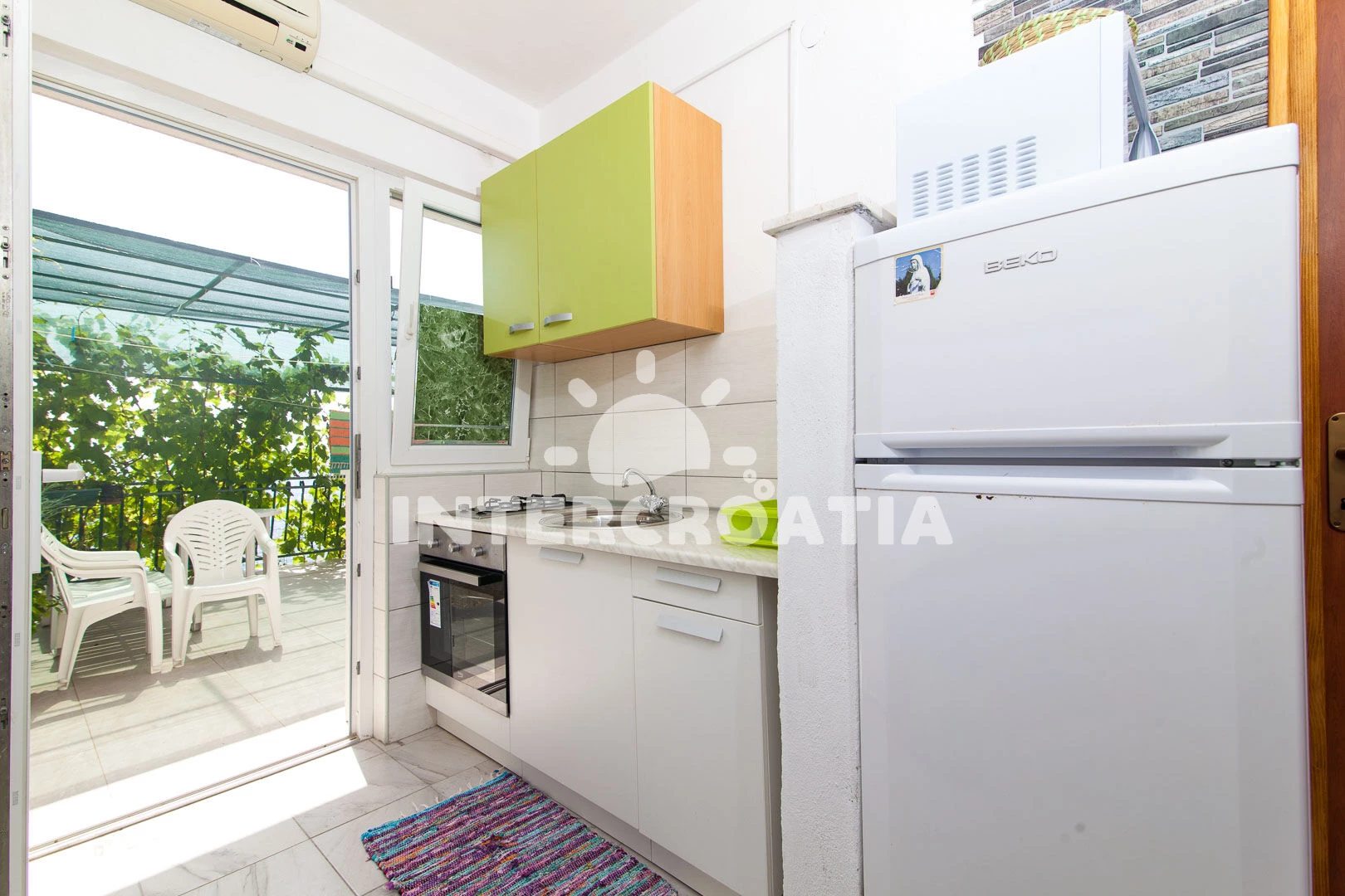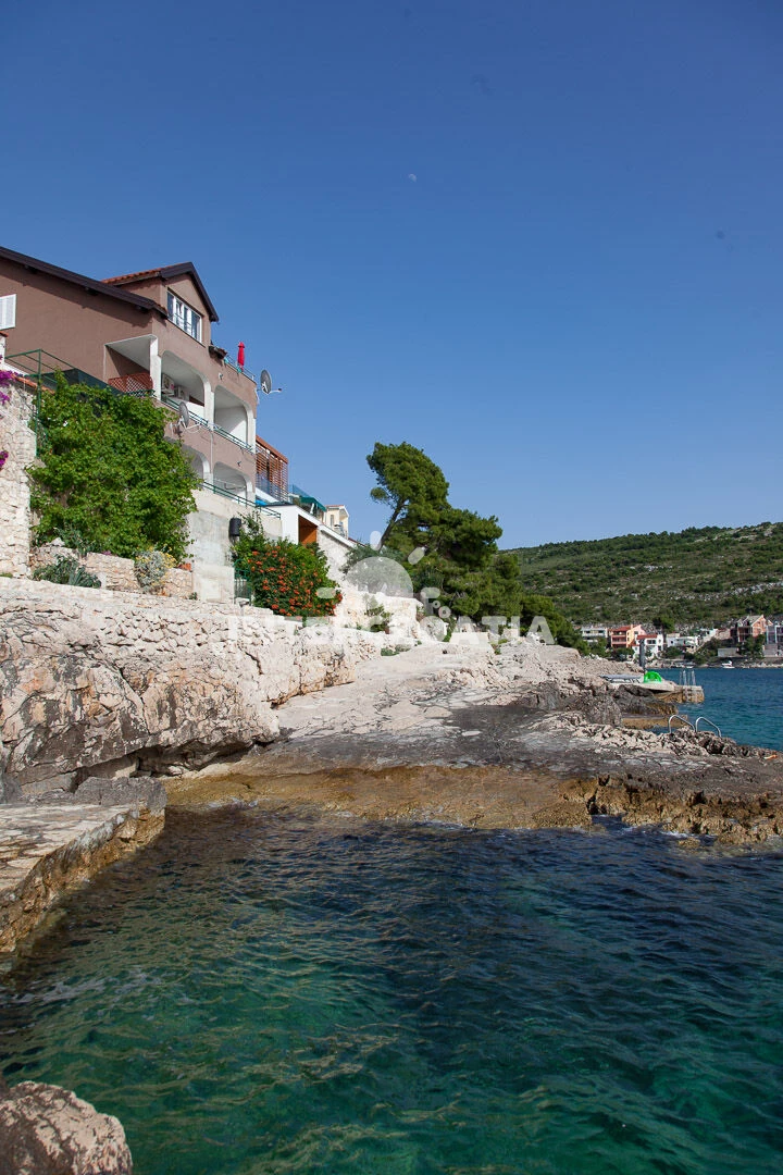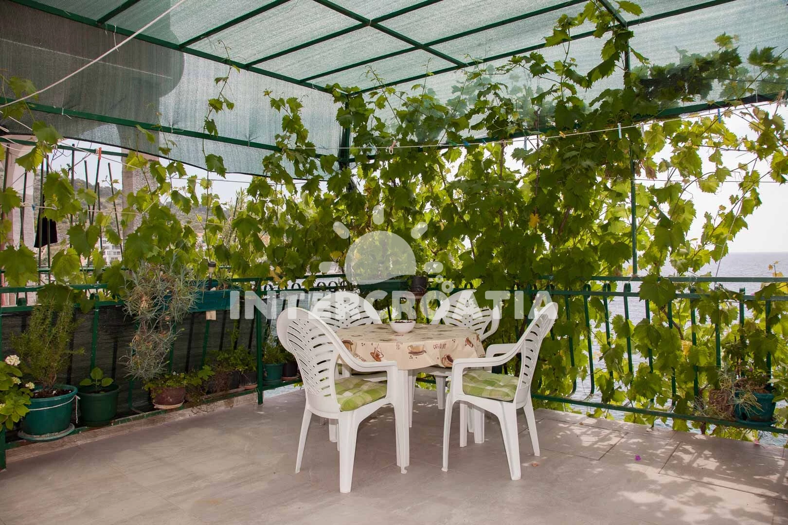 Apartmán se nachází 10 m od moře a pláže. Pláž je skalnatá, oblázková a betonové desky. U objektu je k dispozici společná zahrada s posezením a grilem. Parkování je před domem.