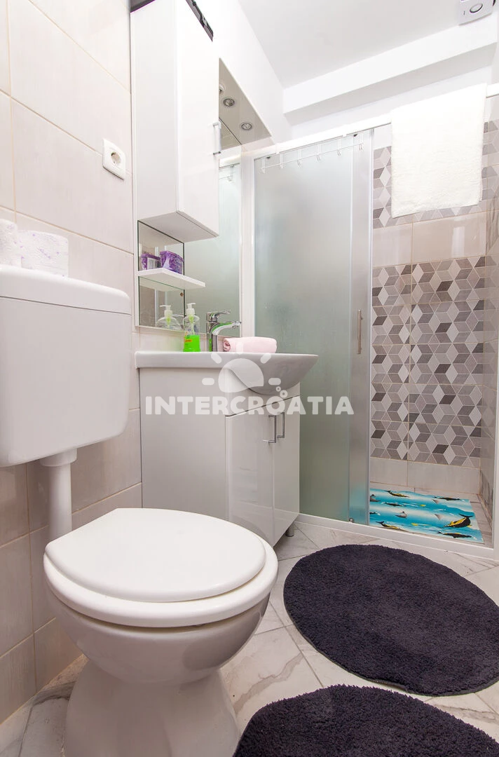 Vzdálenosti: Moře 10 m, pláž 10 m (skalnatá, oblázková a betonové desky), kotviště pro čluny 15 m, restaurace 100 m, supermarket 1 km, bar 1,6 km, banka 4 km, pošta 4 km, centrum 4 km, čerpací stanice 4 km, směnárna 4 km, lékárna 4 km, ambulance 4,9 km, diskotéka 5 km, marina 14 km, trajekt (Šibenik) 22 km, letiště (Split) 45 km,
