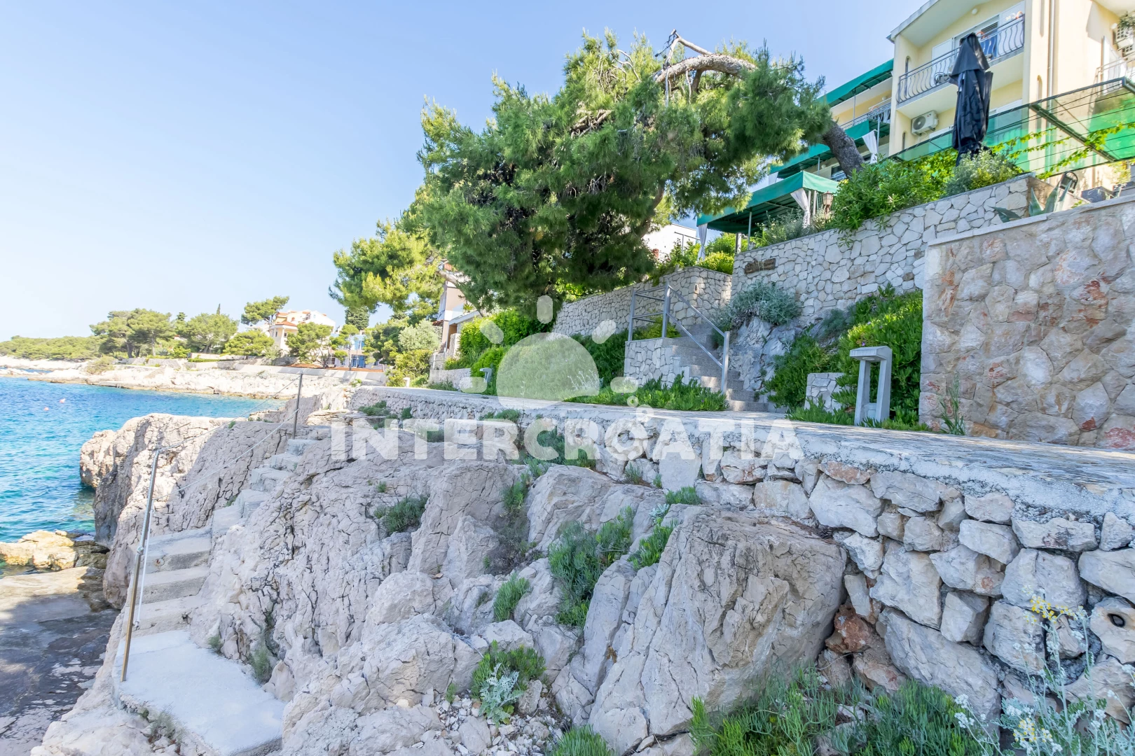 Vzdálenosti: Moře 10 m, pláž 10 m (skály), kotviště pro čluny 10 m, restaurace 160 m, supermarket 1 km, bar 1,3 km, tenisové kurty 3,8 km, potápění 3,8 km, mini golf 3,8 km, centrum 4 km, lékárna 4 km, čerpací stanice 4 km, směnárna 4 km, banka 4,1 km, půjčovna kol 4,1 km, ambulance 4,5 km, půjčovna motorových člunů 4,5 km, diskotéka 4,8 km, marina 6,3 km, letiště (Split) 32 km, pošta 40 km, trajekt (Split) 44 km,