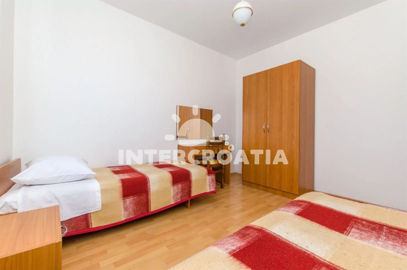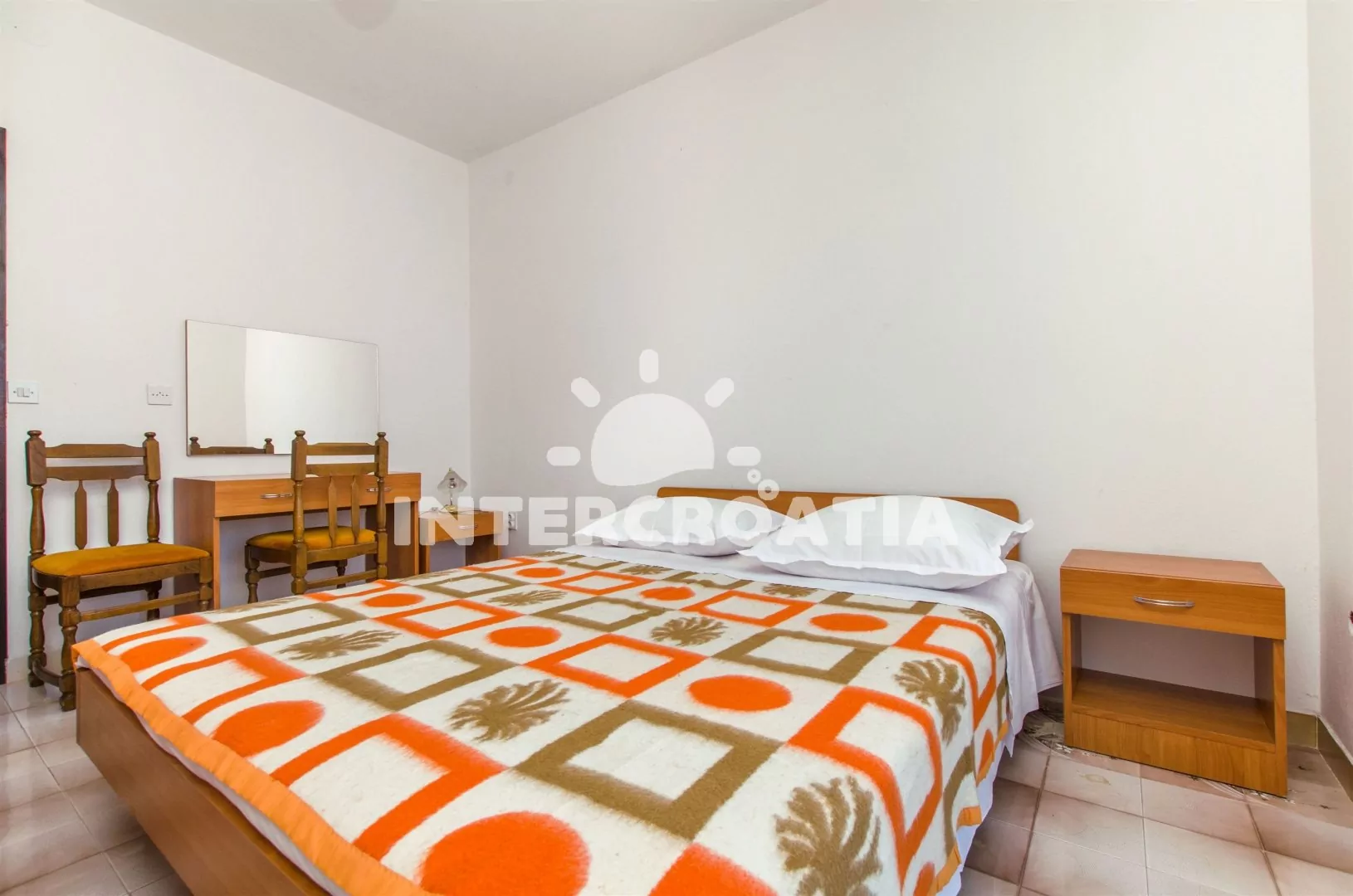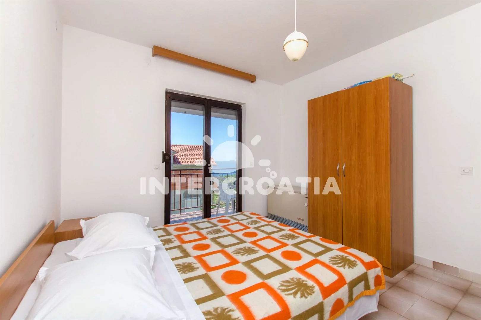 Apartmán v prvním patře domu s vlastním balkonem a výhledem na moře je vhodný pro 4 osoby. Kuchyň je vybavena jídelním stolem pro 4 osoby, kuchyňskou linkou se sporákem, troubou, nádobím a lednicí s mrazákem. První ložnice s jedním dvoulůžkem a vstupem na terasu. Druhá ložnice s dvěma jednolůžky. Koupelna se sprchovým koutem, umyvadlem a wc. Hostům je k dispozici parkování u objektu zdarma.
