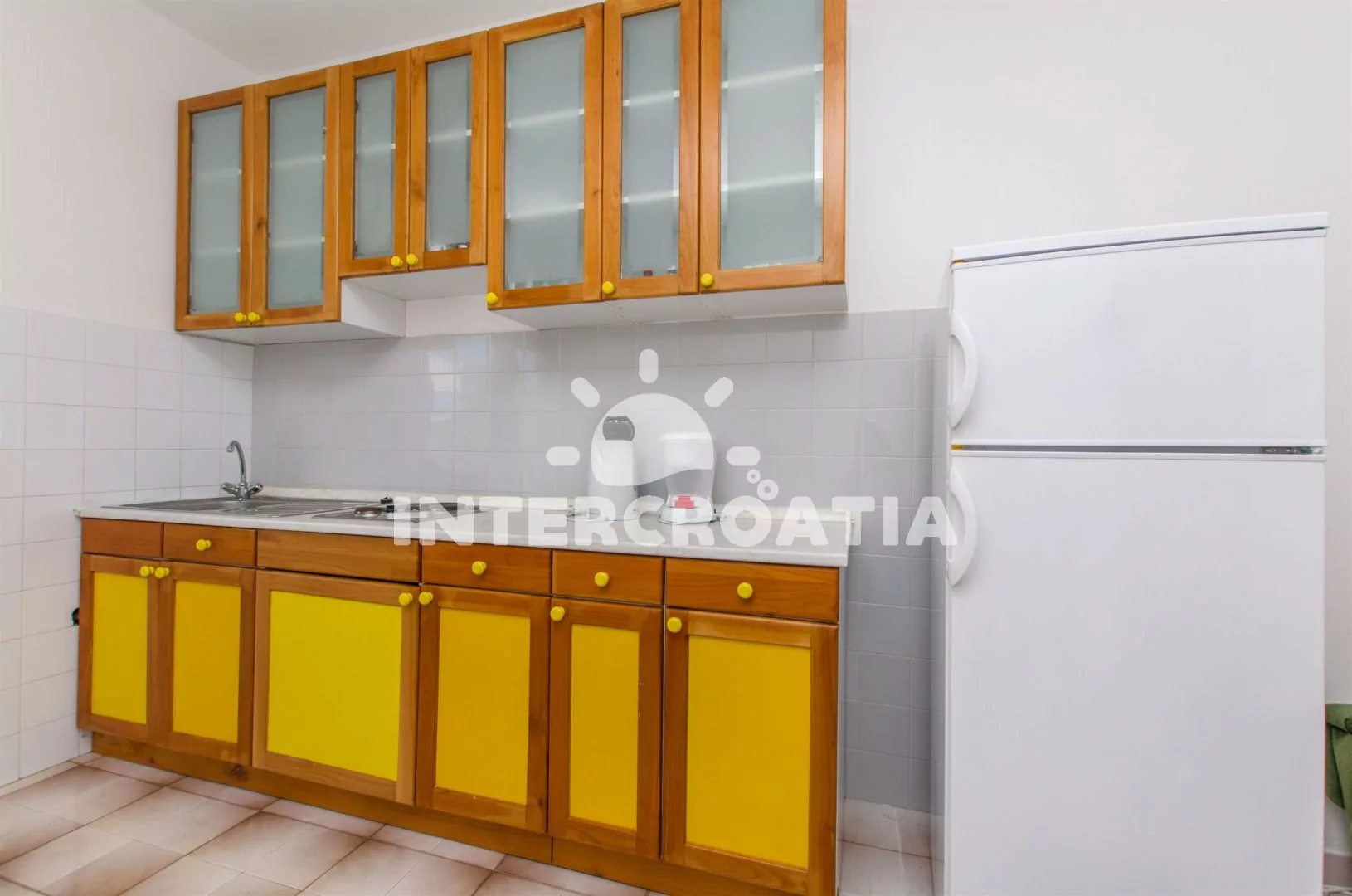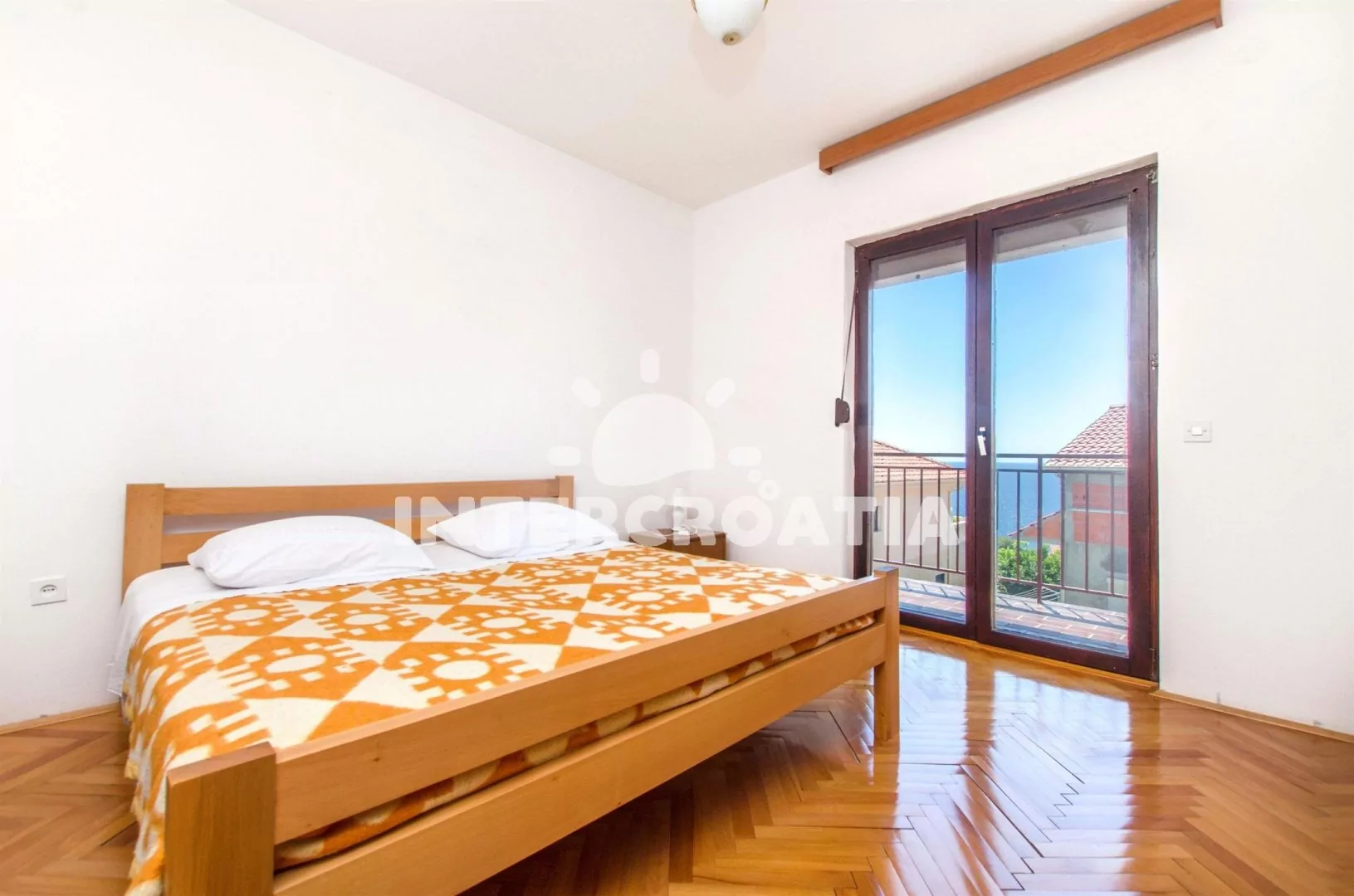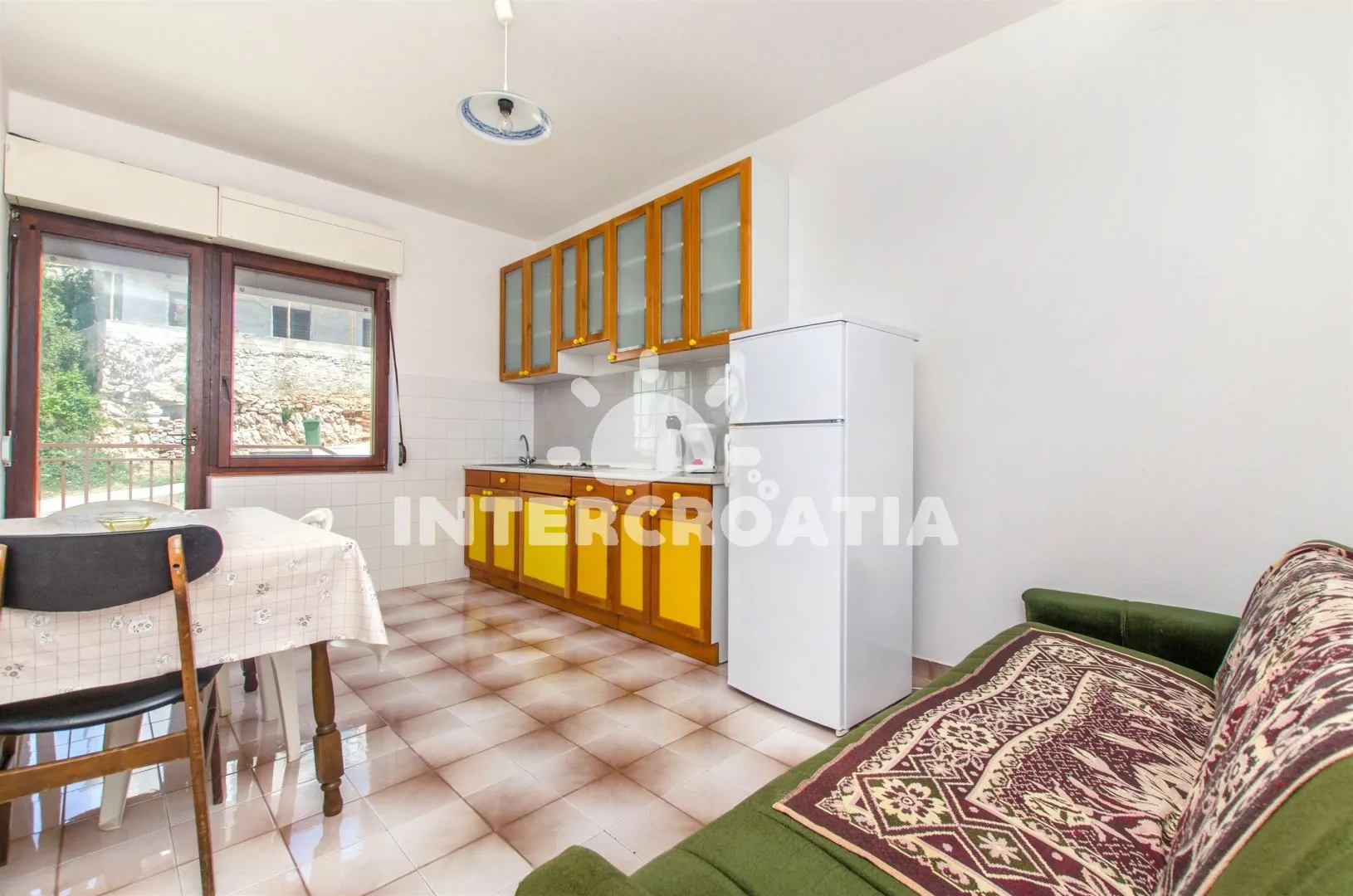 Apartmán v prvním patře domu s vlastním balkonem a výhledem na moře je vhodný pro 2 až 3 osoby. Kuchyň je vybavena jídelním stolem, pohovkou (rozložitelná na extra lůžko pro 1 osobu), kuchyňskou linkou s dvouplotýnkovým sporákem, troubou, nádobím a lednicí s mrazákem. Ložnice s jedním dvoulůžkem a vstupem na balkon. Koupelna se sprchovým koutem, umyvadlem a wc. Hostům je k dispozici parkování u objektu zdarma.