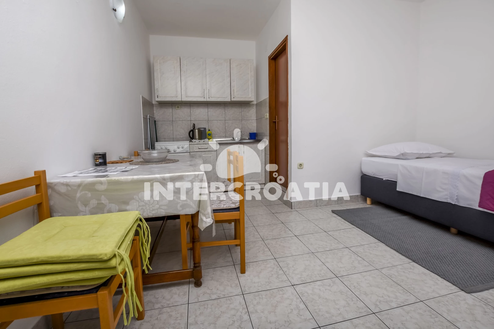 Apartmán (34 m2) s terasou, a výhledem na moře. Nachází se v 1. patře objektu. Apartmán má 1 ložnici a je vhodný pro až 4 osoby. Kuchyňská linka je vybavena varnou deskou, troubou, kávovarem,…