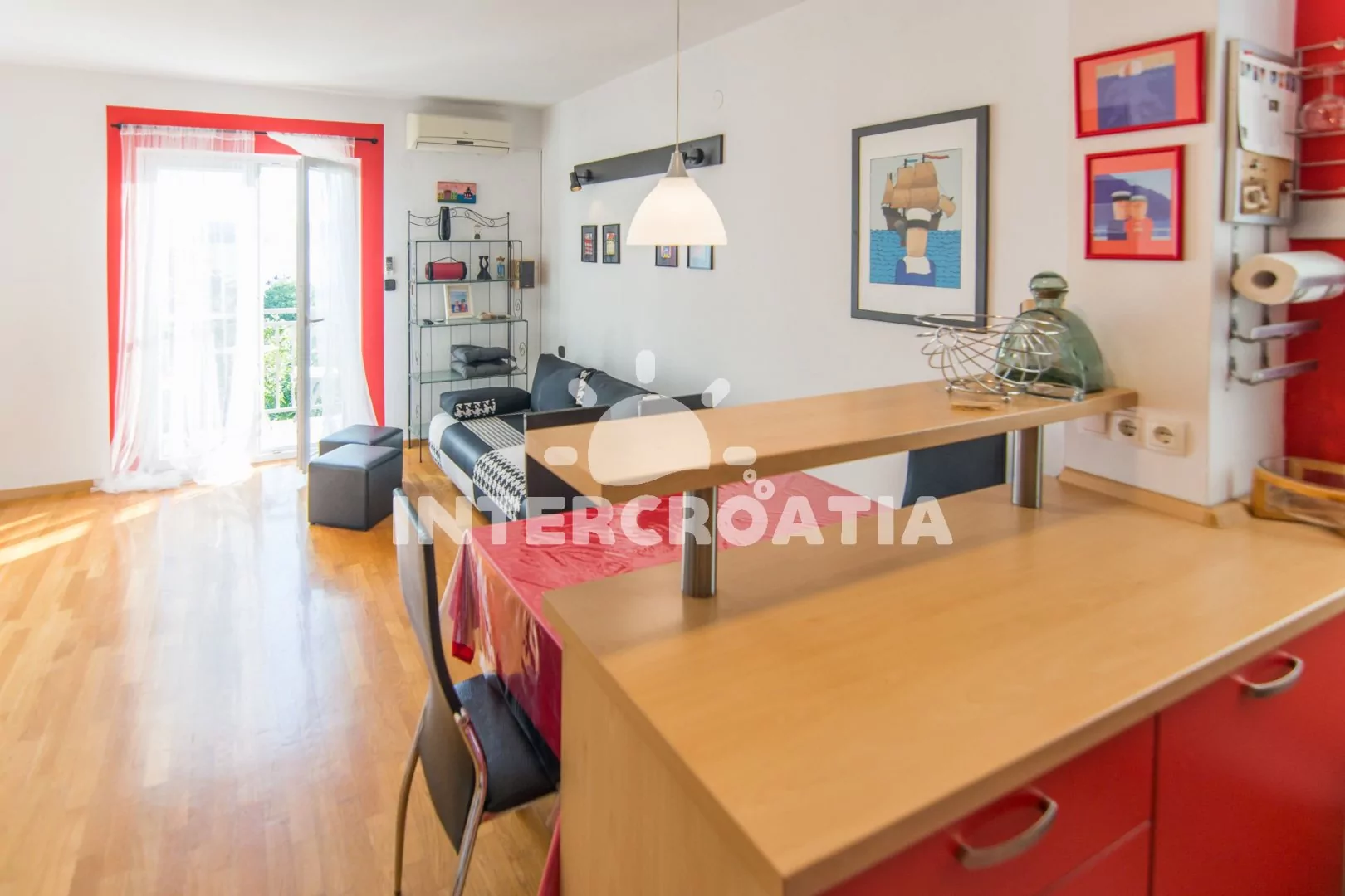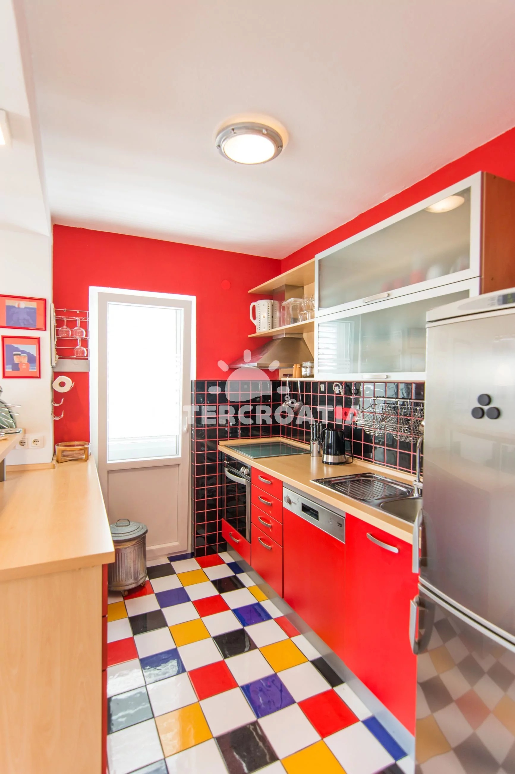 Apartmán (60 m2) s balkonem a výhledem na moře se nachází v 1. patře domu a je vhodný pro 2 až 4 osoby. Obývací pokoj je spojený s kuchyní. Kuchyňská linka je vybavena sklokeramickou varnou deskou,…