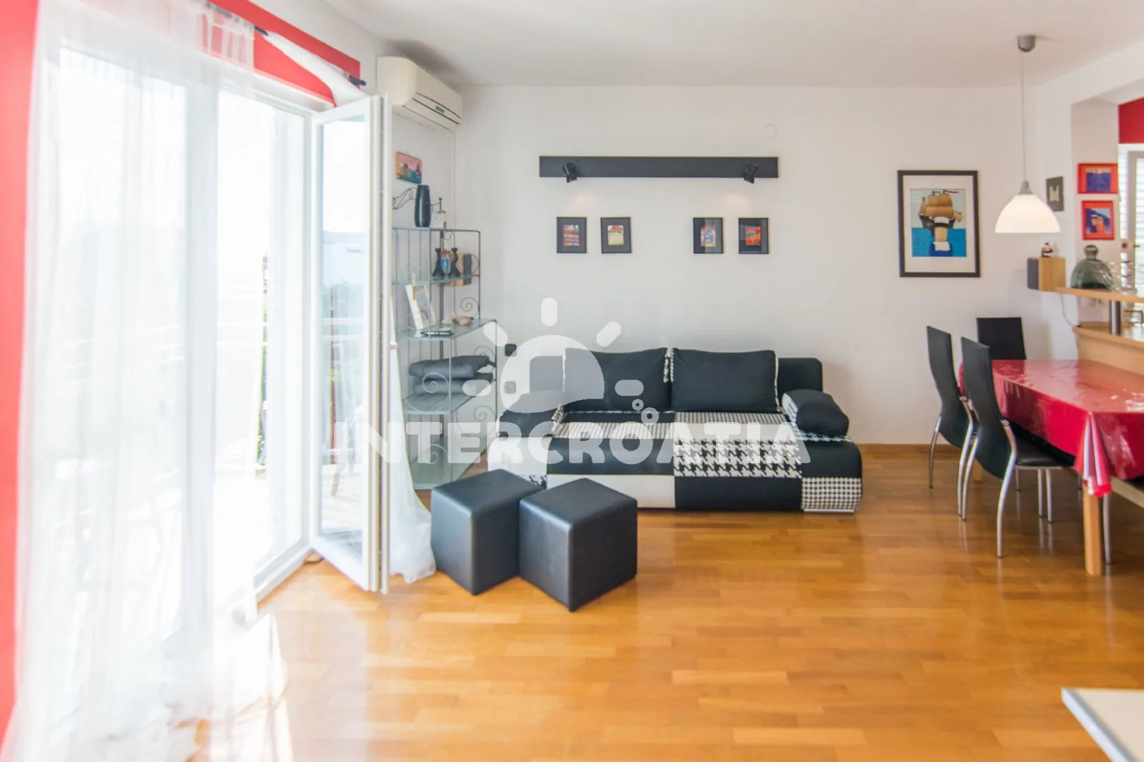 Velmi dobře umístěný dům s dvěma apartmány, výhledem na moře a krátkou vzdáleností k oblázkové pláži. Dům se nachází v klidnější části města. Parkovací místa u objektu.