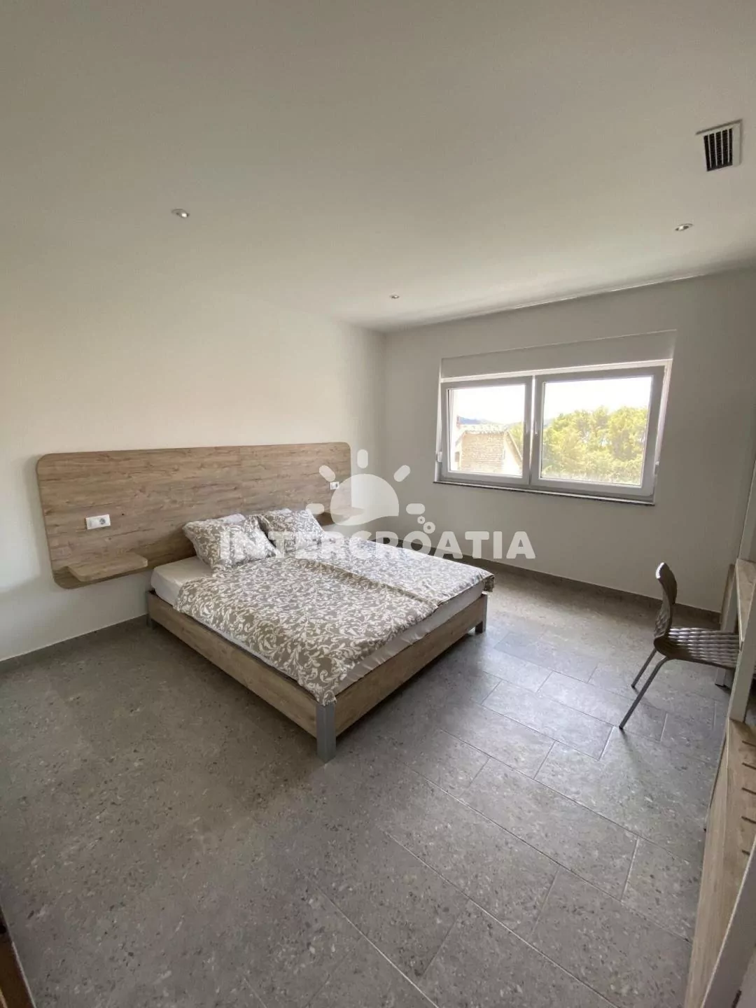 Apartmán (50 m2) s terasou a částečným výhledem na moře se nachází ve 2. patře vily. Apartmán má 1 ložnici a je vhodný pro 2 až 4 osoby. Obývací pokoj je spojený s kuchyní. Kuchyňská linka je vybavena sklokeramickou varnou deskou, vestavěnou troubou, nádobím a lednicí s mrazákem. Obývací pokoj s jídelním stolem pro 4 osoby, pohovkou (rozložitelná na extra lůžko pro 2 osoby), televizí se satelitním programem, klimatizací a vstupem na terasu. Ložnice s jedním dvoulůžkem. Koupelna se sprchovým koutem, umyvadlem a wc. Hostům je k dispozici parkování u objektu zdarma.