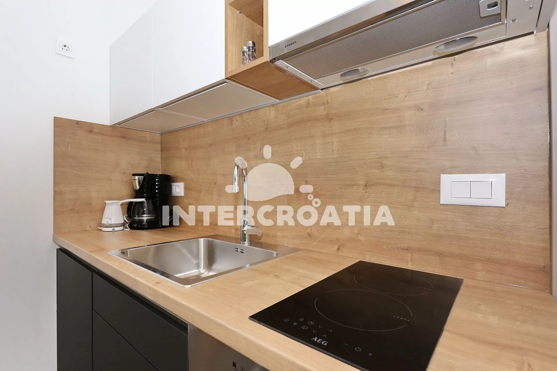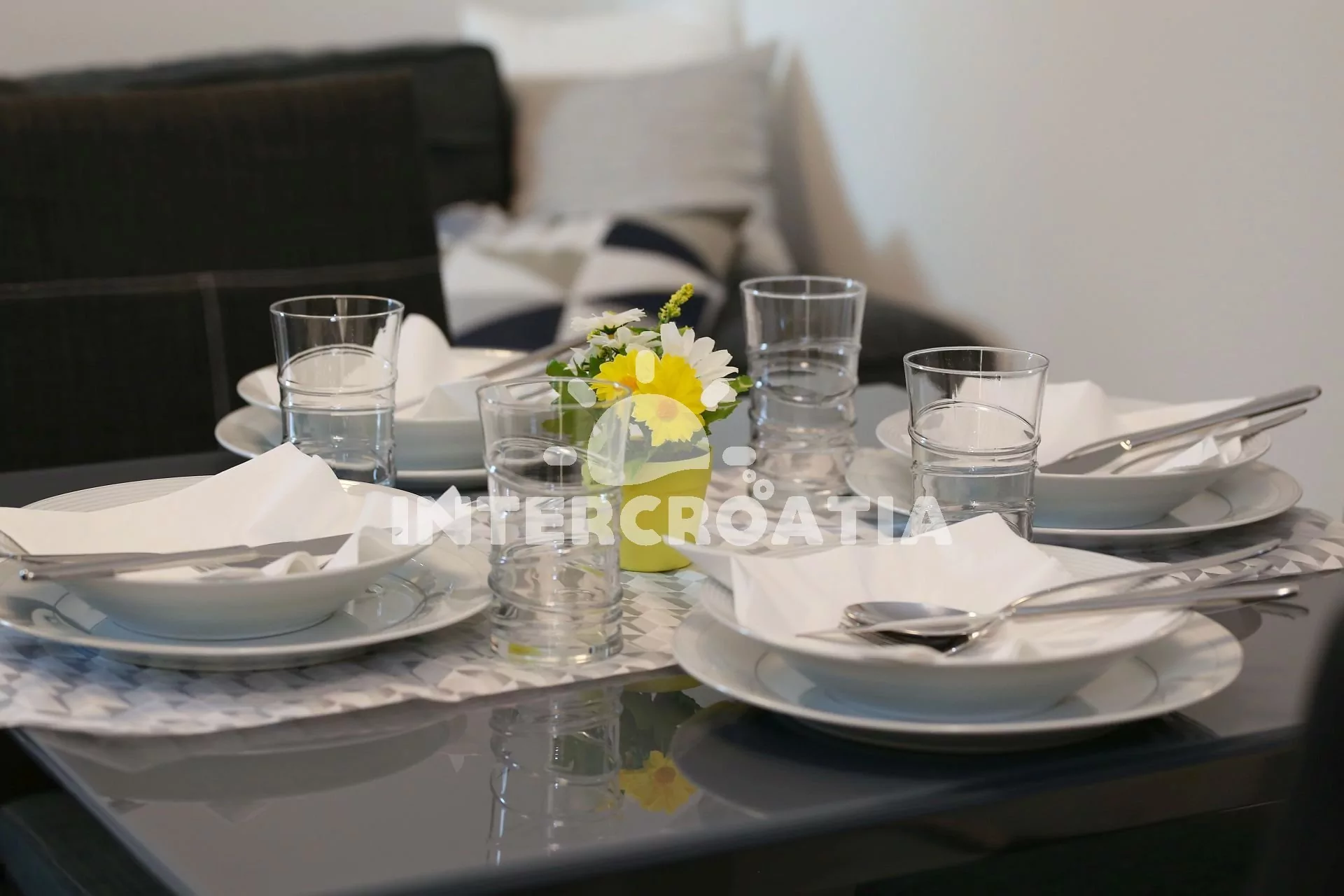 Apartmán (34 m2) s balkonem a venkovním posezením se nachází v přízemí vily a je vhodný pro 2 až 4 osoby. Obývací pokoj je spojený s kuchyní. Kuchyňská linka je vybavena dvouplotýnkovou varnou deskou, digestoří, vestavěnou troubou, kávovarem, nádobím a lednicí s mrazákem. Obývací pokoj s jídelním stolem pro 4 osoby, pohovkou (rozložitelná na extra lůžko pro 2 osoby), televizí se satelitním programem a klimatizací. Ložnice s dvoulůžkem. Koupelna se sprchovým koutem, umyvadlem a wc. Hostům jek dispozici parkování u objektu zdarma.