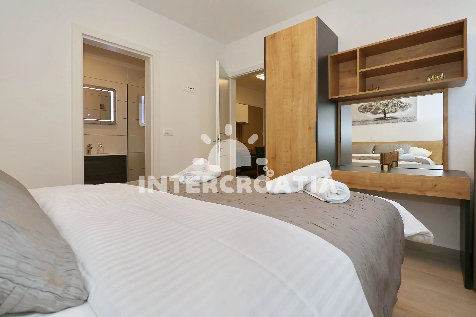 Biograd na Moru je výbornou volbou pro turisty, kteří hledají klidnější destinaci u moře. Když se budete nudit můžete navštívit známé metropole a přírodní krásy Severní Dalmácie. Vaše apartmánová vila má krásný venkovní bazén. Moři a oblázkové pláži přijdete za 200 m od ubytování. Pláž se nachází v klidné lokalitě, takže si užijete bezstarostné chvíle a odpočinek. Rodiny s dětmi nejvíce ocení pozvolný přístup do moře. Na pobřeží rostou stromy, pod kterými najdete příjemný chládek. Restaurace, supermarkety a kavárny se nachází v docházkové vzdálenosti od ubytování. Skvělé turistické zázemí nabízí oblázková pláž Soline. Přímo u pláže jsou příjemné bary a restaurace. Můžete si také pochutnat na zmrzlině a prohlédnout si obchody se suvenýry. K historii města patří kostel sv. Anastázie, opevnění a starochorvatské hroby. Zábavný program a poznání tamních tradic vás zaujme při slavnosti Biogradská noc a Kulturní léto. Aktivní vyžití pro všechny věkové kategorie si užijete v Přírodním parku Vranské jezero. Sportovci si rádi naplánují cyklistickou projížďku nebo pěší túru. Volný čas lze strávit také koupáním, rybařením nebo prohlídkou ptačí rezervace. Z vyhlídky Kamenjak vás okouzlí překrásná panoramata. Procházku v panenské přírodě s věhlasnými vodopády si naplánujte do Národního parku Krka. Ruch pravé chorvatské metropole si nenechte ujít v Šibeniku. Pravidelně se konají středověké trhy, hudební festivaly, folklórní večery a gastronomické události. V křivolakých uličkách si prohlédněte palác Foscolů, kostel sv. Jana Křtitele, katedrálu sv. Jakuba, tři městské pevnosti a Mořskou bránu. Našimi tipy na poznávací výlet jsou Zadar a ostrov Krk.