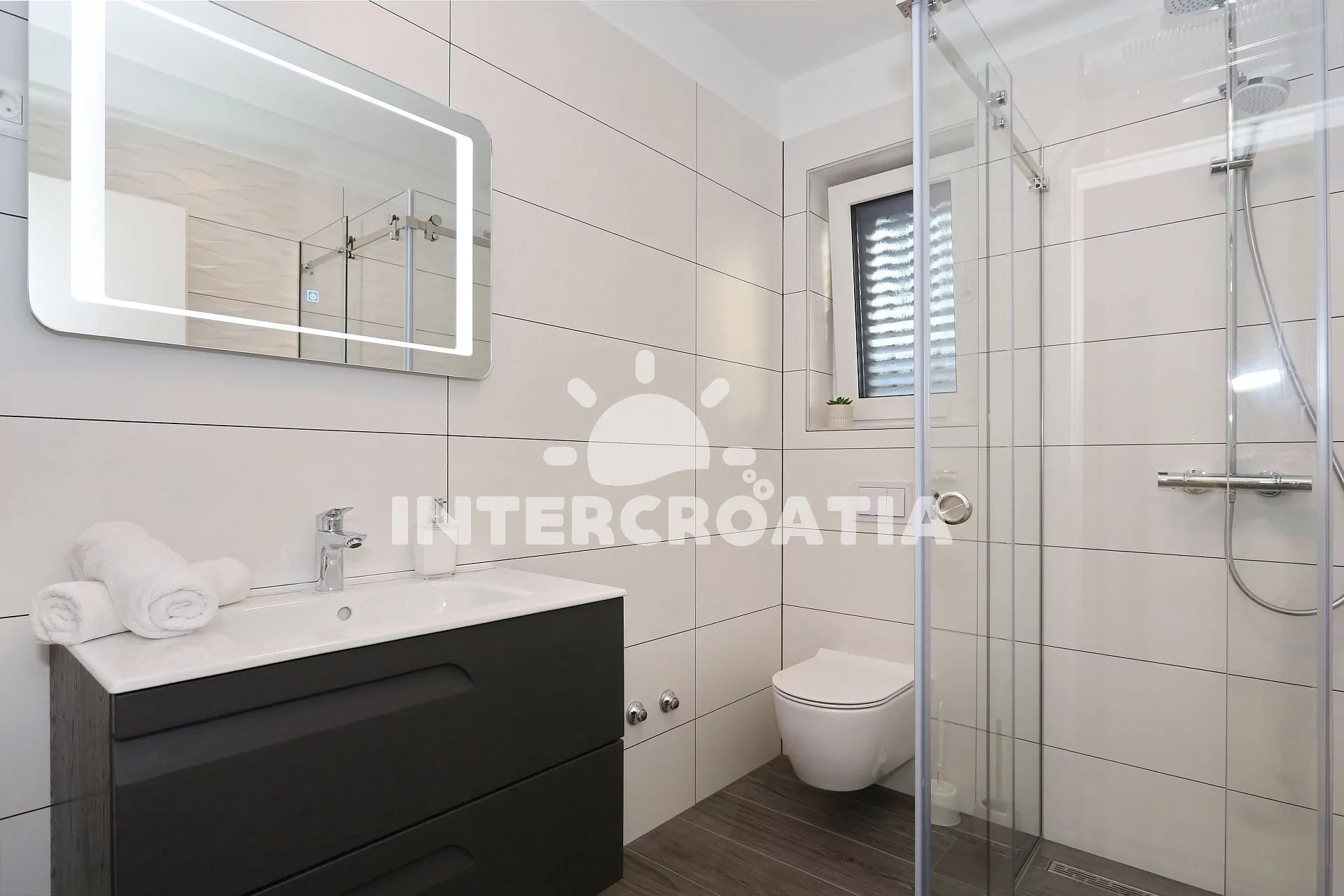 Biograd na Moru je výbornou volbou pro turisty, kteří hledají klidnější destinaci u moře. Když se budete nudit můžete navštívit známé metropole a přírodní krásy Severní Dalmácie. Vaše apartmánová vila má krásný venkovní bazén. Moři a oblázkové pláži přijdete za 200 m od ubytování. Pláž se nachází v klidné lokalitě, takže si užijete bezstarostné chvíle a odpočinek. Rodiny s dětmi nejvíce ocení pozvolný přístup do moře. Na pobřeží rostou stromy, pod kterými najdete příjemný chládek. Restaurace, supermarkety a kavárny se nachází v docházkové vzdálenosti od ubytování. Skvělé turistické zázemí nabízí oblázková pláž Soline. Přímo u pláže jsou příjemné bary a restaurace. Můžete si také pochutnat na zmrzlině a prohlédnout si obchody se suvenýry. K historii města patří kostel sv. Anastázie, opevnění a starochorvatské hroby. Zábavný program a poznání tamních tradic vás zaujme při slavnosti Biogradská noc a Kulturní léto. Aktivní vyžití pro všechny věkové kategorie si užijete v Přírodním parku Vranské jezero. Sportovci si rádi naplánují cyklistickou projížďku nebo pěší túru. Volný čas lze strávit také koupáním, rybařením nebo prohlídkou ptačí rezervace. Z vyhlídky Kamenjak vás okouzlí překrásná panoramata. Procházku v panenské přírodě s věhlasnými vodopády si naplánujte do Národního parku Krka. Ruch pravé chorvatské metropole si nenechte ujít v Šibeniku. Pravidelně se konají středověké trhy, hudební festivaly, folklórní večery a gastronomické události. V křivolakých uličkách si prohlédněte palác Foscolů, kostel sv. Jana Křtitele, katedrálu sv. Jakuba, tři městské pevnosti a Mořskou bránu. Našimi tipy na poznávací výlet jsou Zadar a ostrov Krk.