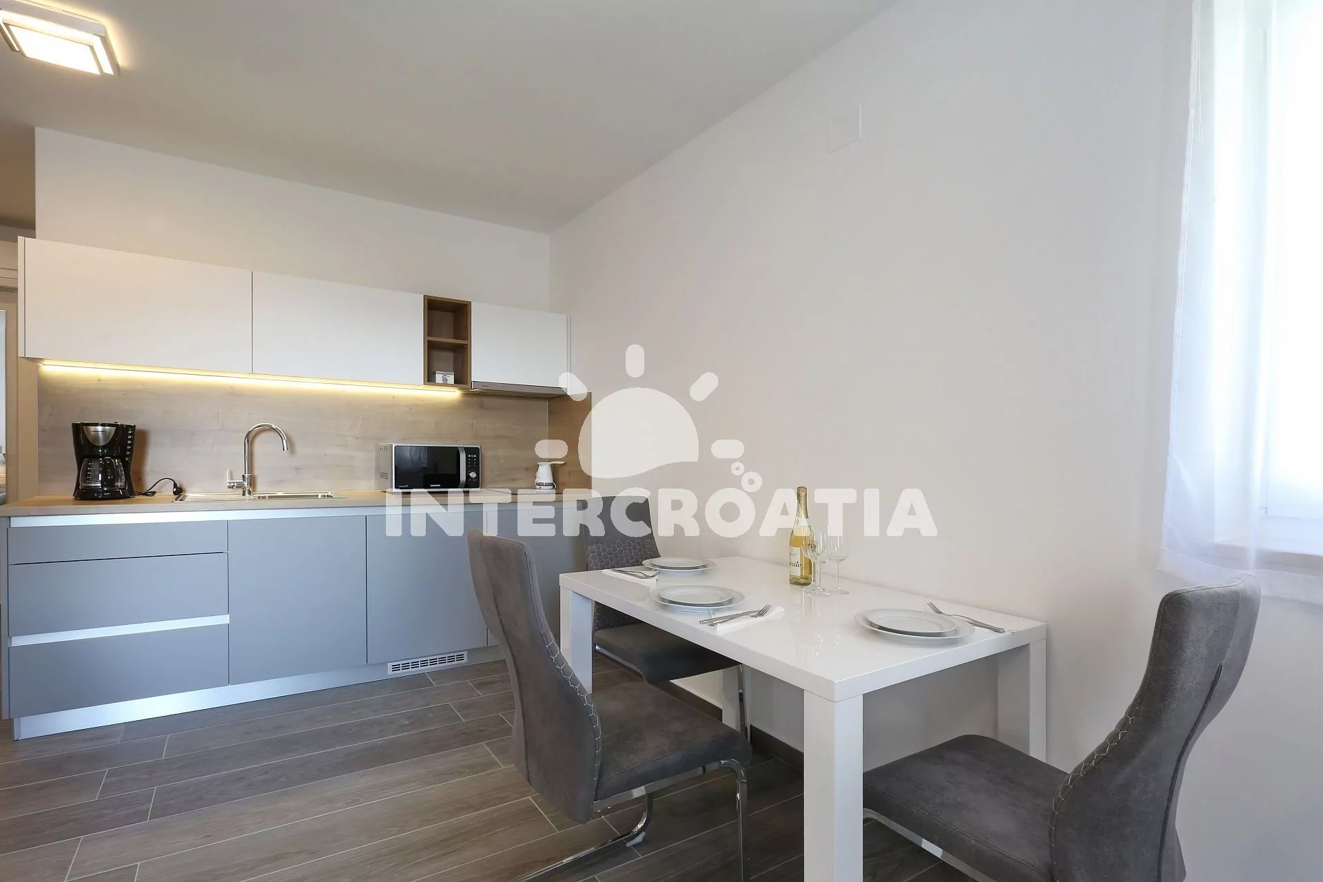Biograd na Moru je malebné letovisko v Severní Dalmácii, 49 km od Šibeniku. Apartmánová vila se nachází 200 m od smaragdového moře a oblázkové pláže.