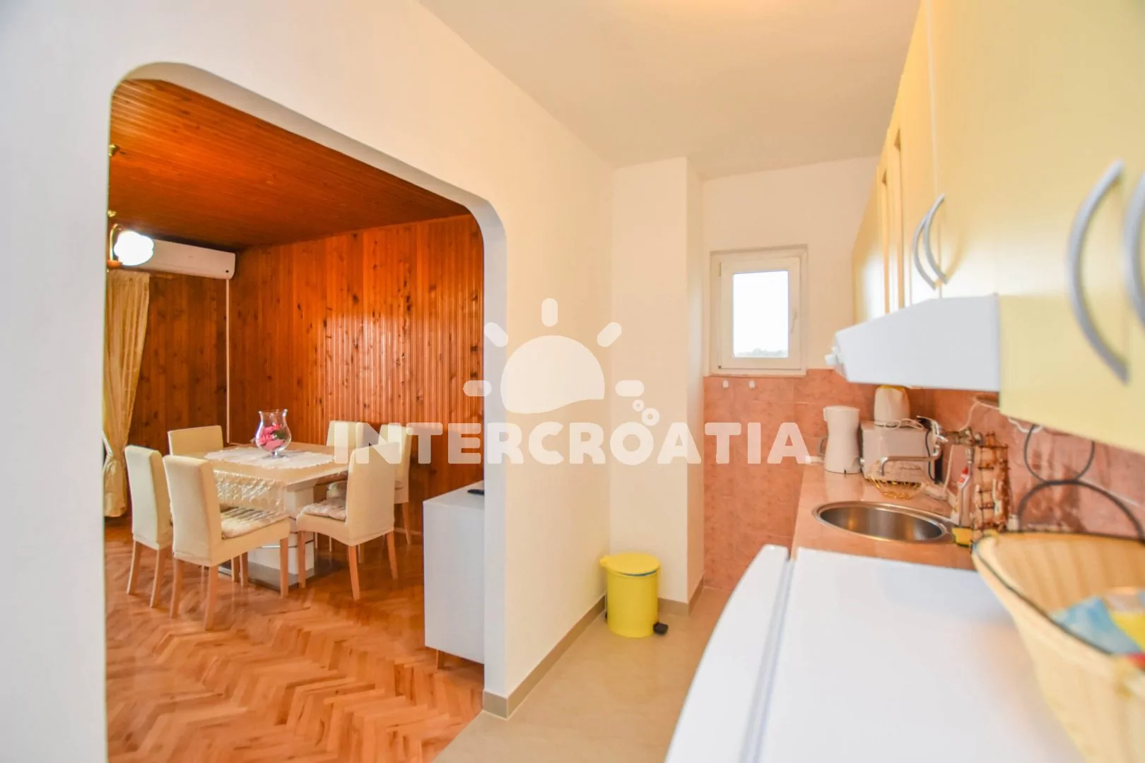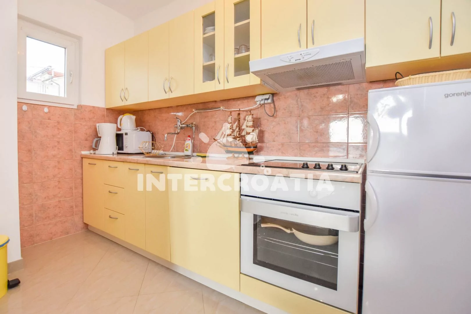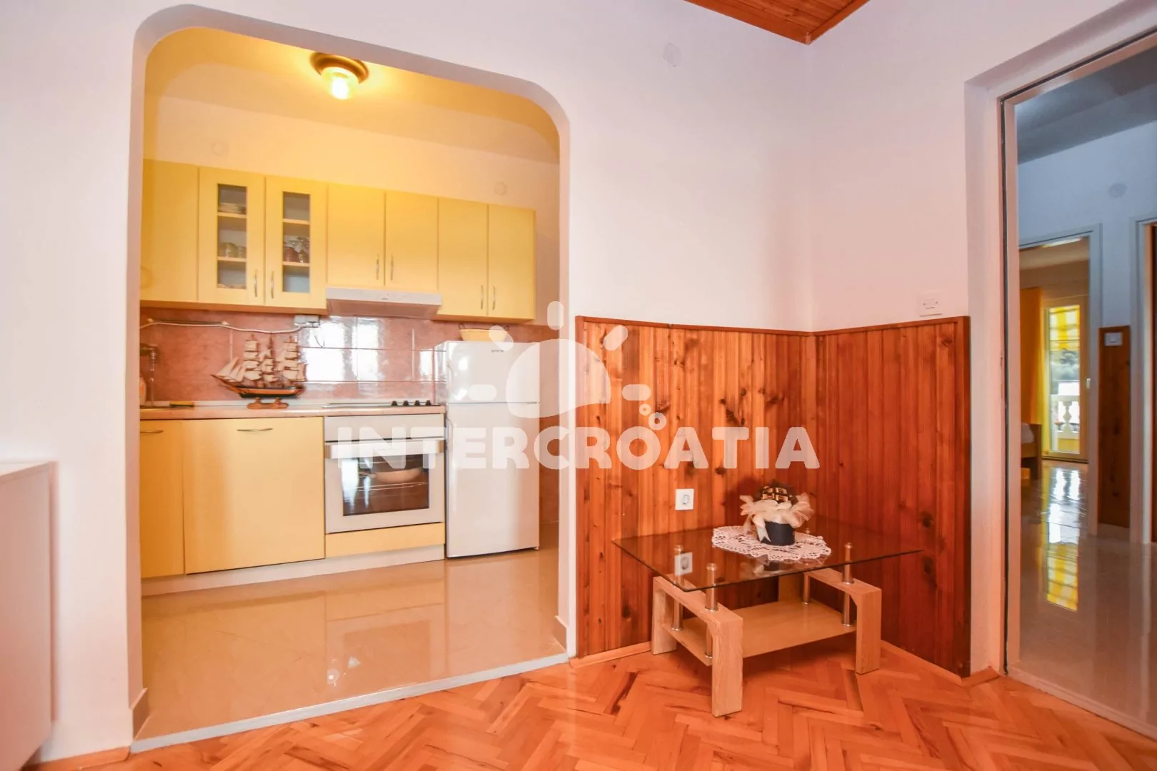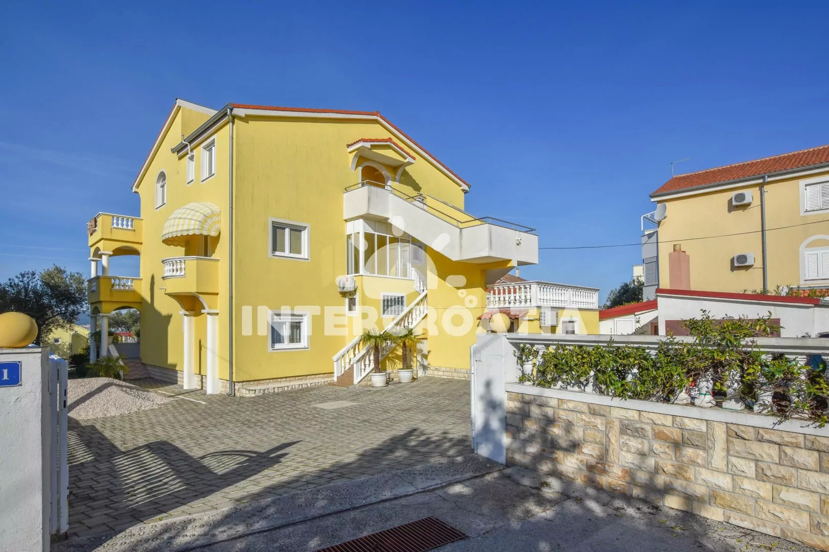 Skvěle umístěný apartmánový dům přímo u moře a oblázkové pláže. Dům nabízí ubytování ve 3 klimatizovaných apartmánech s lodžiemi a venkovním posezením. K dispozici je společná zahrada s terasou, posezením a grilem. Parkovací místa pro automobily u domu.