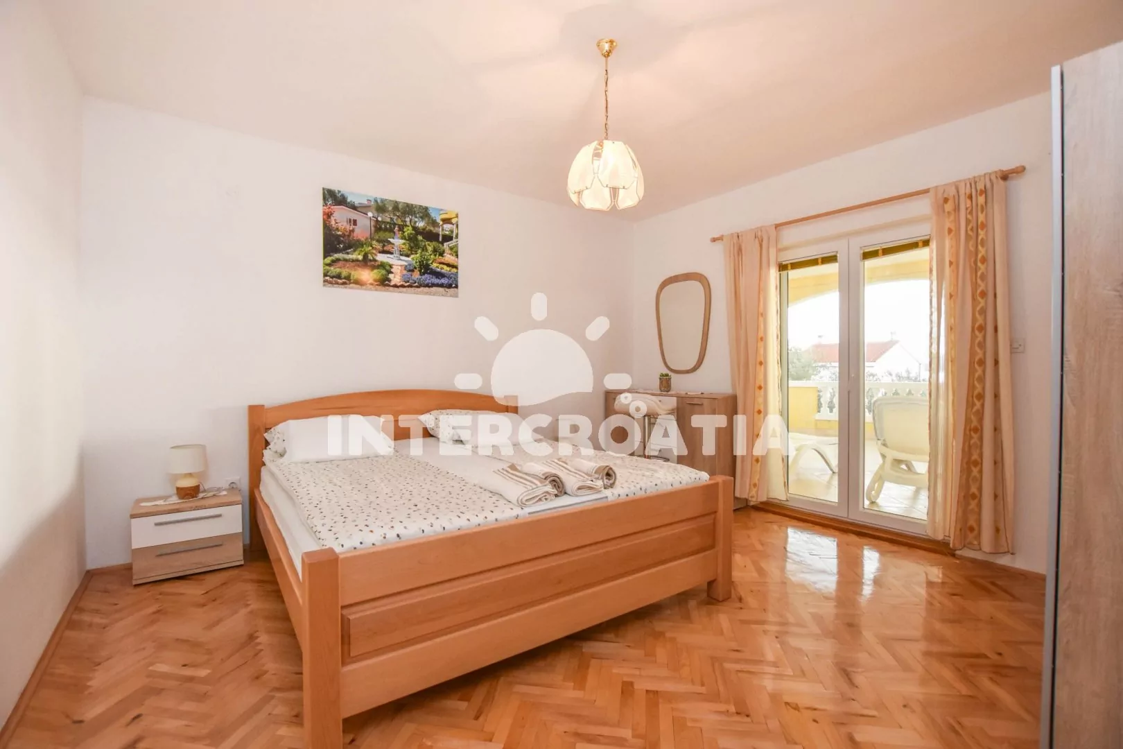 Severodalmátký Biograd na Moru patří k oblíbeným destinacím, kde turisty čeká nádherné koupání, kulturní zážitky a poznávací výlety v okolí. Vaše ubytování je situované 50 m od křišťálově čistého moře a oblázkové pláže Bošana. Volný čas využijte k nerušenému odpočinku, plavání a šnorchlování. Do smaragdového moře vede pozvolný vstup, který ocení rodiče mladších dětí a starší osoby. Blízko pláže jsou k dispozici kavárny, rychlé občerstvení, restaurace a dětské hřiště. Historii letoviska symbolizují starochorvatské hroby, kostel sv. Anastázie z poloviny 18. Století a pozůstatky hradeb katedrály. Kousek za městem si můžete všimnout kostela sv. Rocha a sv. Antonína. Návštěvníkům, co by rádi poznali dalmátskou kulturu, doporučujeme účast na lidové slavnosti Biogradská noc. Gurmány naopak potěší červnová událost, která pořádá ochutnávky lokálních a dalmatských specialit. Kulturní léto turistům slibuje bohaté zábavné a doprovodné dění. Romantická procházka historickým centrem a pestré společenské vyžití vás čeká v Šibeniku a Zadaru. V Zadaru stojí za pozornost palác Nassis, městské opevnění, Knížecí palác, katedrála sv. Anastázie a kostel sv. Donáta z 9. století. Jedinečný výlet lodí, pěší túry a koupání u věhlasných Skradinských vodopádů si užijete v Národním parku Krka.
