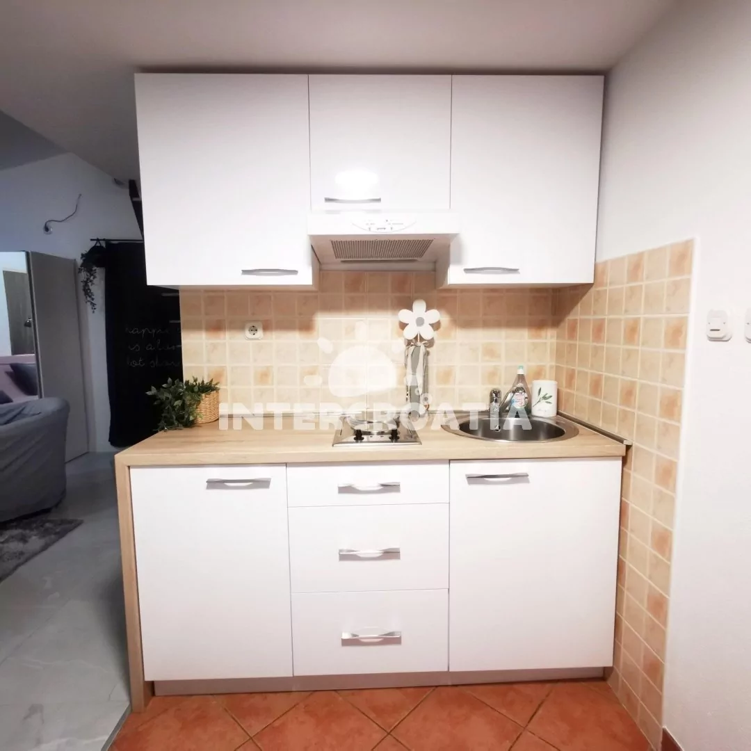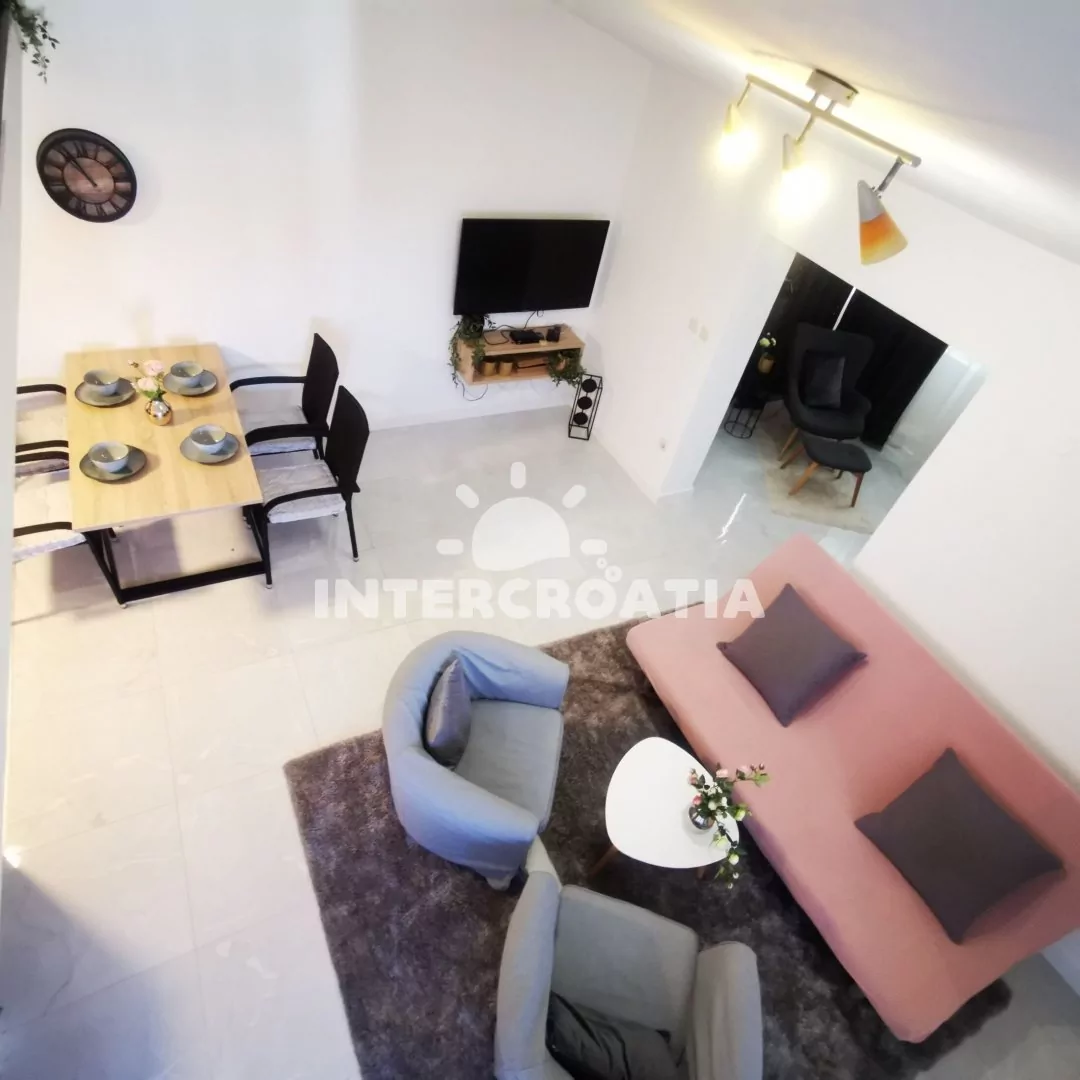 Vzdálenosti: Moře a oblázková pláž 800 m, čerpací stanice 350 m, lékárna, ambulance 450 m, supermarket 400 m, restaurace 500 m, centrum 500 m, půjčovna cyklistických kol 900 m, přístav 500 m, banka, směnárna, bar, půjčovna motorových člunů 500 m, veřejná doprava 700 m, pošta 760 m, potápění 500 m, trajekt 1,1 km, muzeum 1,2 km, tenis 1 km, park Plitvice 18 km, letiště (Zadar) 26 km.