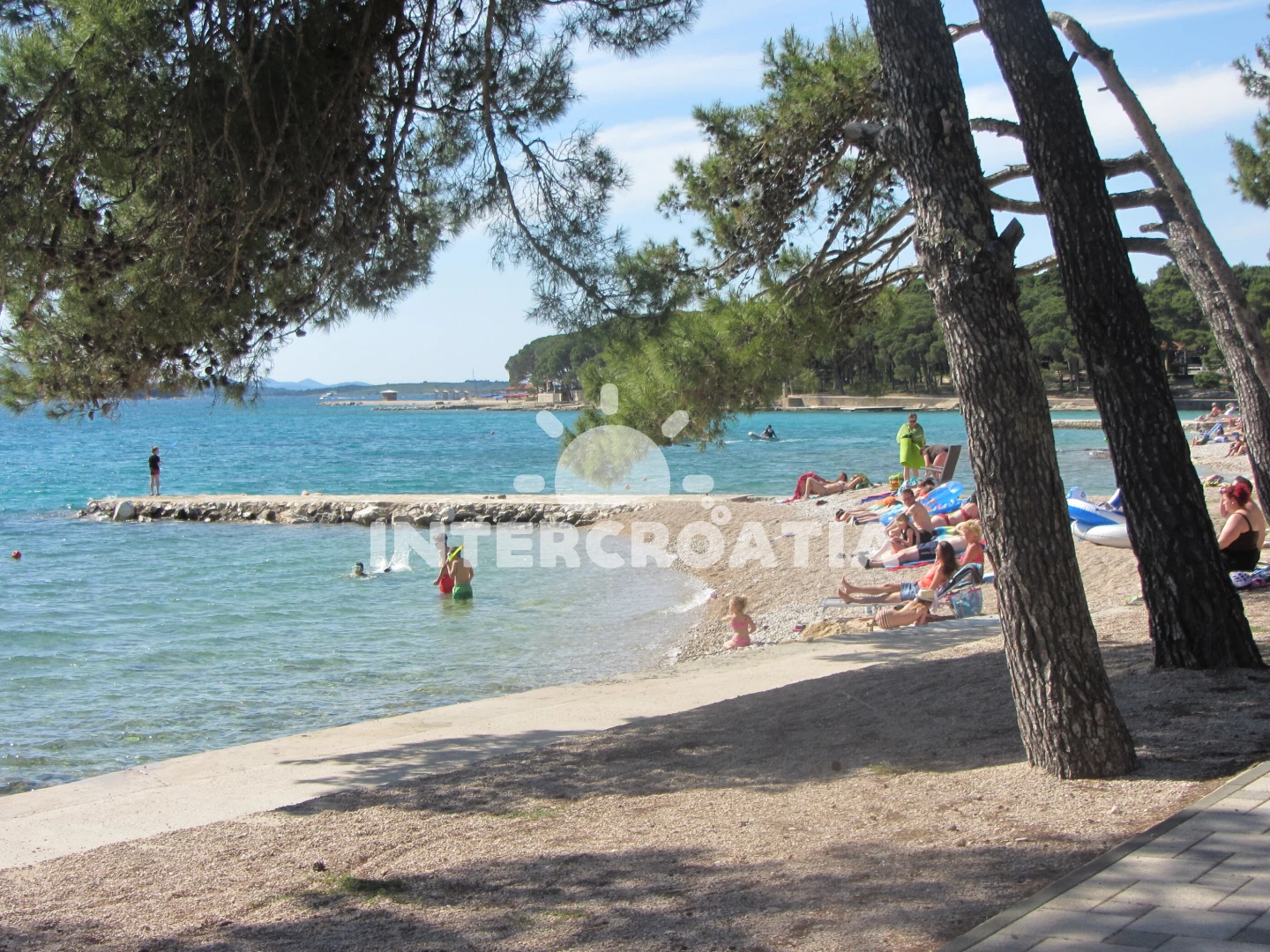 Vzdálenosti: Moře 800 m, pláž (písčitá a oblázková) 1,2 km, centrum 1 km, obchod s potravinami 600 m, restaurace 500 m, bar 600 m, tenisové kurty 680 m, ambulance 1 km, čerpací stanice 1,1 km, banka, veřejná doprava, lékárna a směnárna 1,2 km, diskotéka 900 m, pošta 1,3 km, přístav 1,5 km, muzeum 1,6 km, půjčovna cyklistických kol 1,4 km, park Plitvice 25 km, trajekt (Biograd) 1,7 km, letiště (Zadar) 30 km.