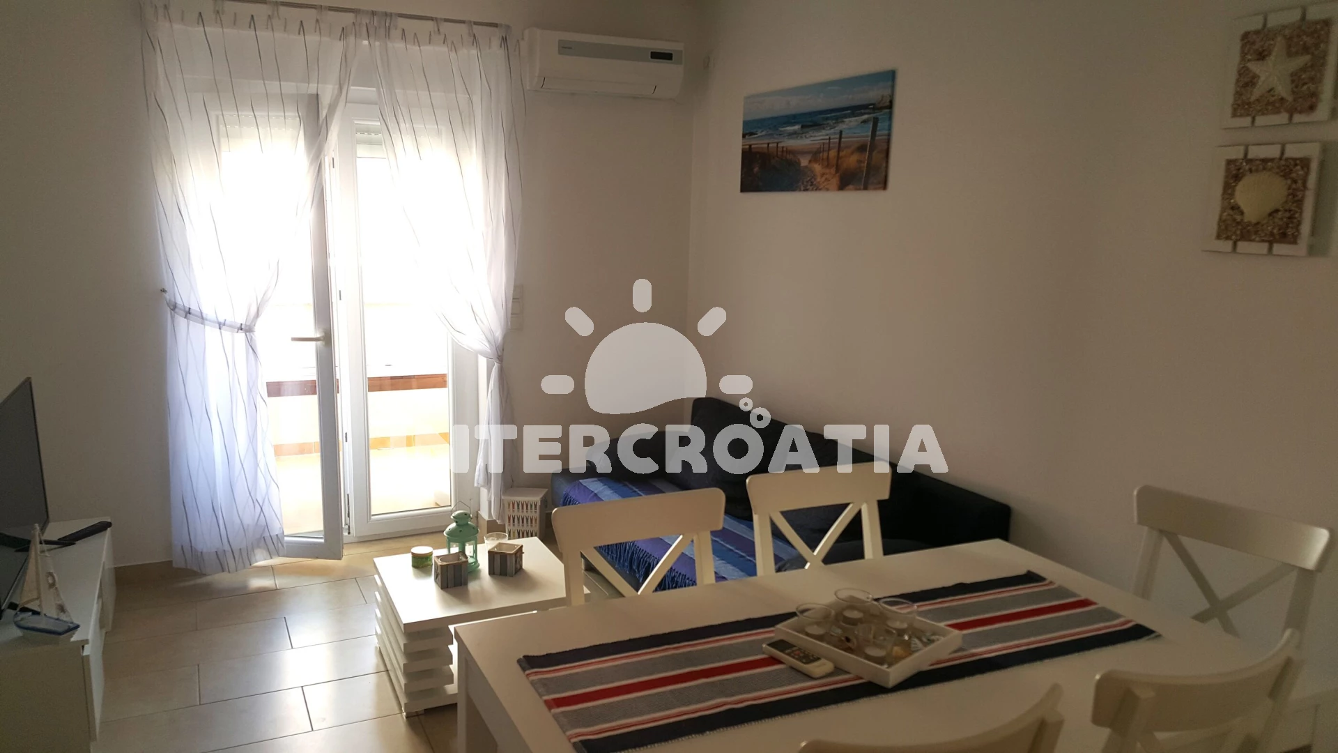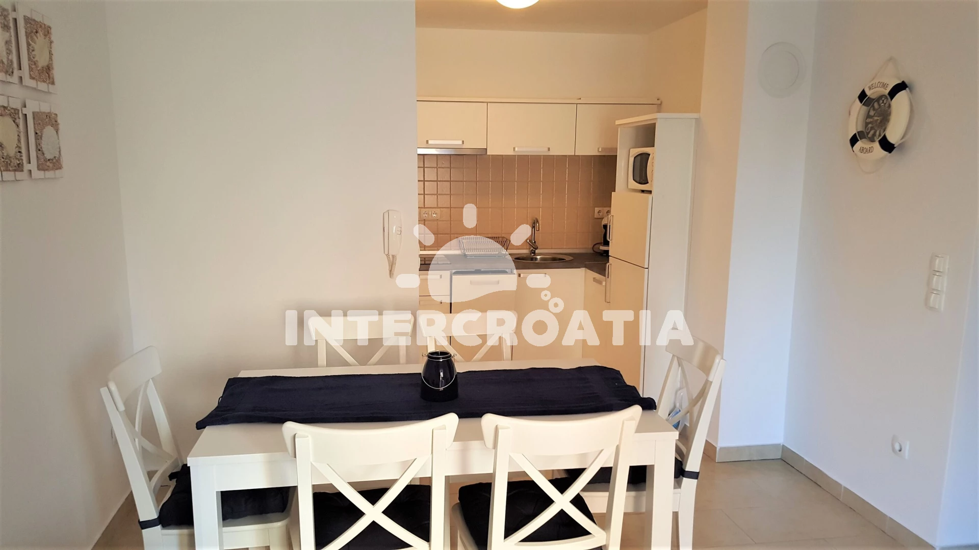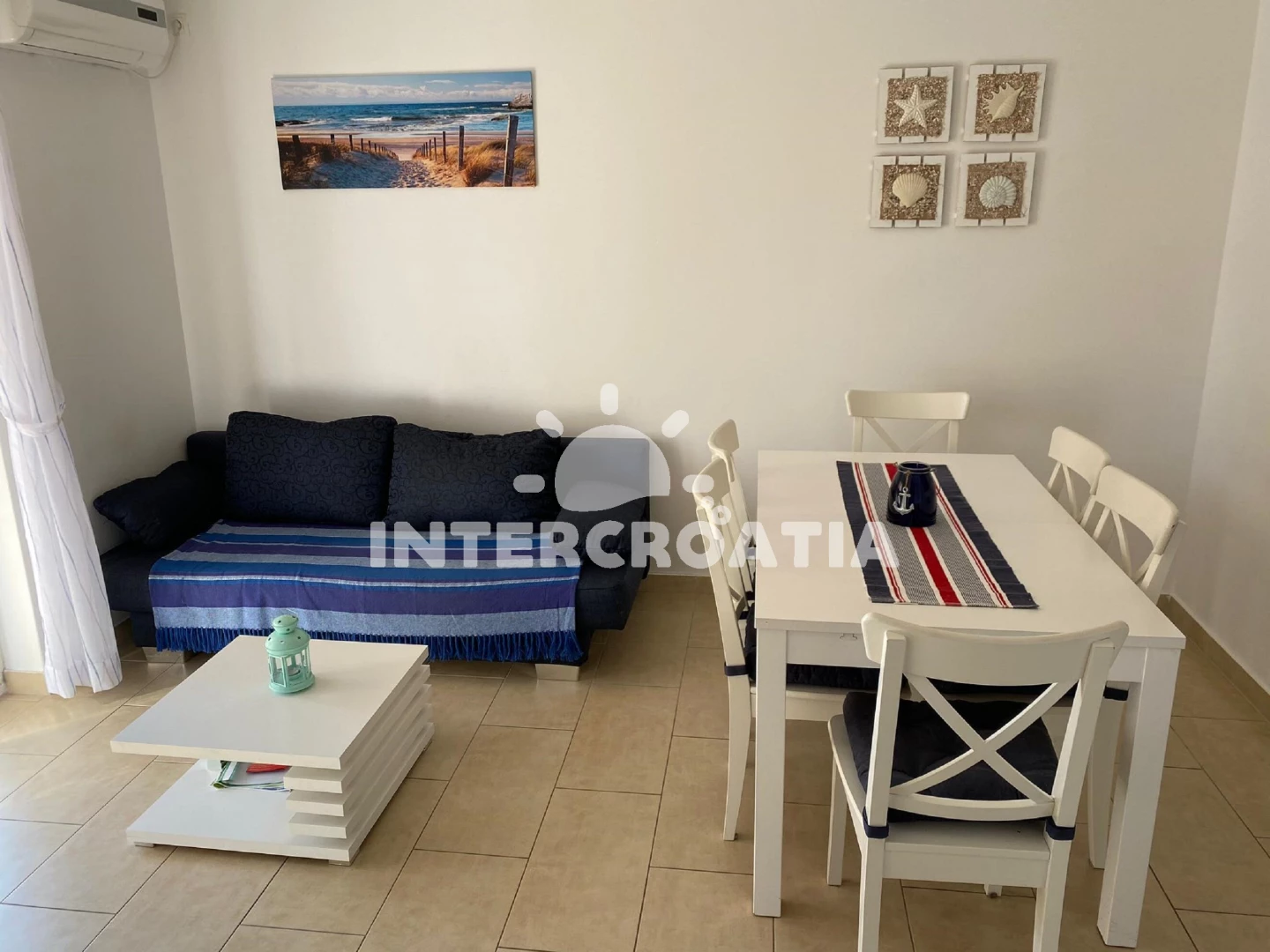 V Severní Dalmácii, 10 km severozápadně od klidného turistického letoviska Drage a 18 km jihozápadně od přímořské vesničky Sukošan. Apartmán se nachází 1,2 km pěší chůzí od pláže.