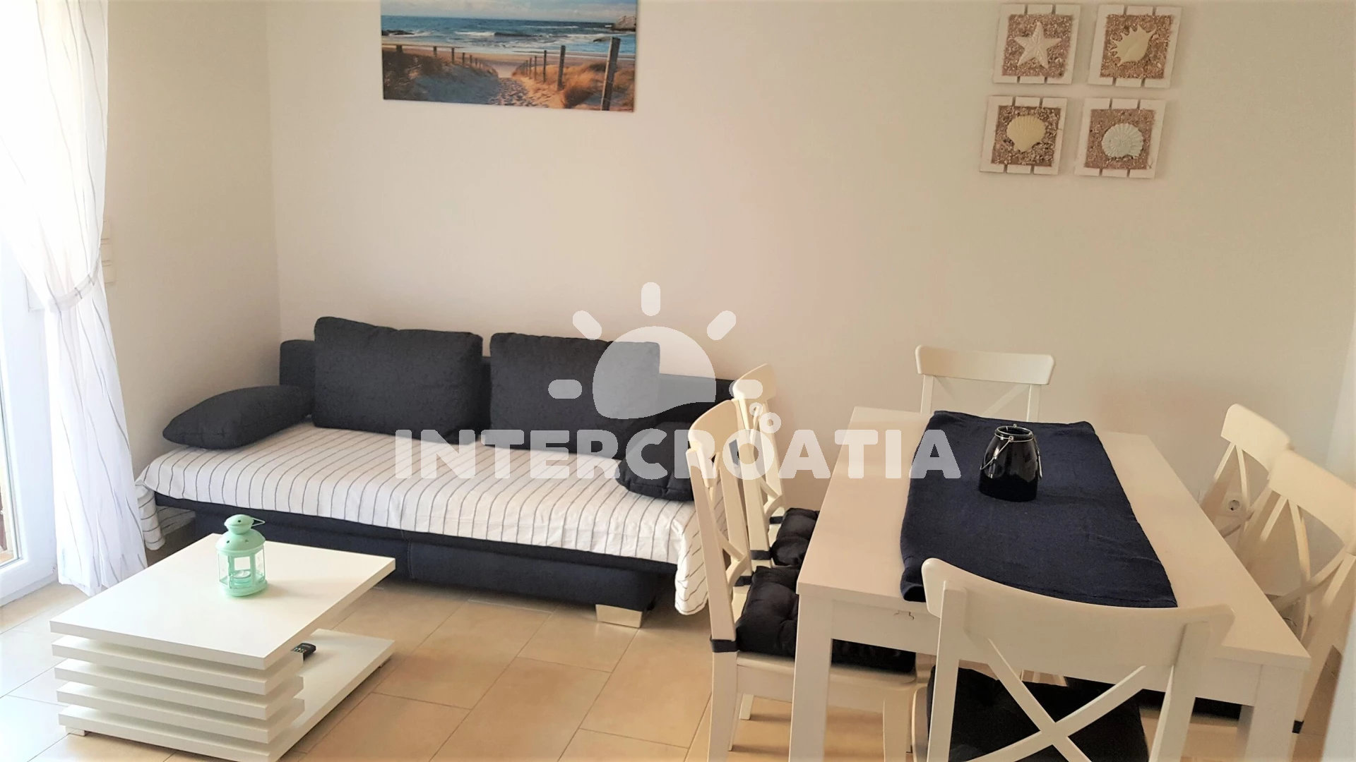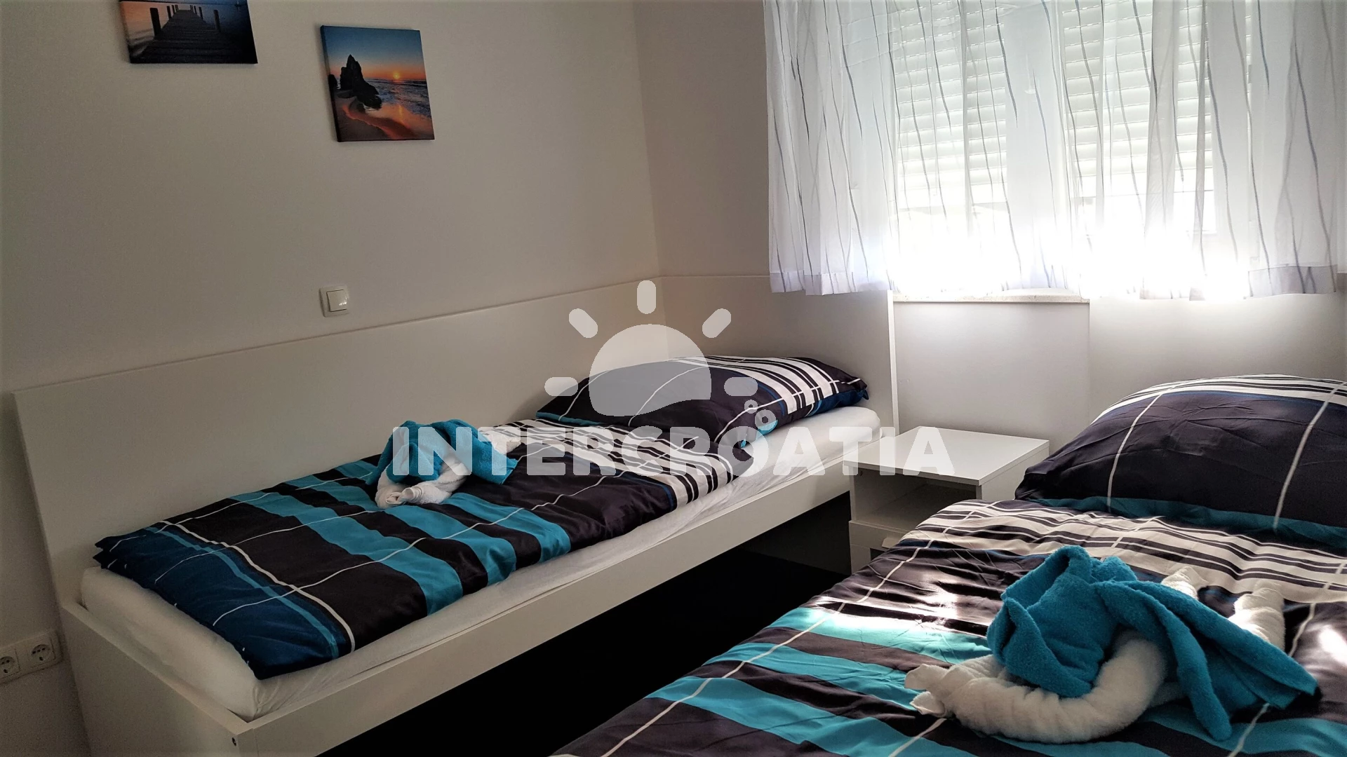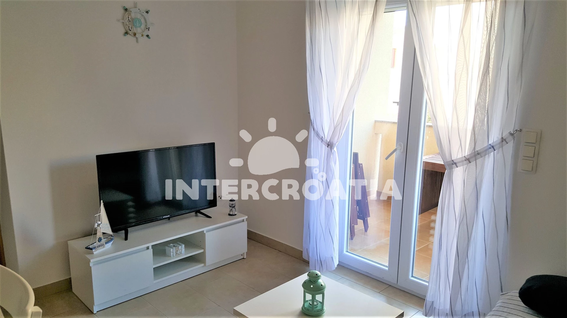 V Severní Dalmácii, 10 km severozápadně od klidného turistického letoviska Drage a 18 km jihozápadně od přímořské vesničky Sukošan. Apartmán se nachází 1,2 km pěší chůzí od pláže.
