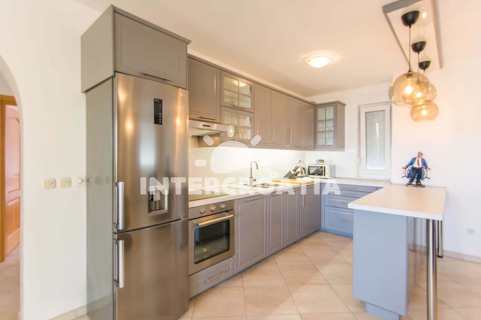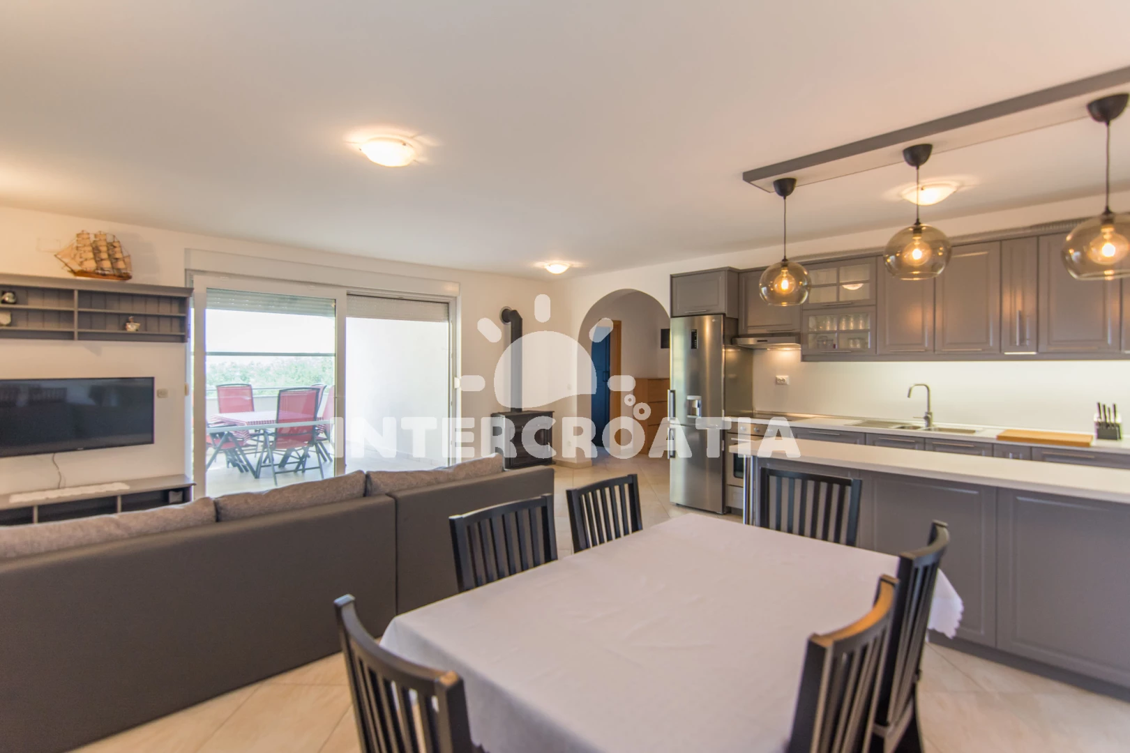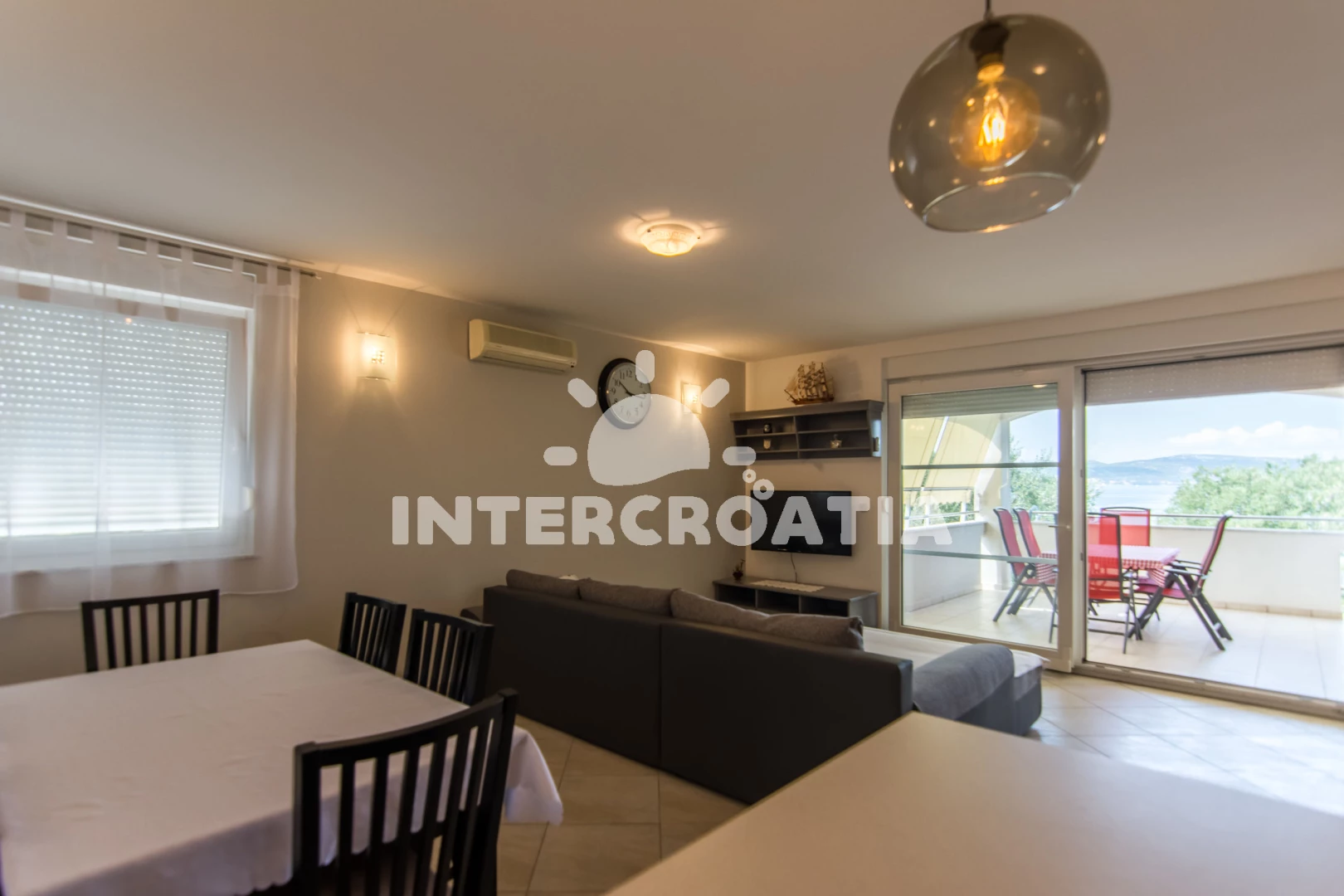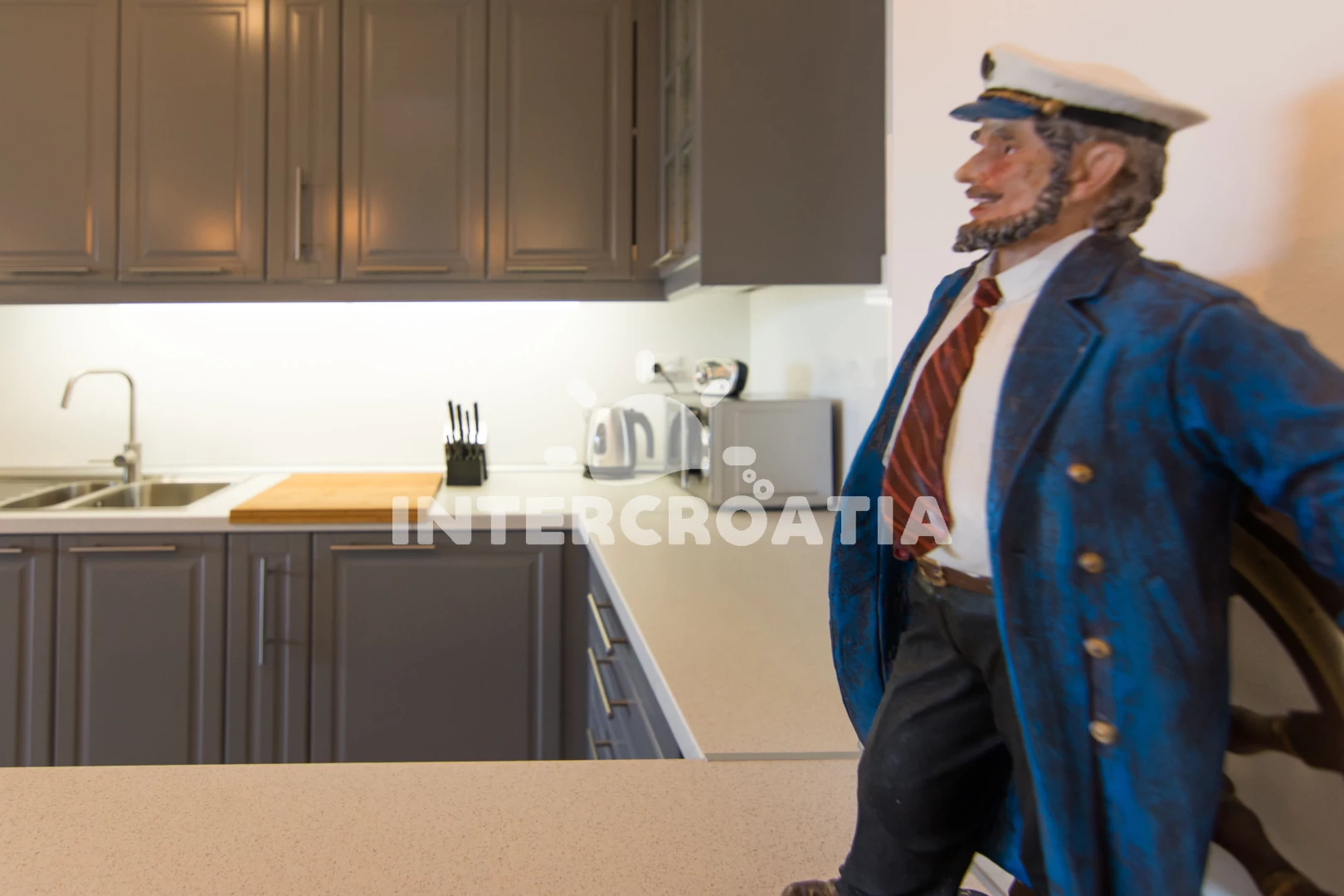 Gyönyörű kilátás a tengerre, nyugodt partszakasz, tiszta, lassan mélyülő tengerpart, jól felszerelt, kényelmes apartman.