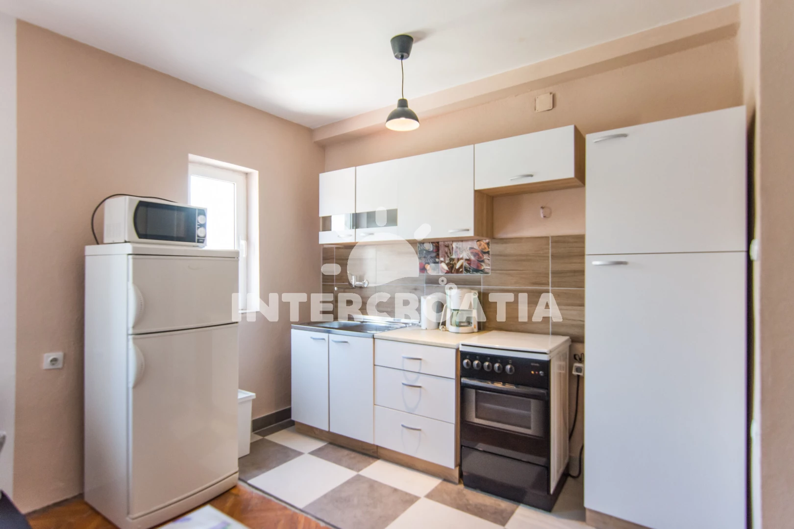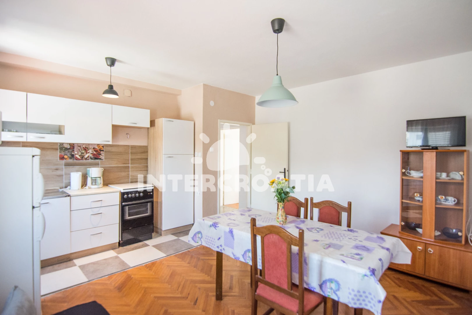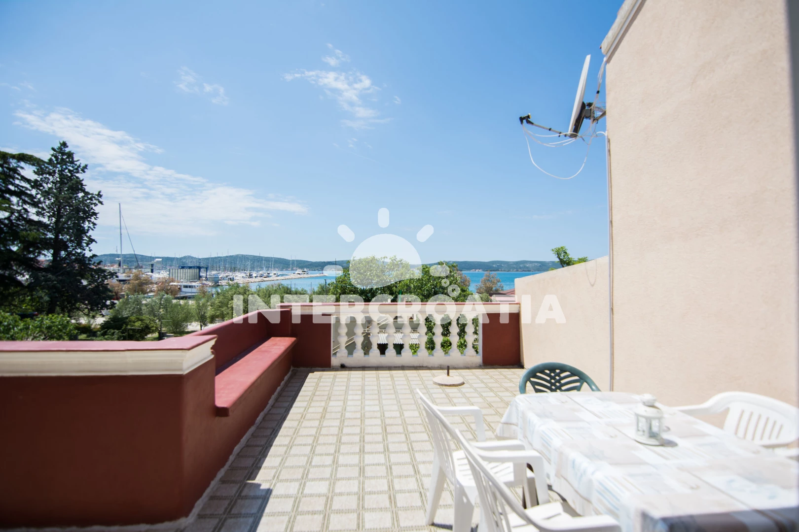 Vzdálenosti: Moře 20 m, pláž 5 m (oblázky), bar 20 m, restaurace 20 m, potápění 350 m, půjčovna motorových člunů 350 m, supermarket 500 m, ambulance 600 m, čerpací stanice 600 m, lékárna 600 m, pošta 800 m, banka 800 m, veřejná doprava 850 m, centrum 950 m, směnárna 950 m, půjčovna kol 1 km, trajekt (Biograd) 1,2 km, muzeum 1,3 km, tenisové kurty 1,8 km, diskotéka 2 km, letiště (Zadar) 24,8 km, park Plitvice 35 km,