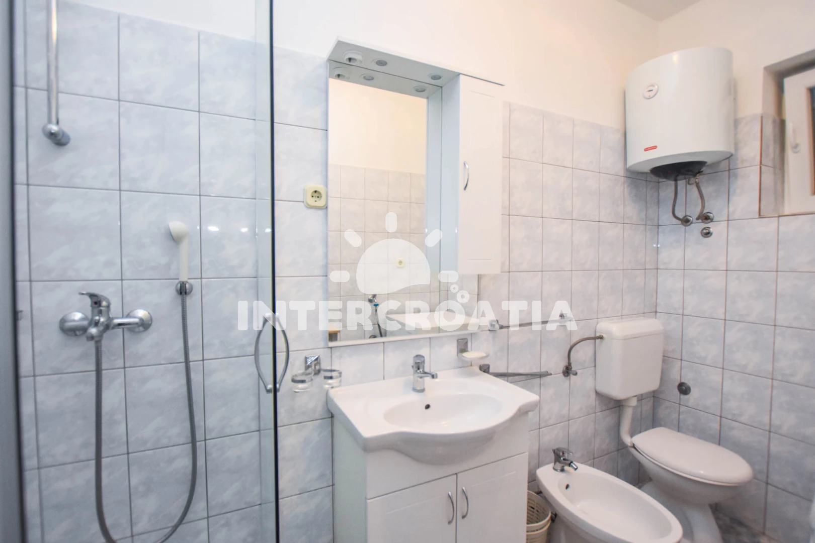 Vzdálenosti: Moře 600 m, pláž 700 m (písčitá a betonové desky), supermarket 240 m, restaurace 400 m, potápění 500 m, tenisové kurty 650 m, směnárna 700 m, centrum 700 m, lékárna 750 m, čerpací stanice 750 m, ambulance 750 m, banka 900 m, bar 900 m, veřejná doprava 900 m, pošta 950 m, půjčovna kol 1,1 km, muzeum 1,2 km, trajekt (Biograd) 1,3 km, diskotéka 1,4 km, park Plitvice 25 km, letiště (Zadar) 26 km,